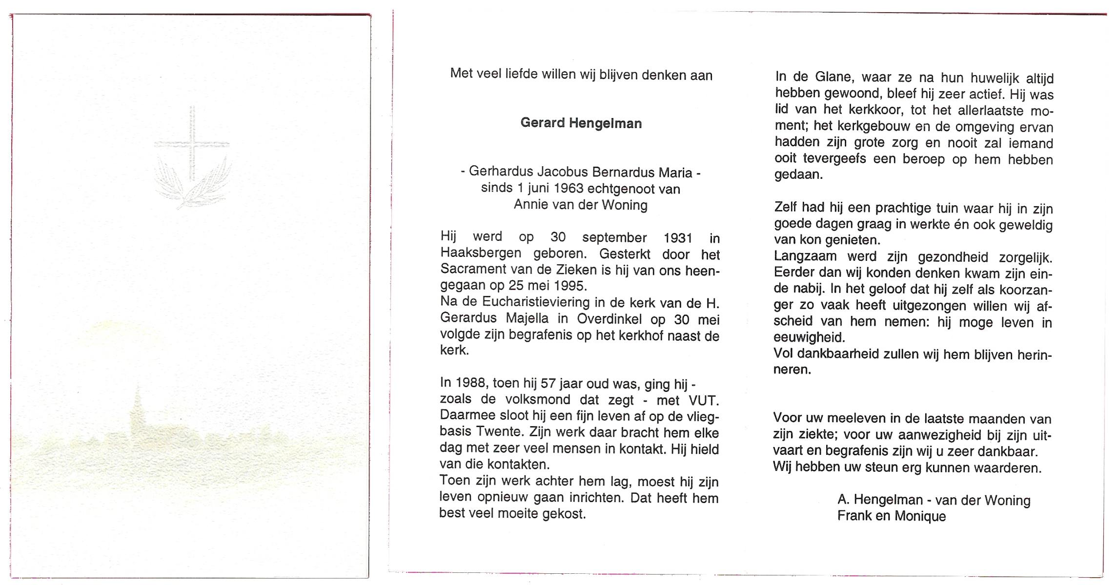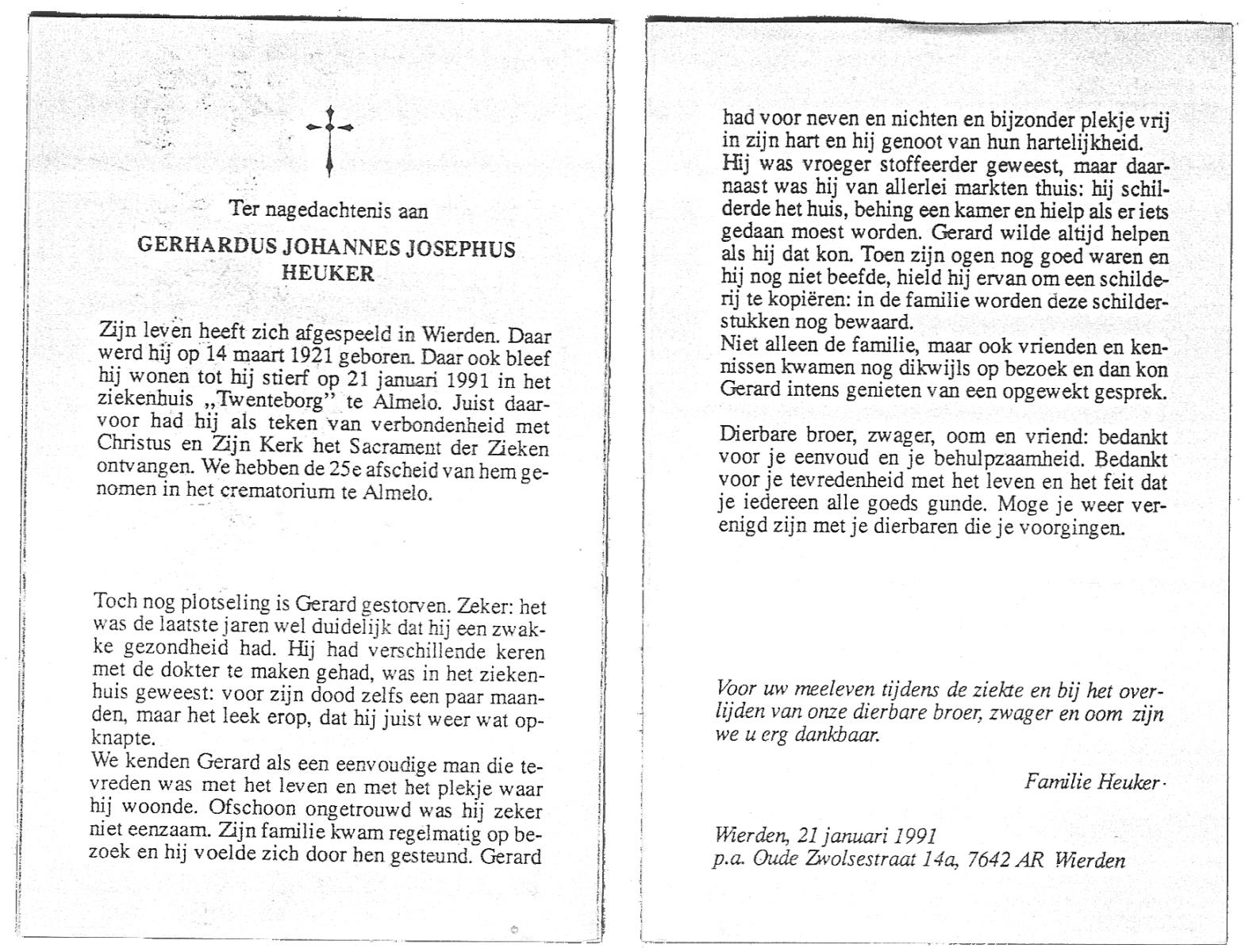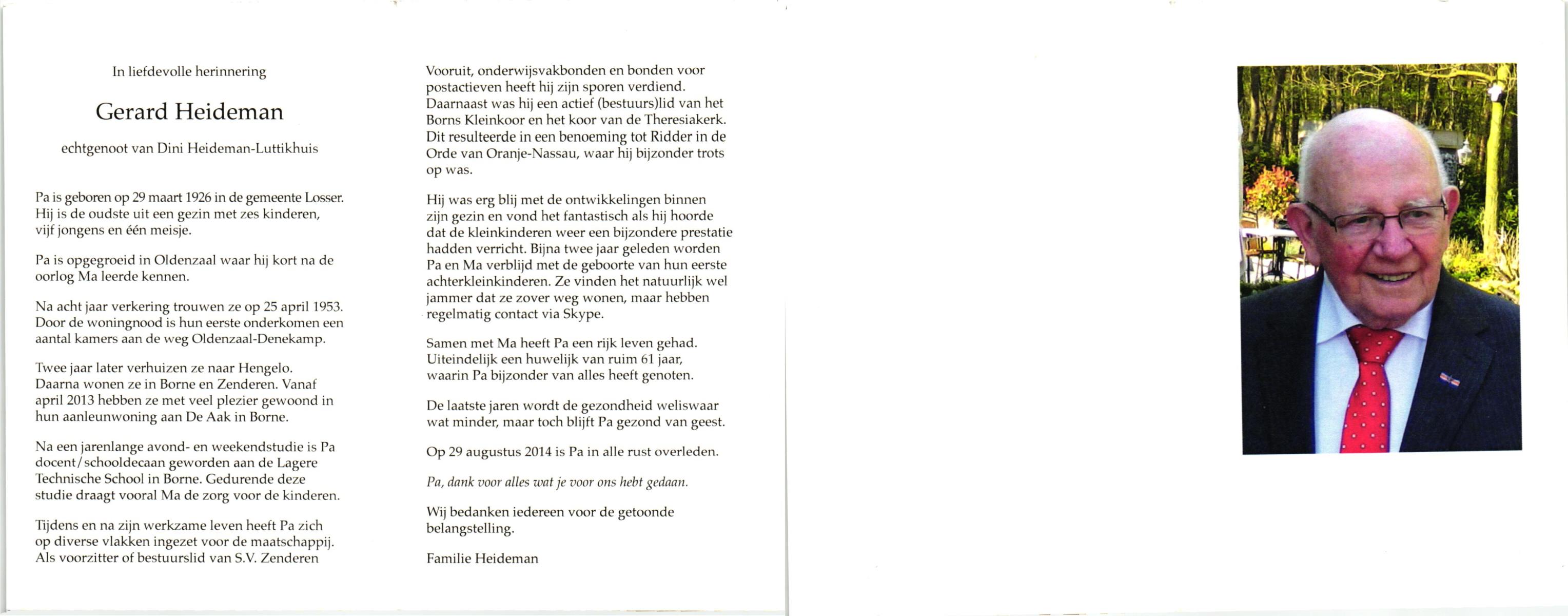 HEIDEMAN, Gerard, geboren op 29-3-1926 te Losser, overleden op 29-8-2014 te Borne op 88-jarige leeftijd.