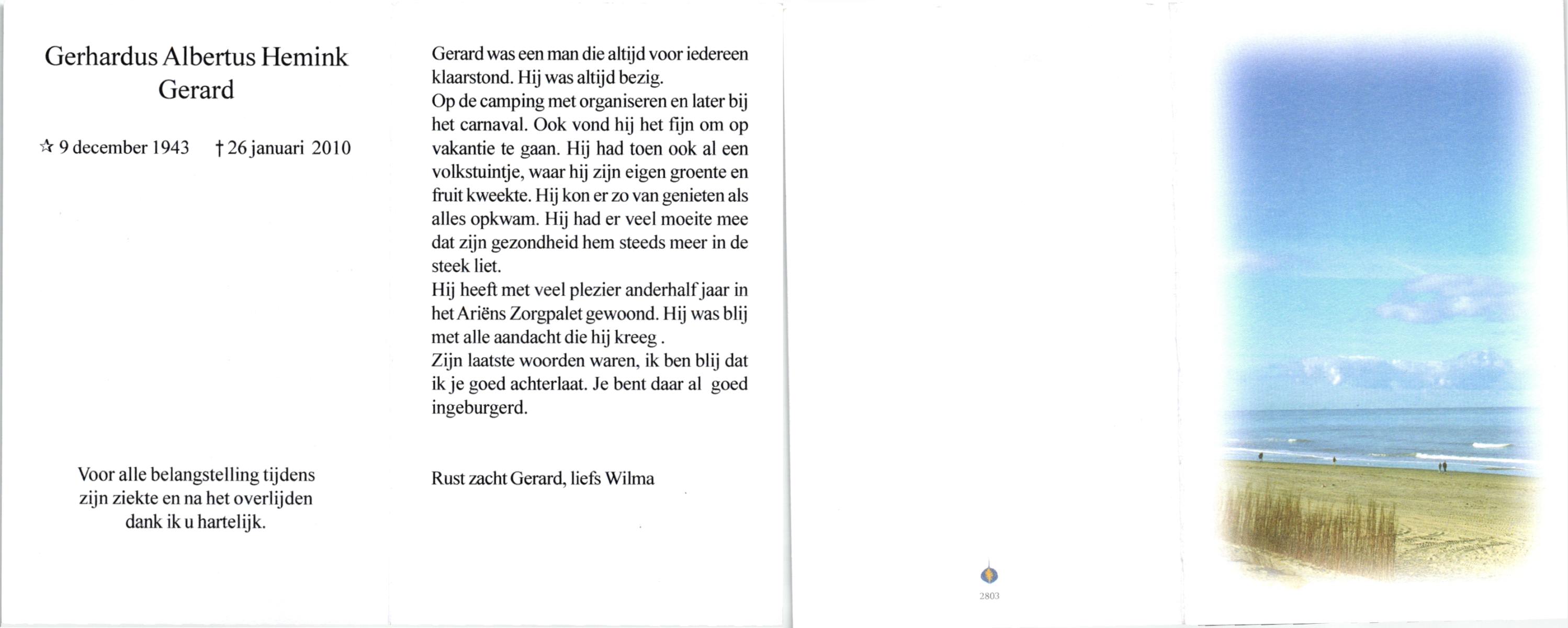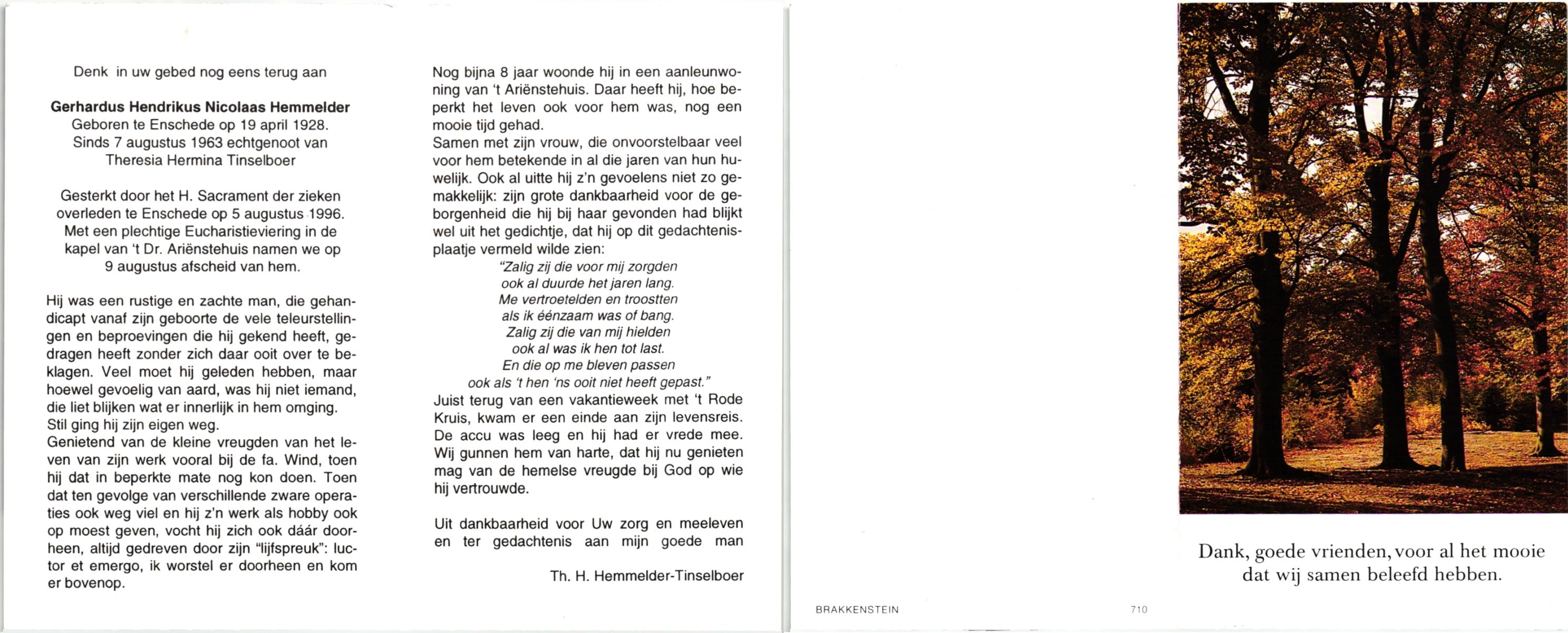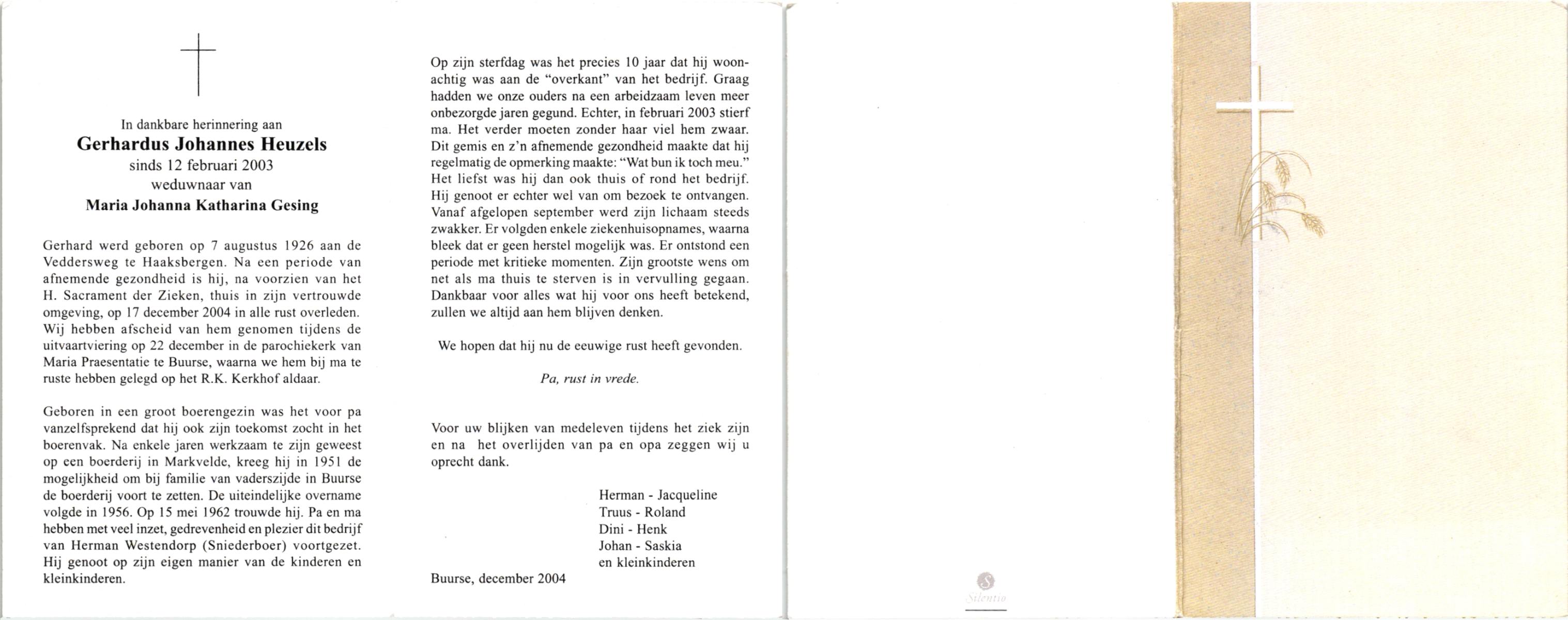 HEIDEMAN, Gerard, geboren op 29-3-1926 te Losser, overleden op 29-8-2014 te Borne op 88-jarige leeftijd.