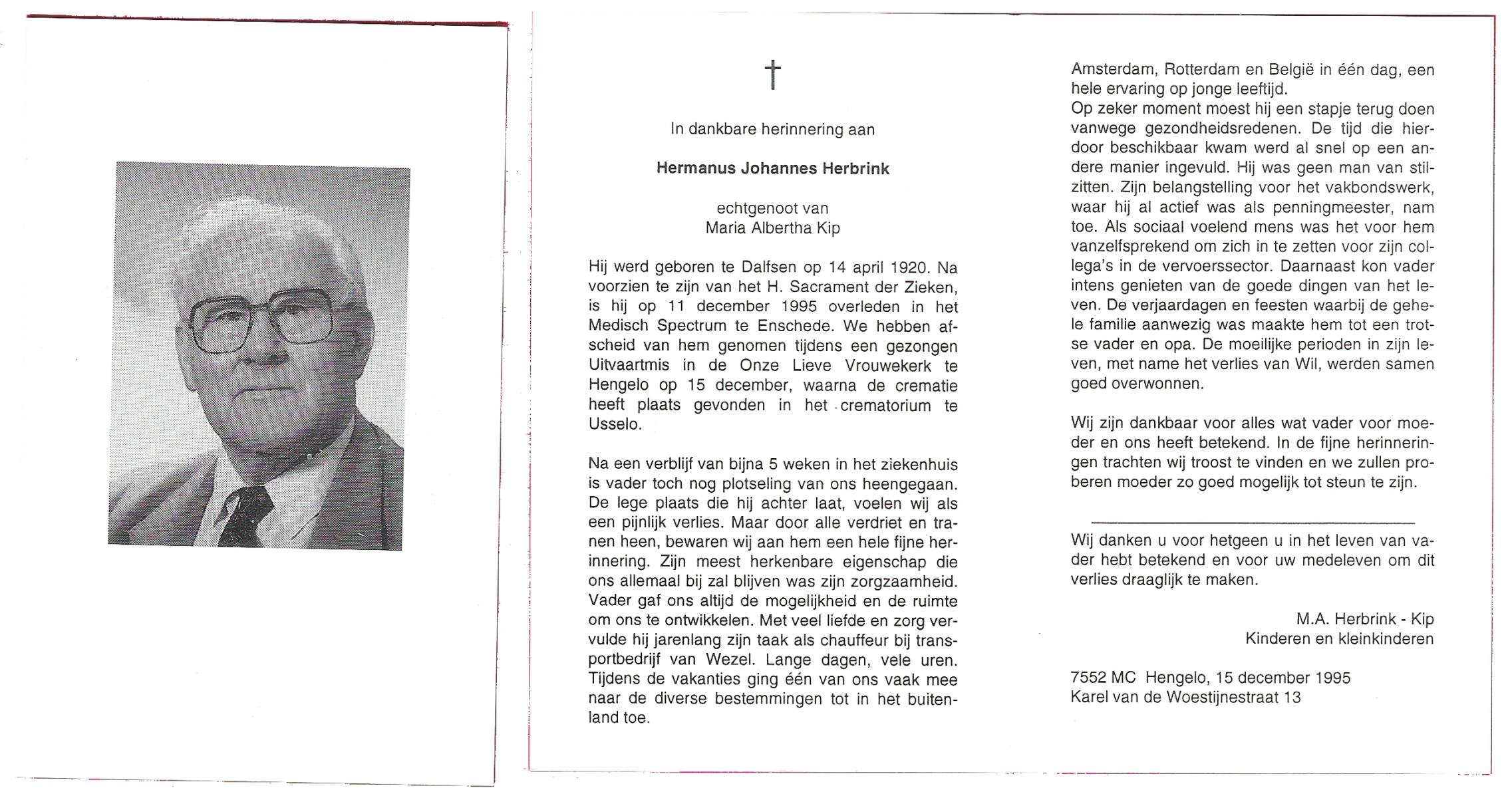 HILDERINK, Herman, geboren op 18-1-1927, overleden op 6-1-1993 op 65-jarige leeftijd.