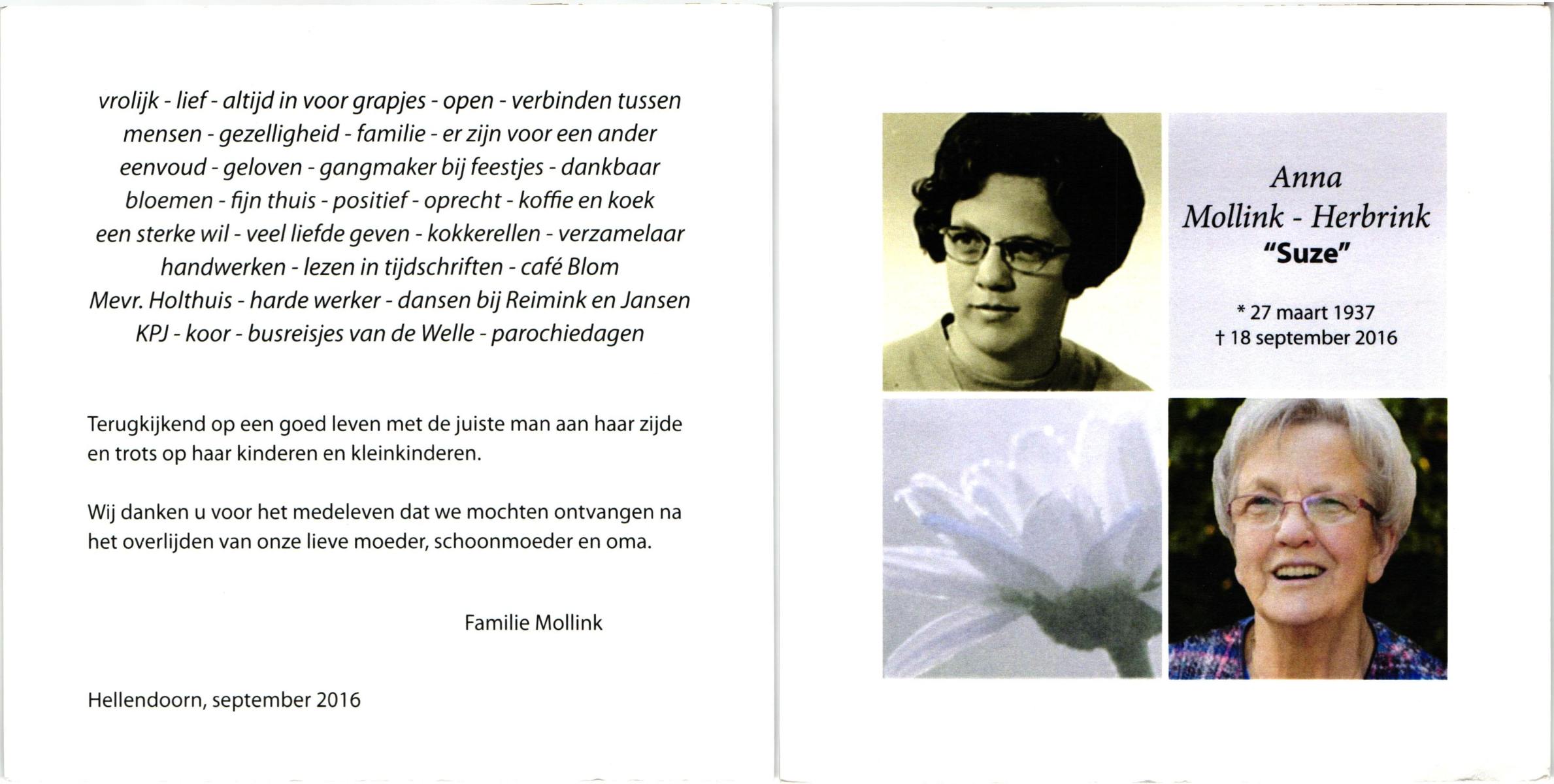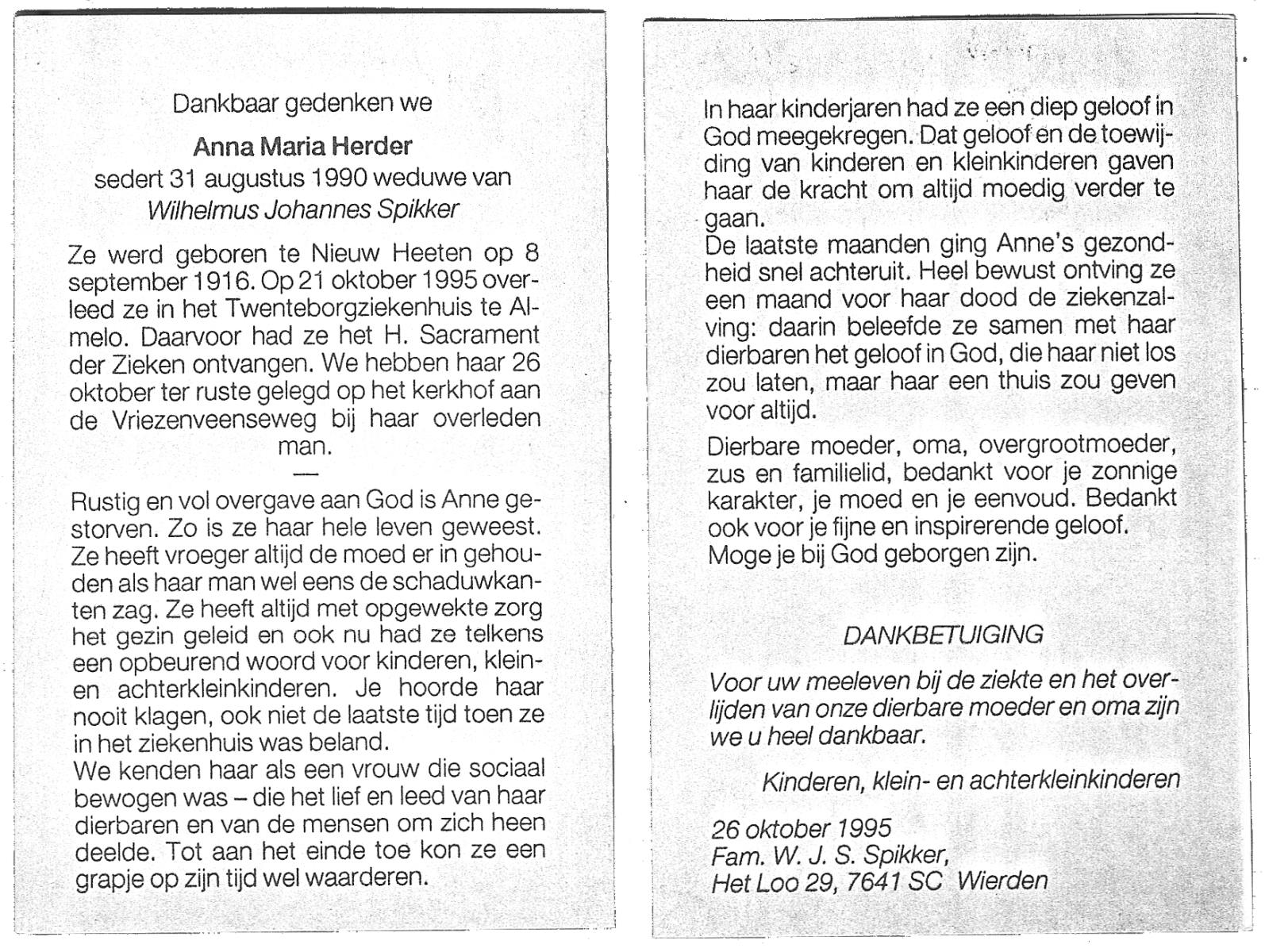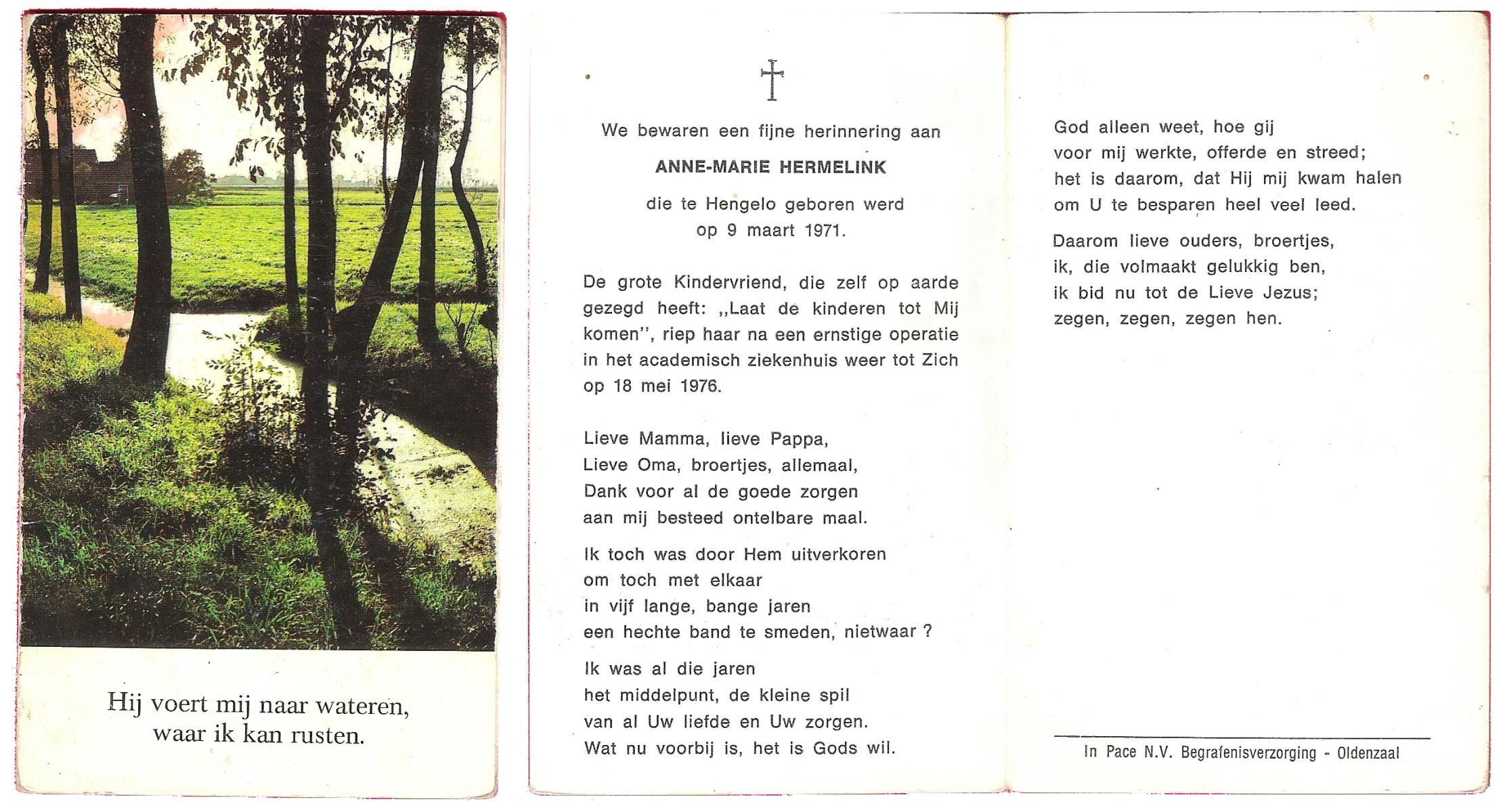 HILDERINK, Anna Maria, geboren op 26-10-1913 te Haaksbergen, overleden op 23-11-1994 op 81-jarige leeftijd, begraven op 28-11-1994 te Haaksbergen.