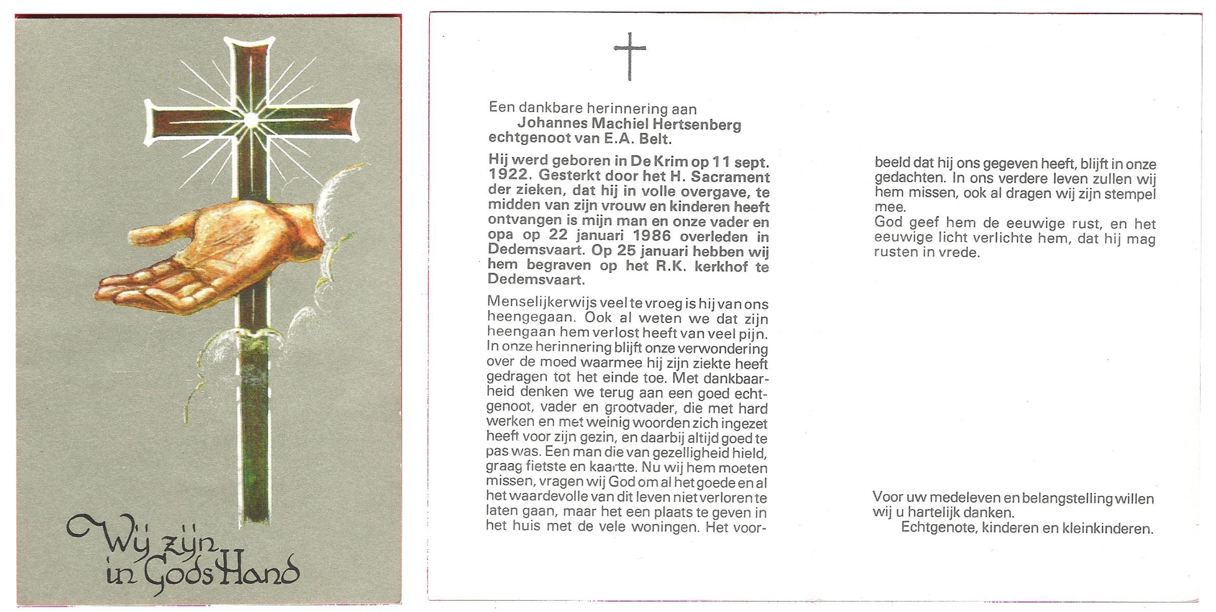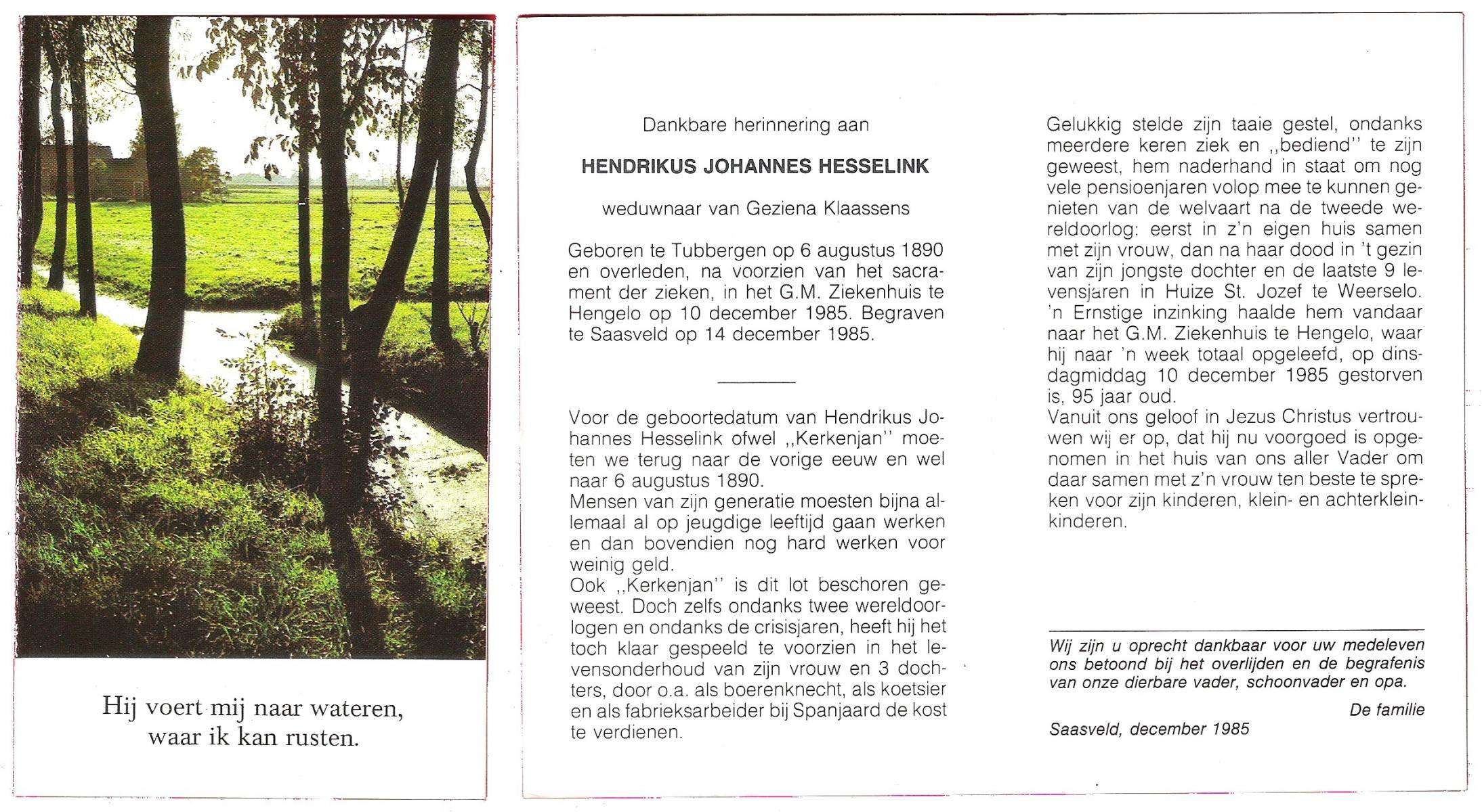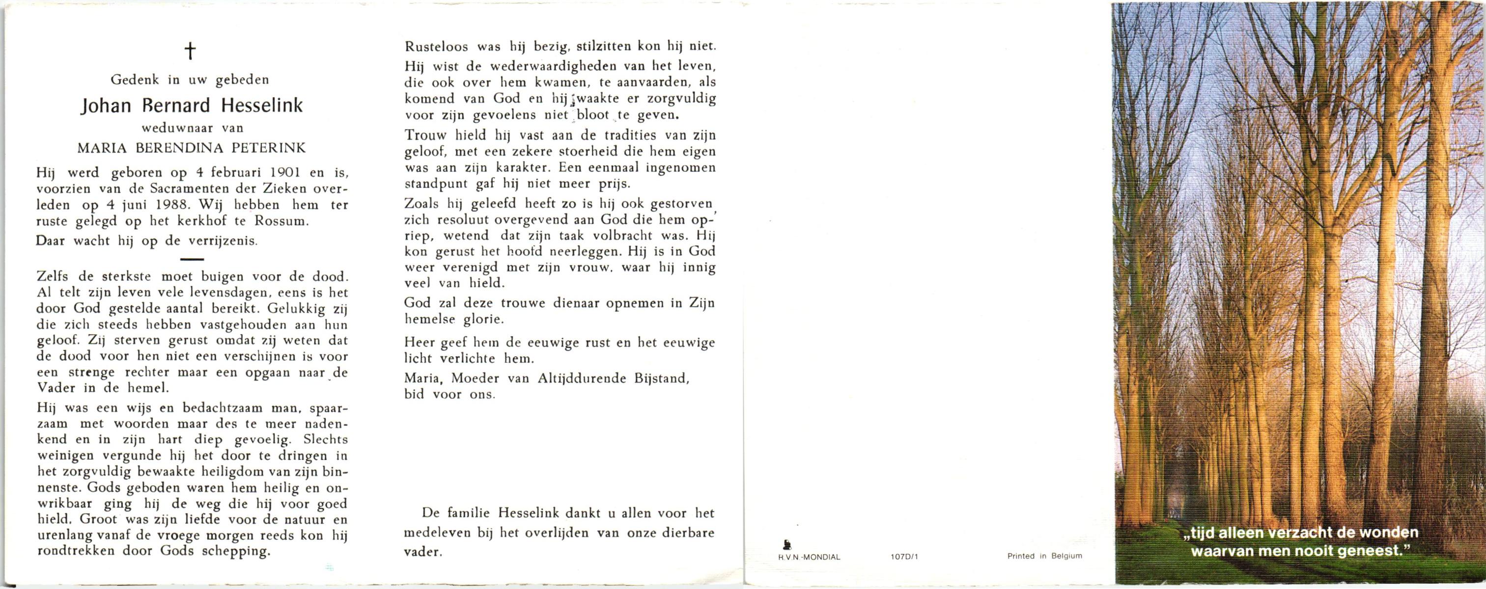 HILBERINK, Johannes Hermanus, geboren op 19-4-1930 te Harbrinkhoek, overleden op 31-12-1988 te Tubbergen op 58-jarige leeftijd, begraven op 5-1-1989 te Tubbergen R.K.kerkhof.