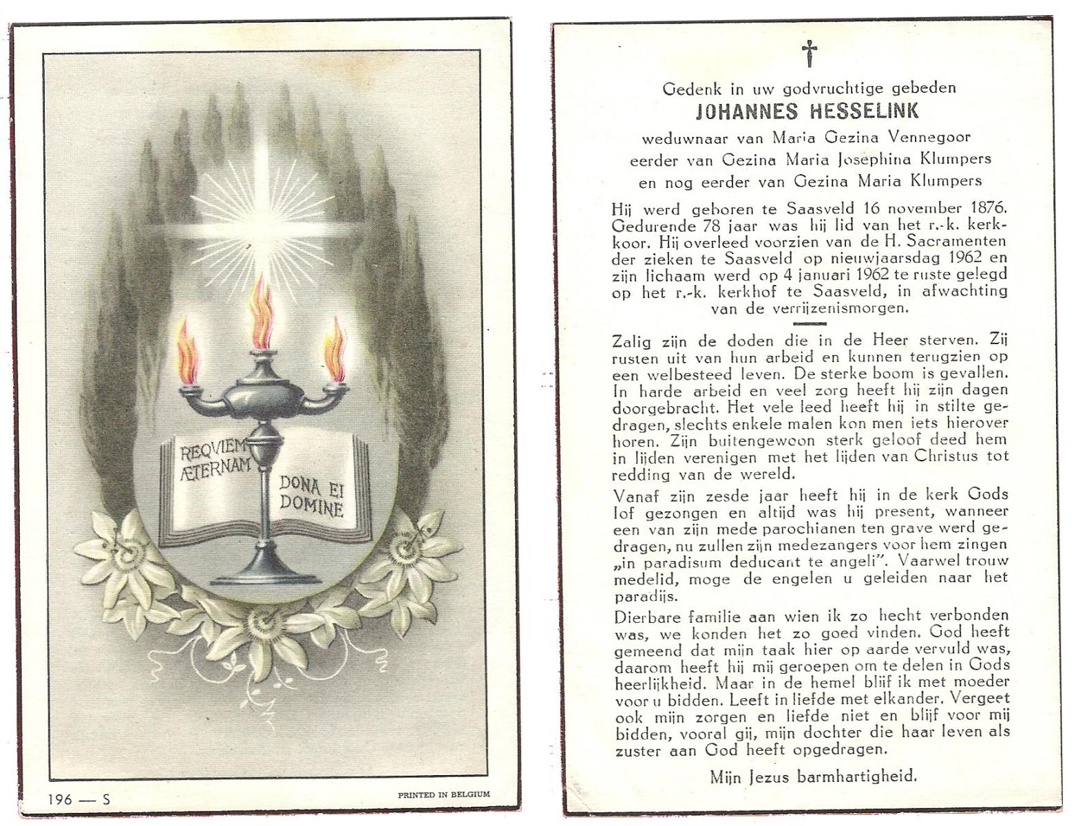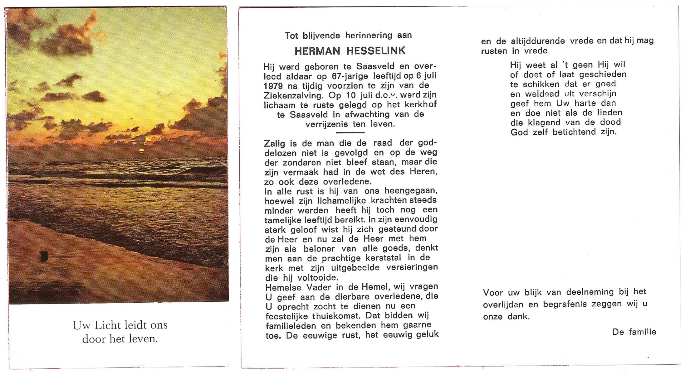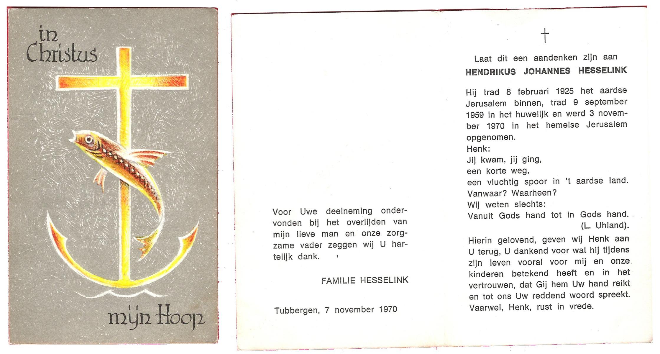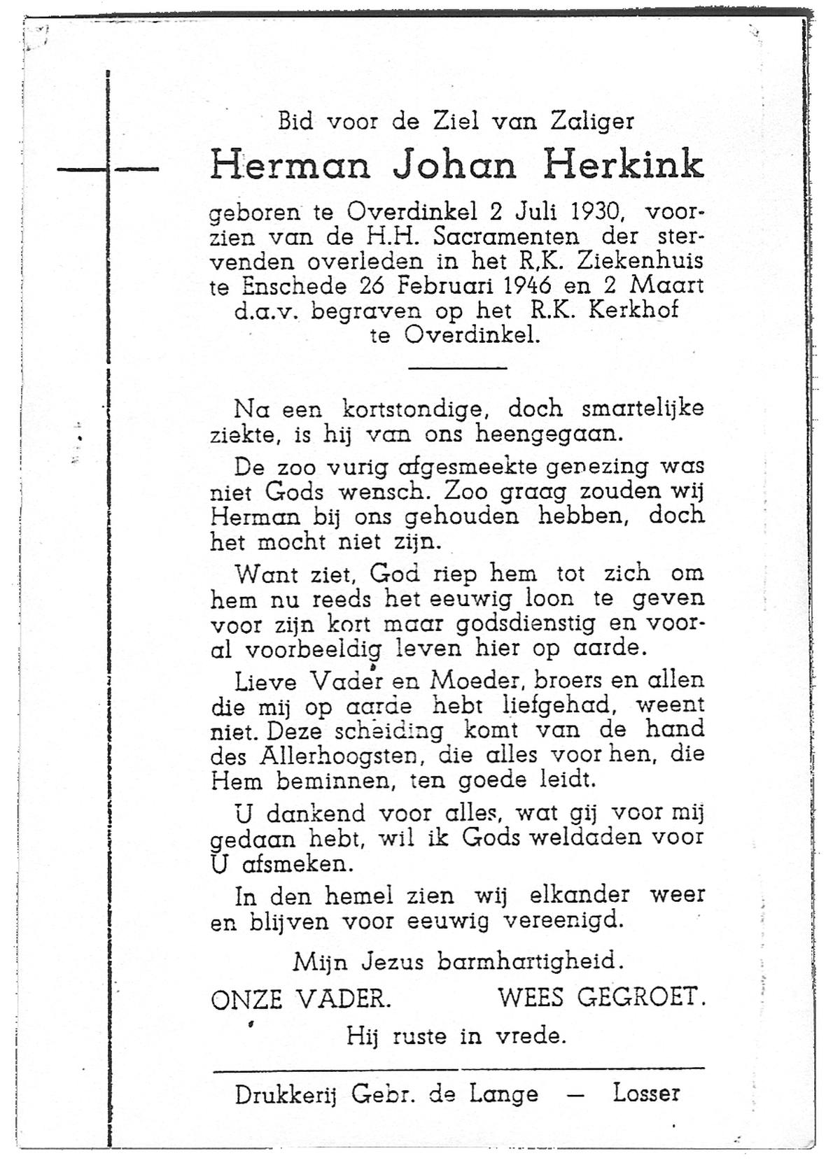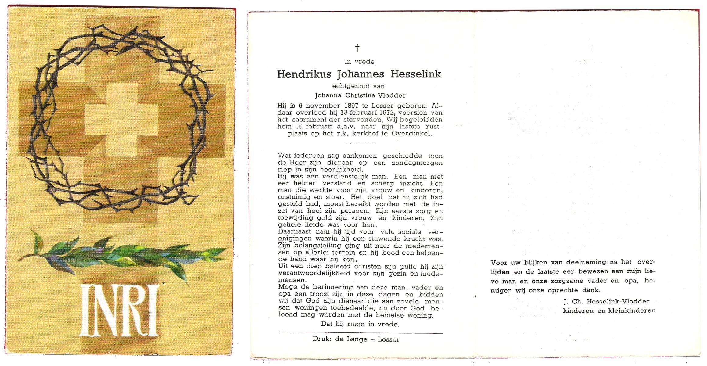 HOBBELINK, Hermanus Johannes, geboren op 21-09-1893 te Losser, overleden op 27-2-1963 op 69-jarige leeftijd, begraven op 2-3-1963 te Losser.