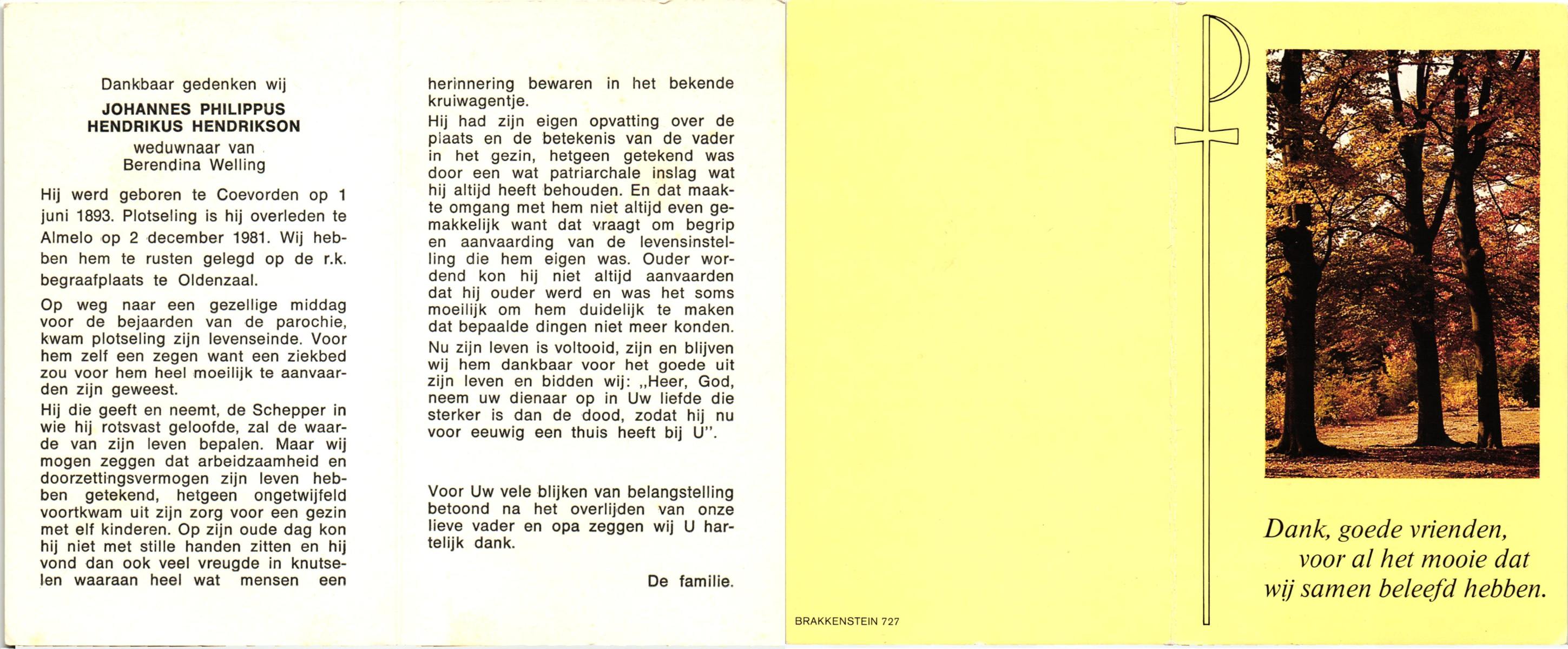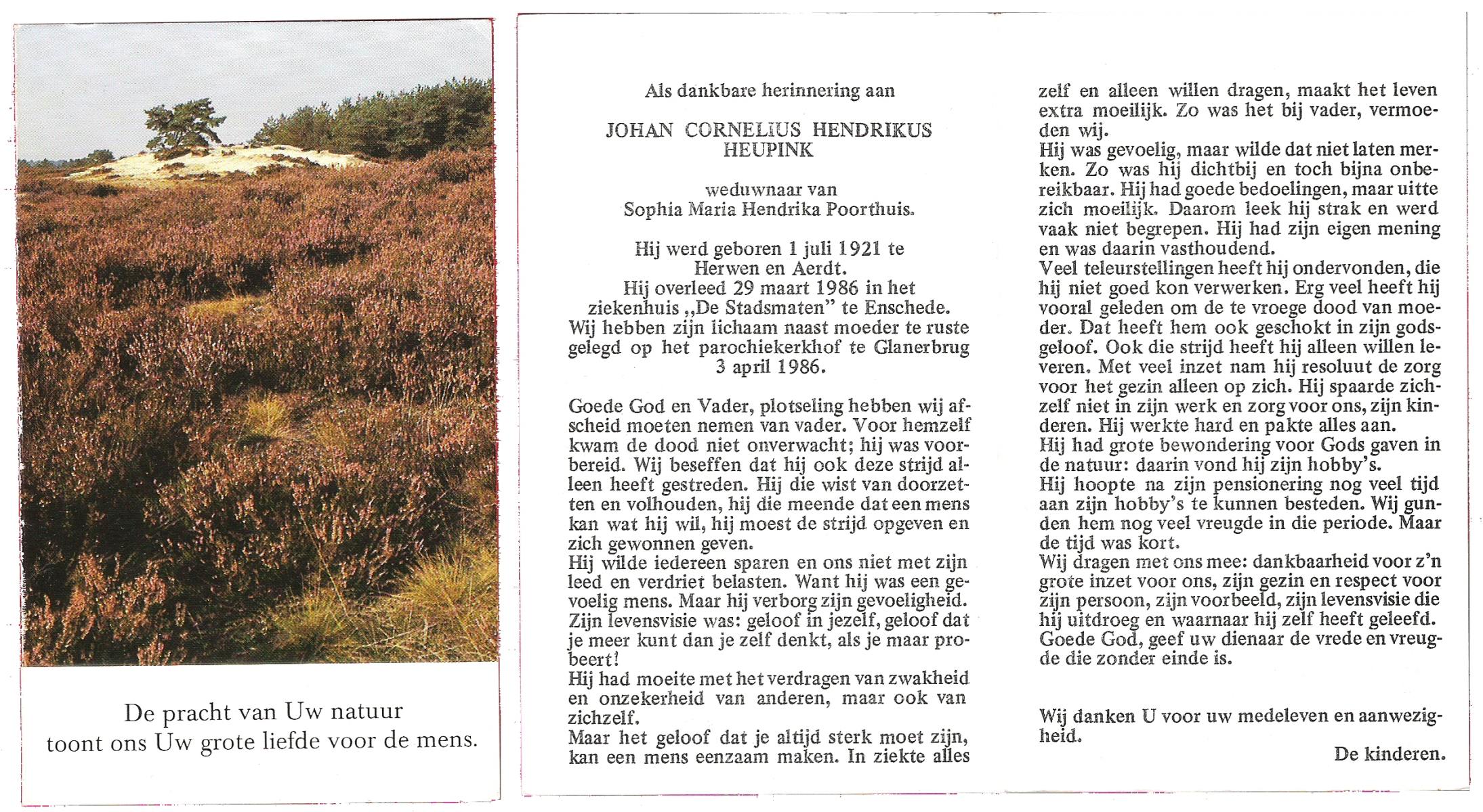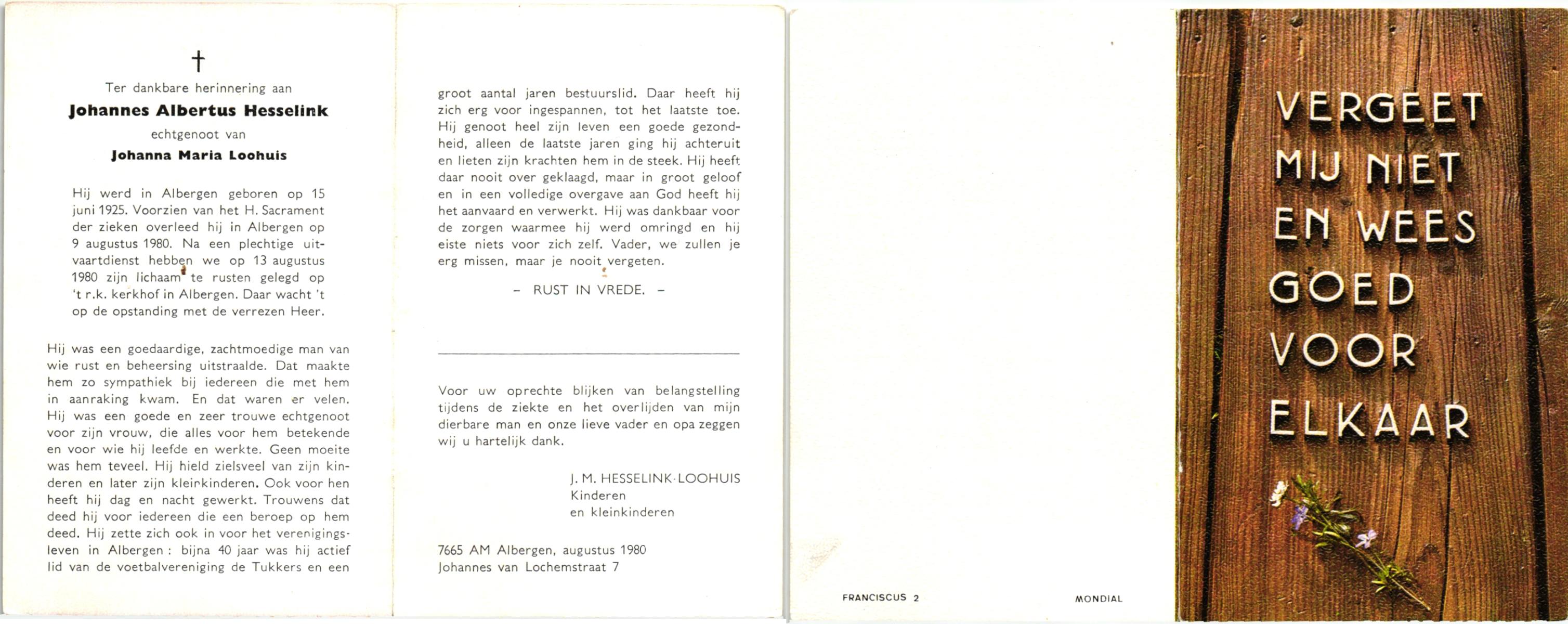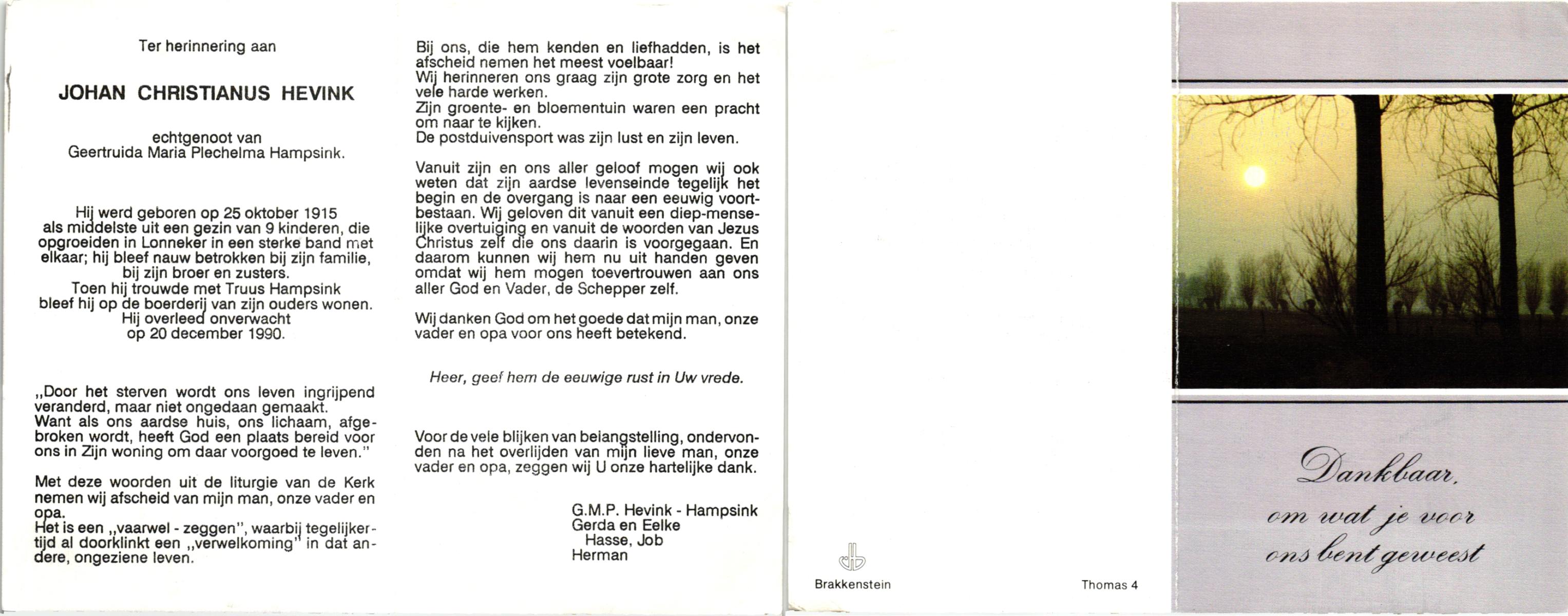 HILDERINK, Johannes Antonius, geboren op 15-4-1914 te Buurse, overleden op 29-3-1986 te Buurse op 71-jarige leeftijd, begraven op 3-4-1986 te Buurse.