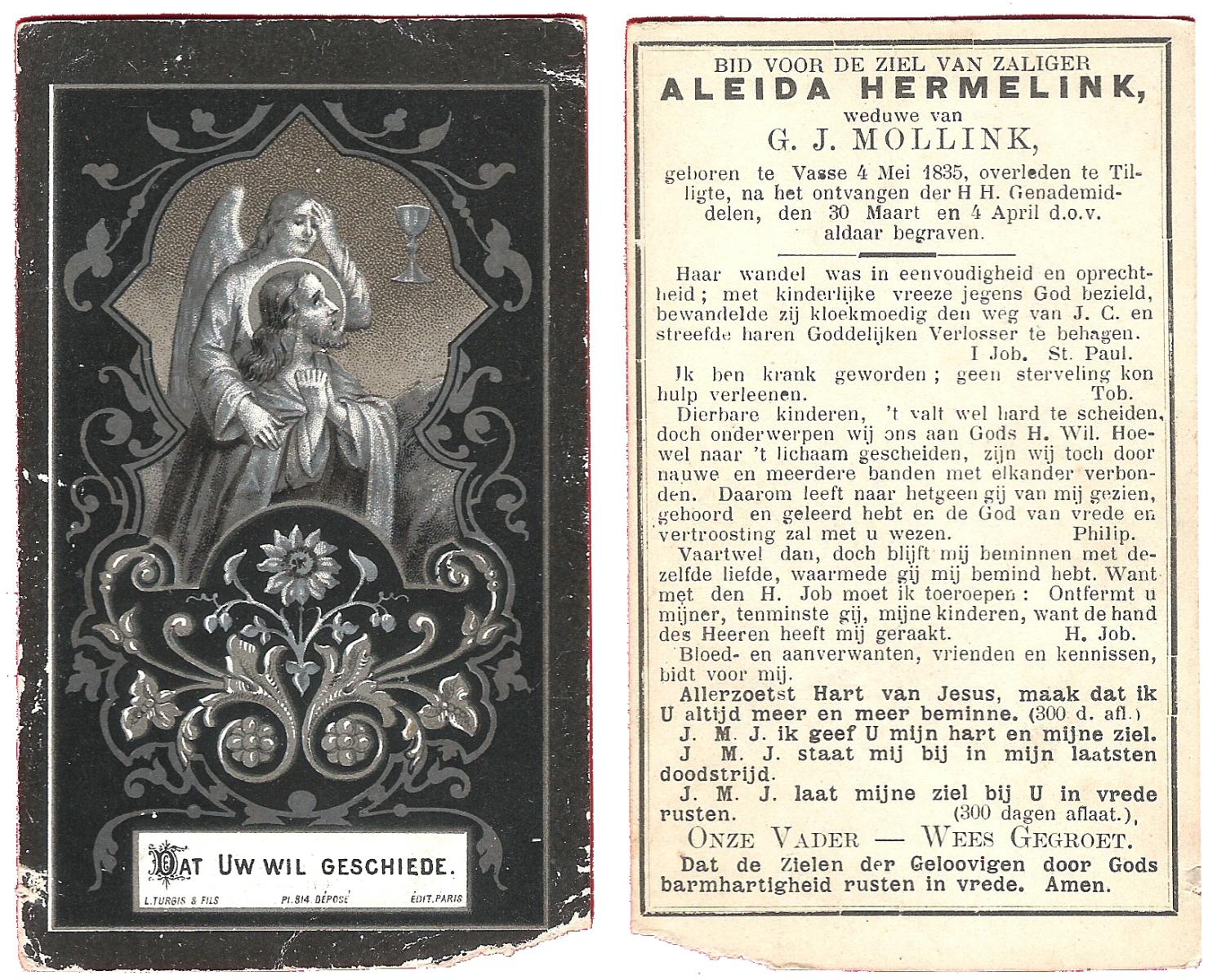 HILDERINK, Johanna Hermina, overleden op 11-3-1931 te Haaksbergen op 67-jarige leeftijd, begraven op 14-3-1931 te Haaksbergen.