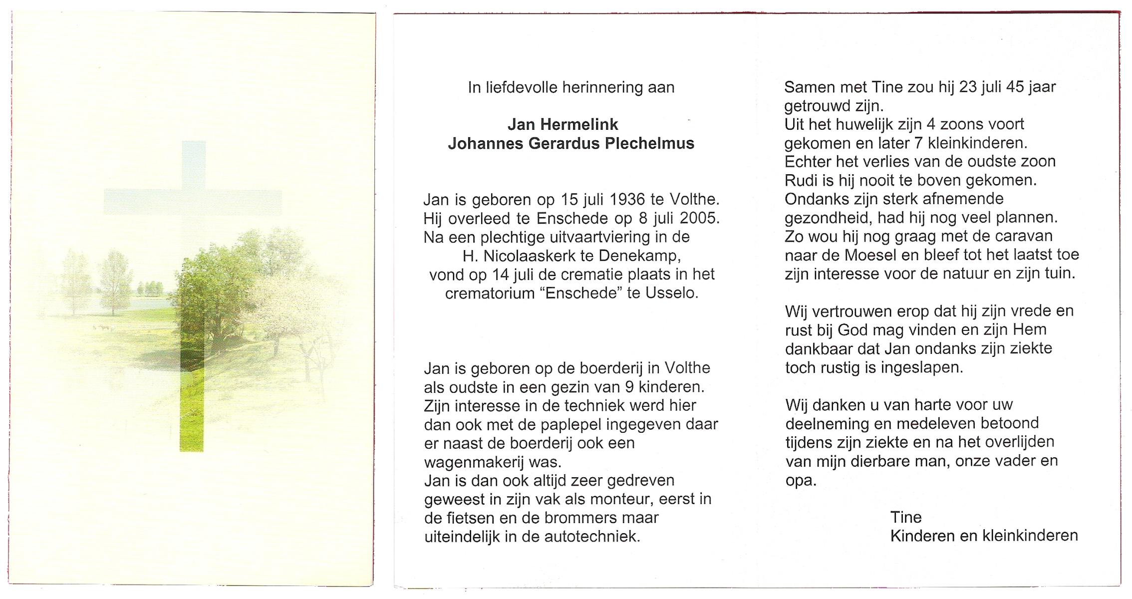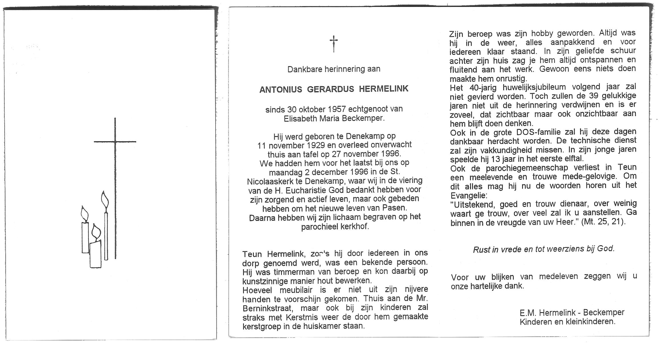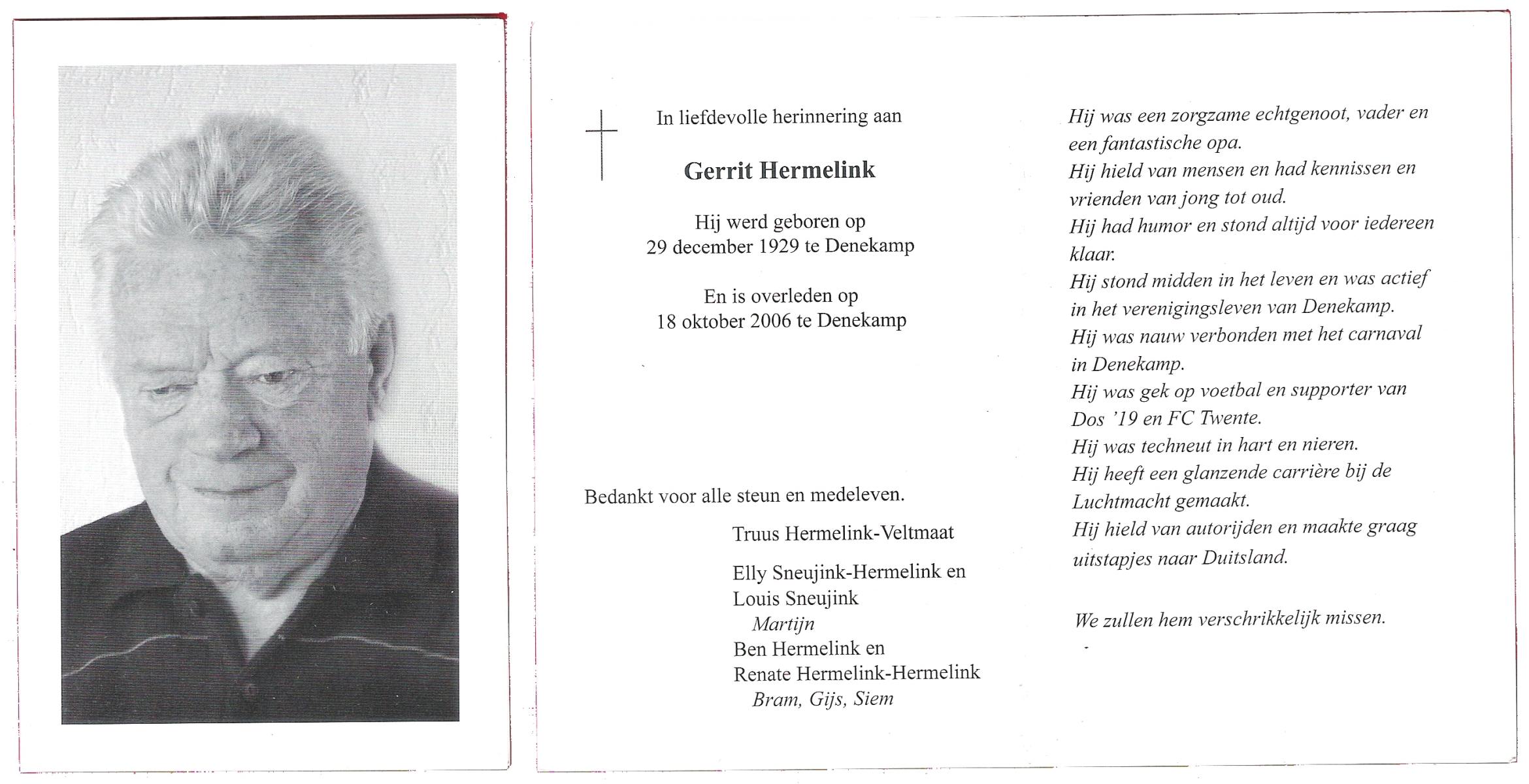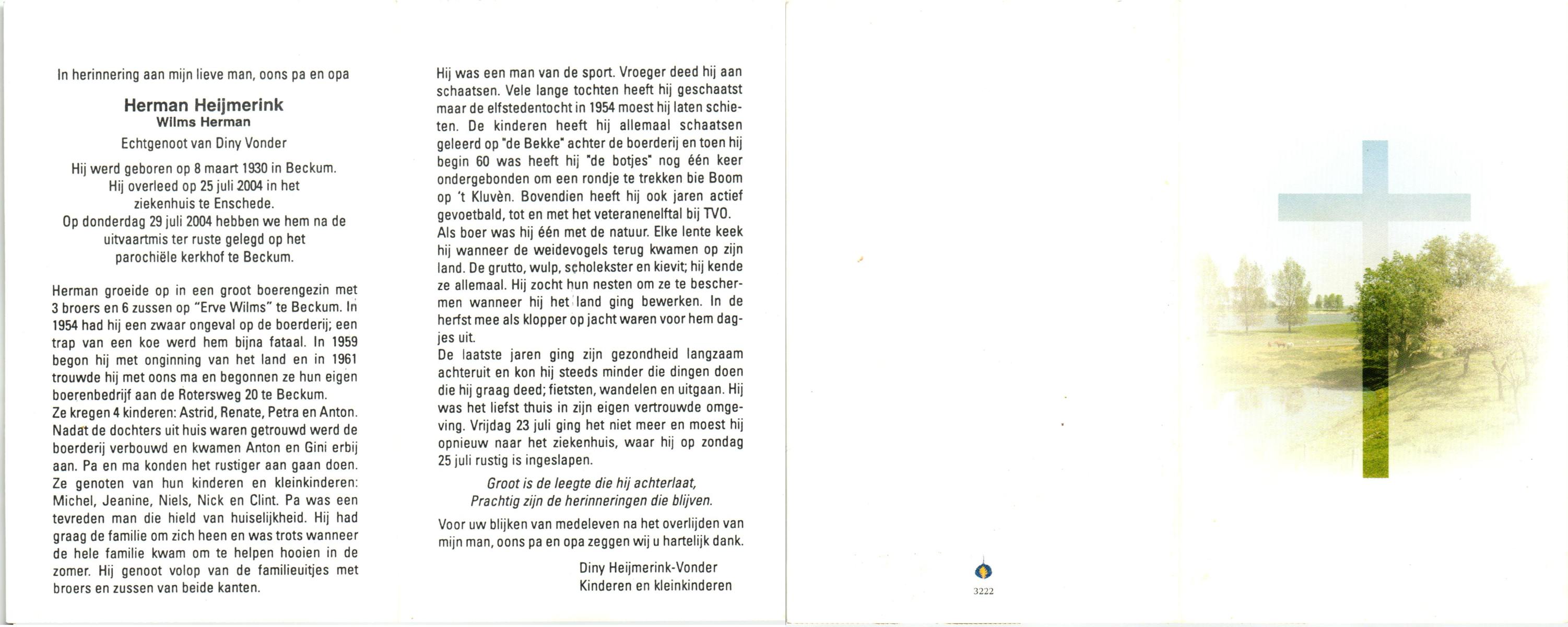 HEIJMERINK, Herman, geboren op 8-3-1930 te Beckum, overleden op 25-7-2004 te Enschede, ziekenhuis op 74-jarige leeftijd, begraven op 29-7-2004 te Beckum.