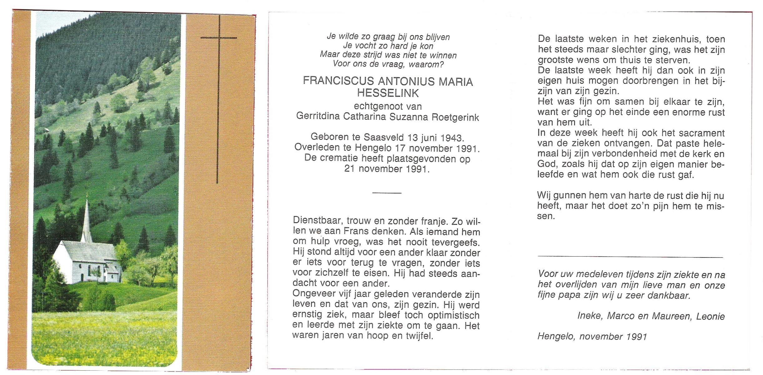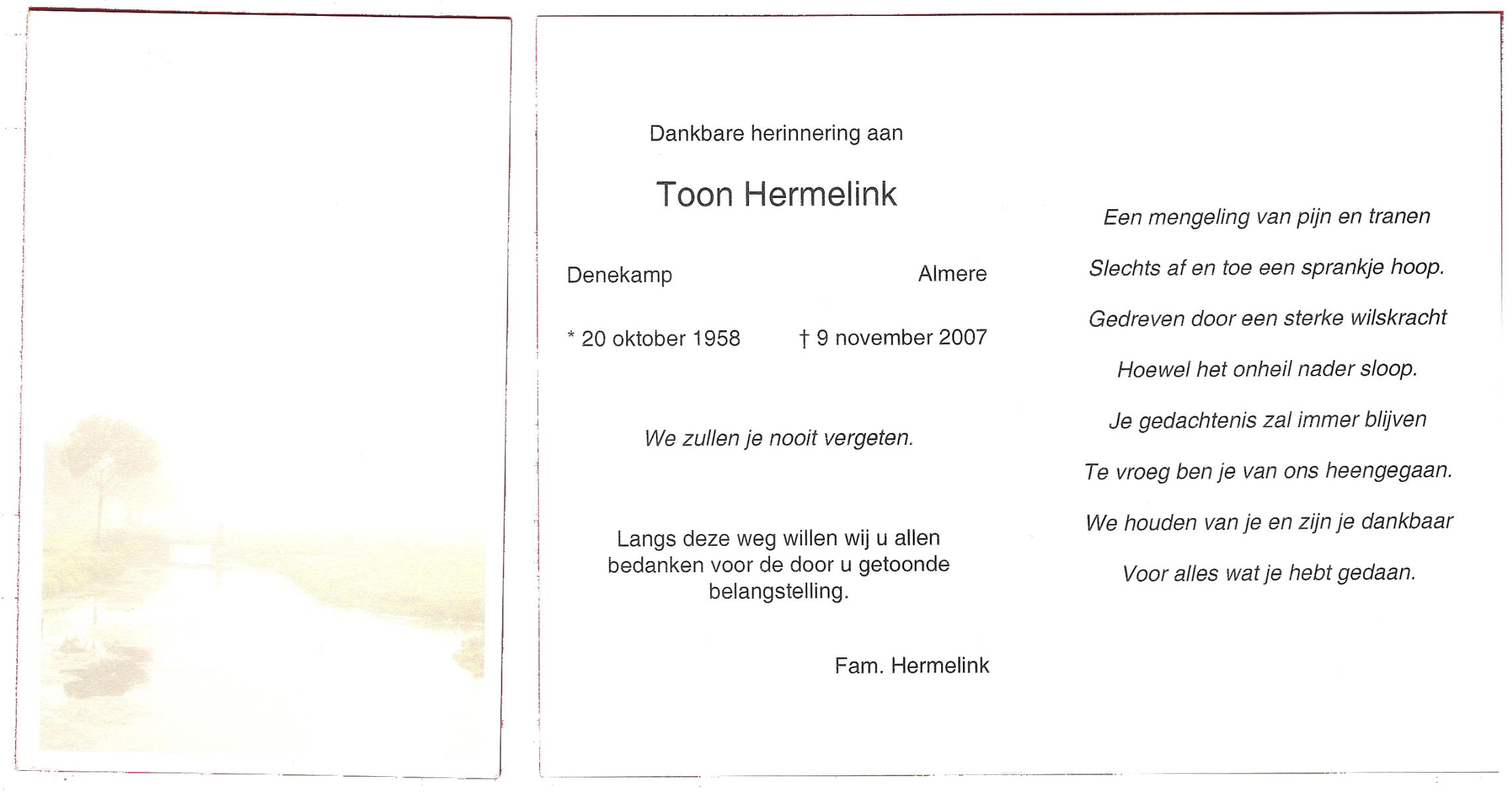 HILDERINK, Hermannus Hendrikus, geboren op 22-4-1936 te Boekelo, overleden op 4-1-1992 te Boekelo op 55-jarige leeftijd, begraven op 8-1-1992 te Boekelo.