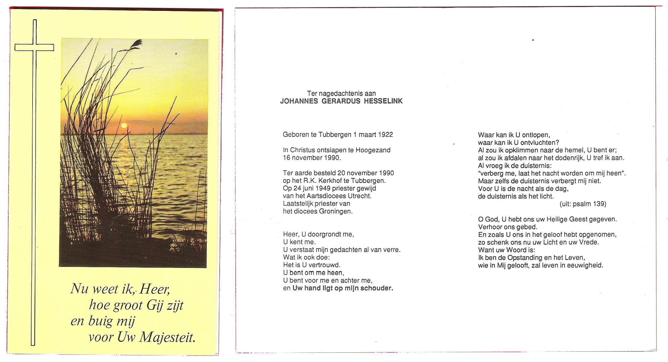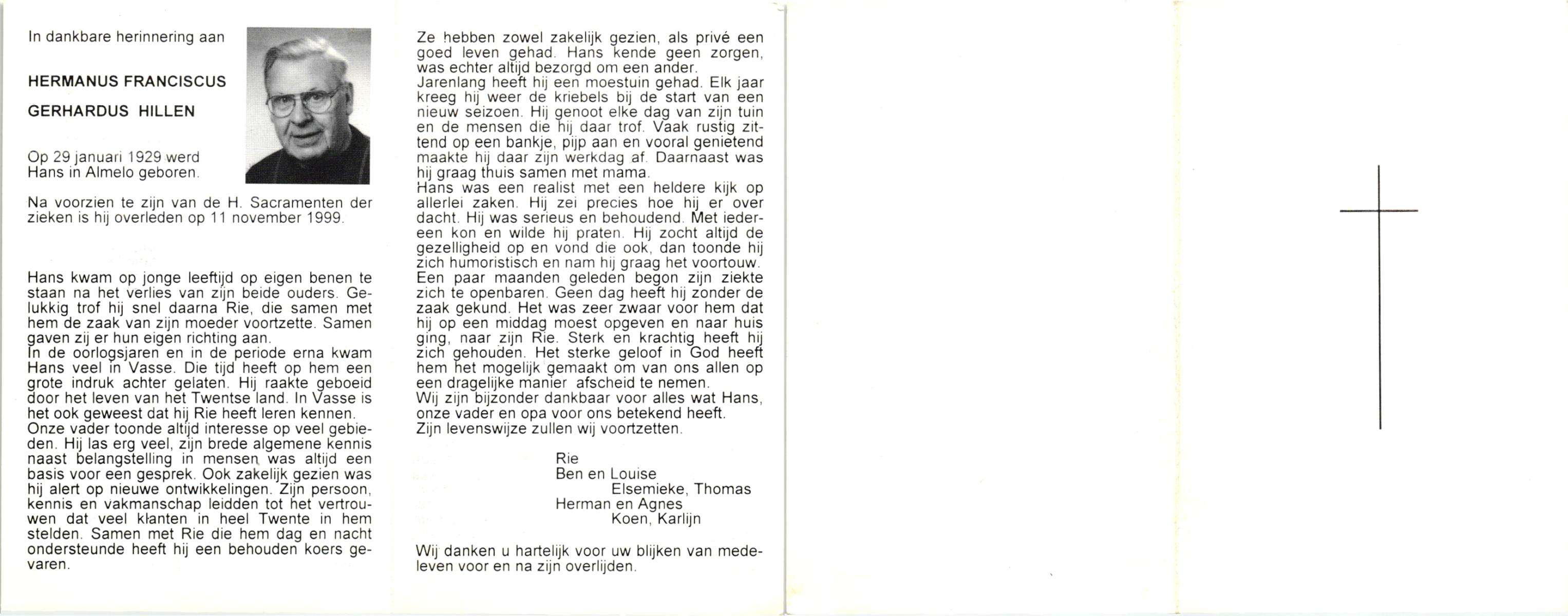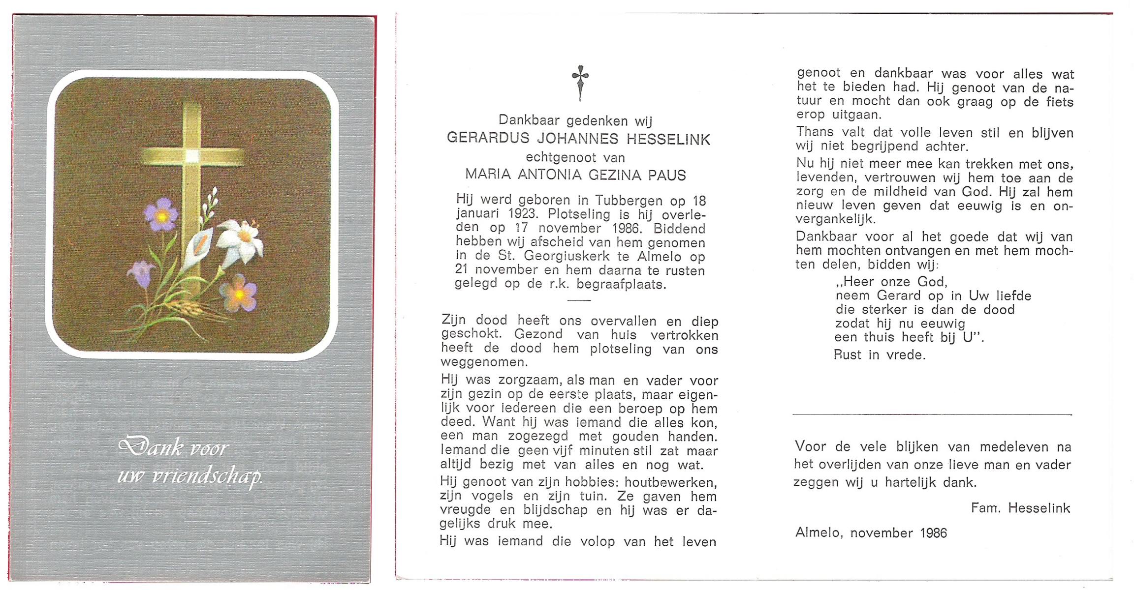 HILGERINK, Gerhardus Johannes, geboren op 17-4-1919 te Almelo, overleden op 22-3-1990 te Enschede op 70-jarige leeftijd, gecremeerd op 26-3-1990 te Usselo.