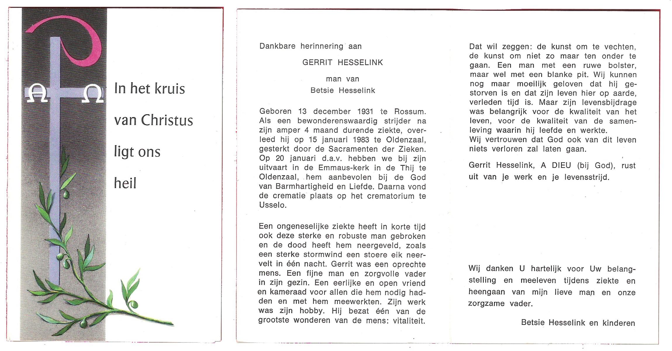 HILDERINK, Arend Jan, geboren op 26-4-1908 te Buurse, overleden op 26-11-1983 te Enschede op 75-jarige leeftijd, gecremeerd op 30-11-1983 te Usselo.