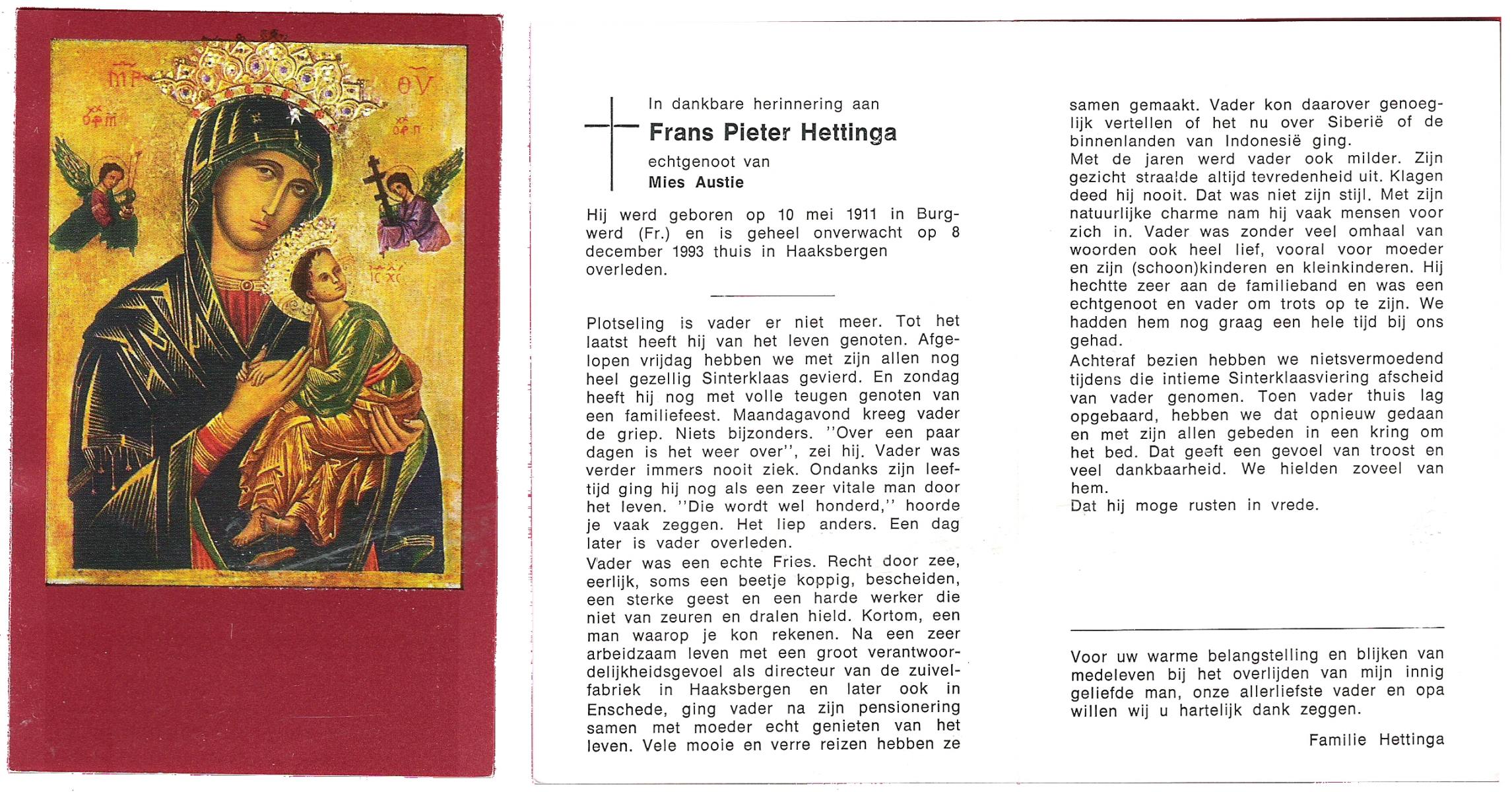 HILDERINK, Jan Antonius Marinus, geboren op 2-7-1934 te Haaksbergen, overleden op 29-7-1993 te Enschede op 59-jarige leeftijd, begraven op 3-8-1993 te Haaksbergen.