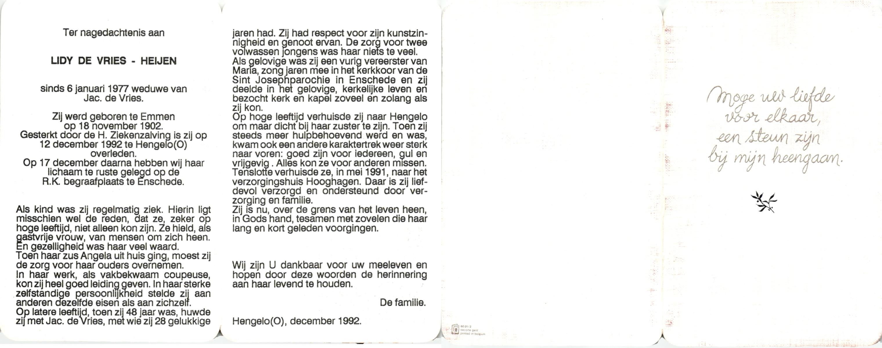 HEIJEN, , Lidy, geboren op 18-11-1902 te Emmen, overleden op 12-12-1992 te Hengelo (O) op 90-jarige leeftijd, begraven op 17-12-1992 te Enschede.