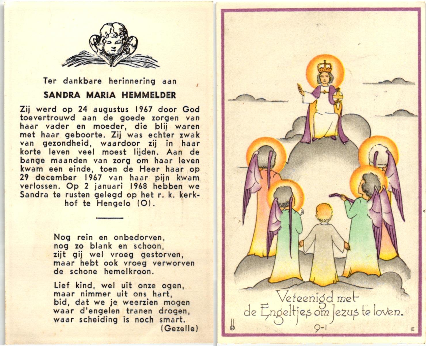 HILGERINK, Grada Margaretha Maria, geboren op 10-9-1918 te Enschede, overleden op 22-2-1967 te Hengelo (Ov.) op 48-jarige leeftijd, begraven op 27-2-1967 te Hengelo (Ov.).