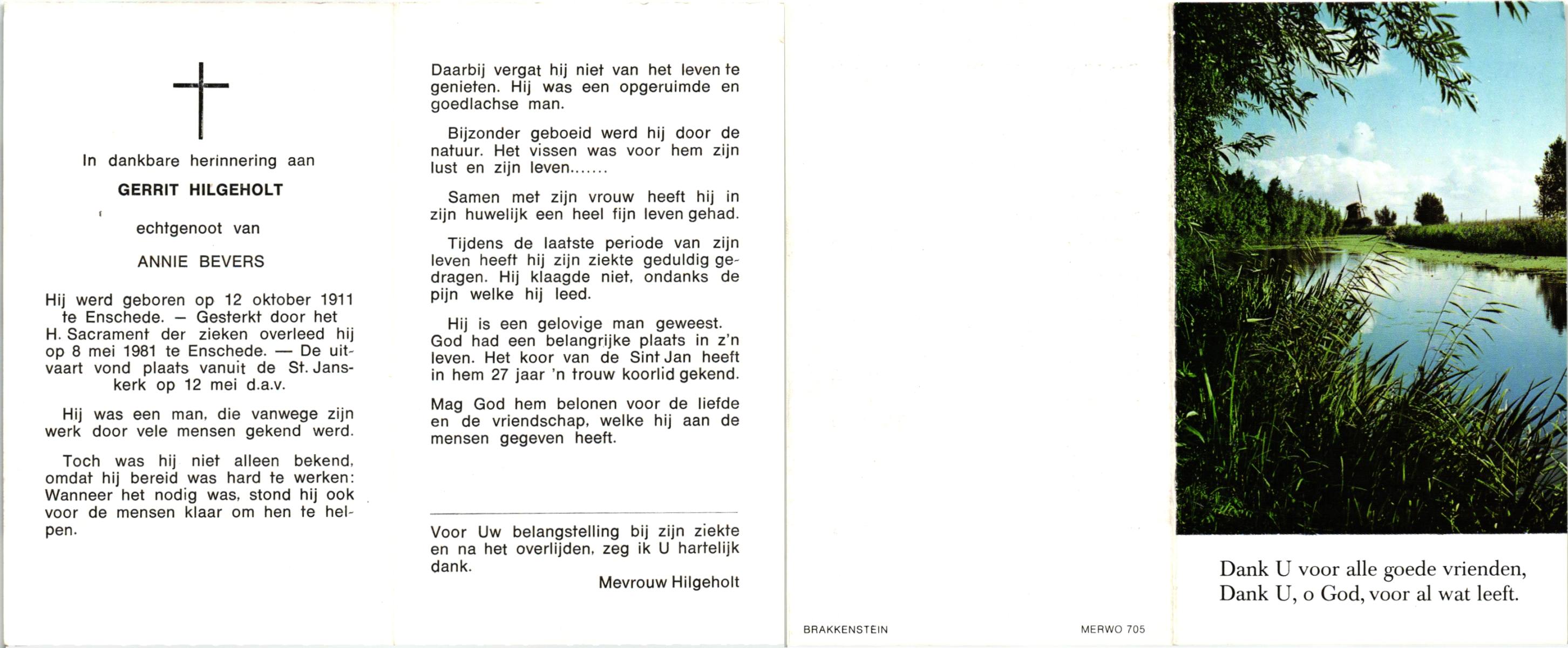 HILGEHOLT, , Gerrit, geboren op 12-10-1911 te Enschede, overleden op 8-5-1981 te Enschede op 69-jarige leeftijd.