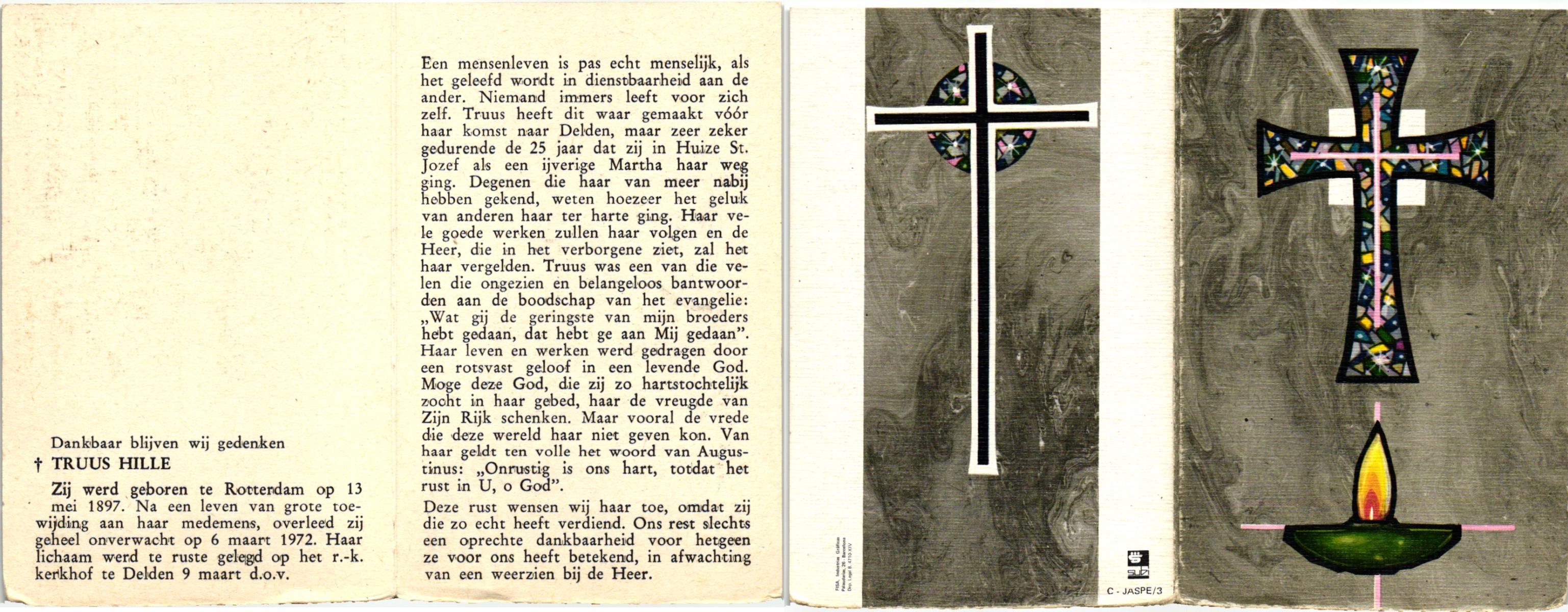 HILLE, , Truus, geboren op 13-05-1897 te Rotterdam, overleden op 6-3-1972 op 74-jarige leeftijd, begraven op 9-3-1972 te Delden.