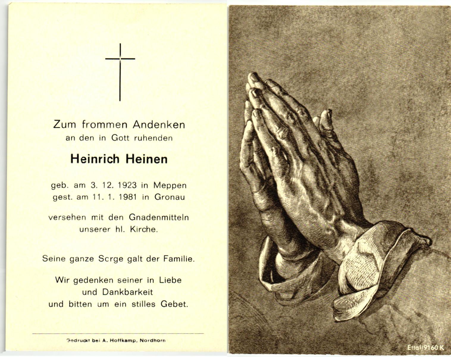 HEINEN, Heinrich, geboren op 3-12-1923 te Meppen, Dld, overleden op 11-1-1981 te Gronau, Dld op 57-jarige leeftijd.