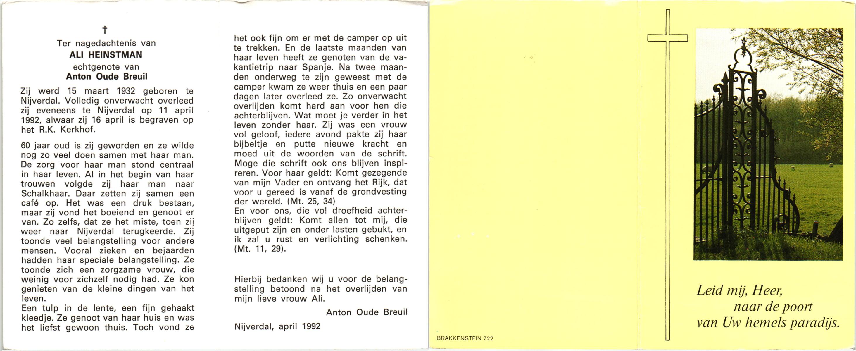 HEINSTMAN, Ali, geboren op 15-3-1932 te Hellendoorn, Nijverdal, overleden op 11-4-1992 te Hellendoorn, Nijverdal op 60-jarige leeftijd, begraven op 16-4-1992 te Hellendoorn, Nijverdal, rk.