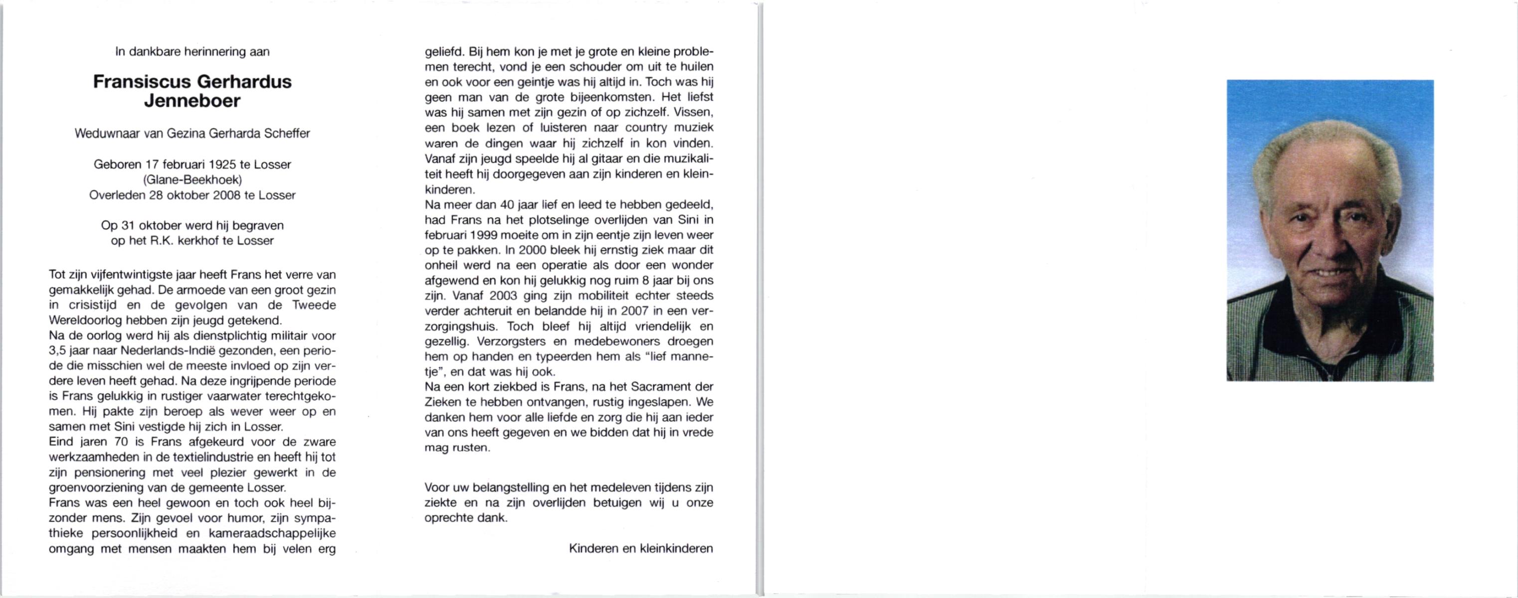 JANSSEN, Gerhardus Johannes, geboren op 27-12-1911 te Enschede, overleden op 31-1-1996 te Enschede op 84-jarige leeftijd.