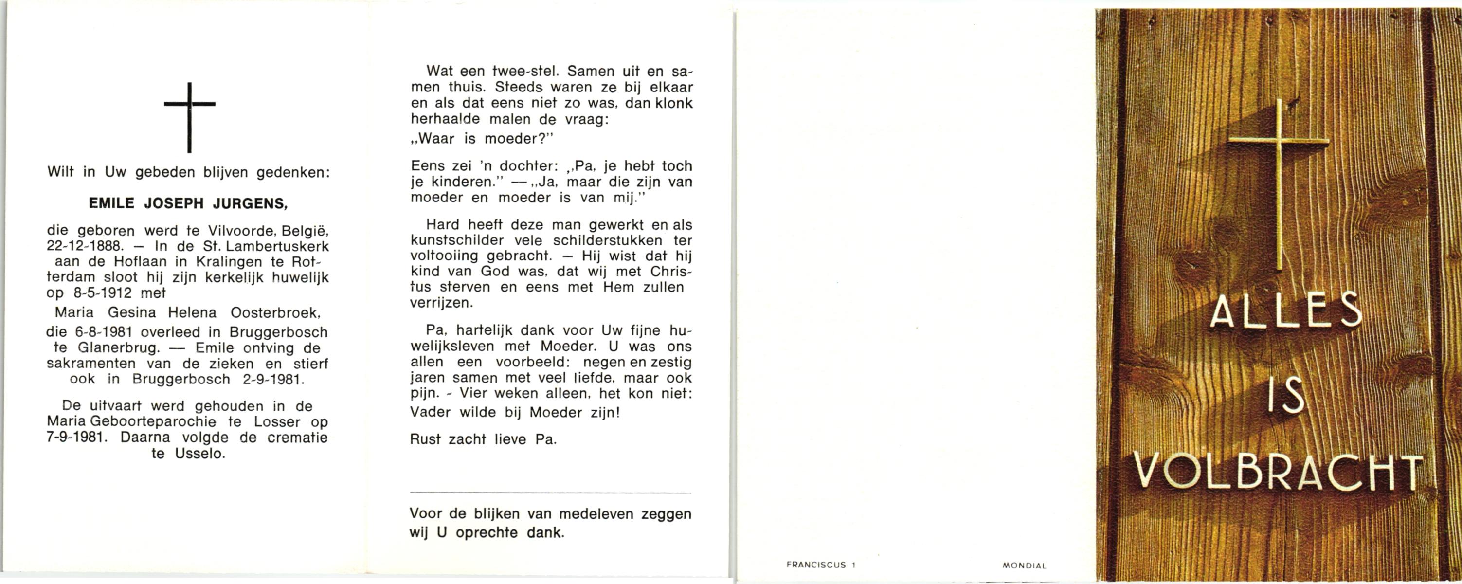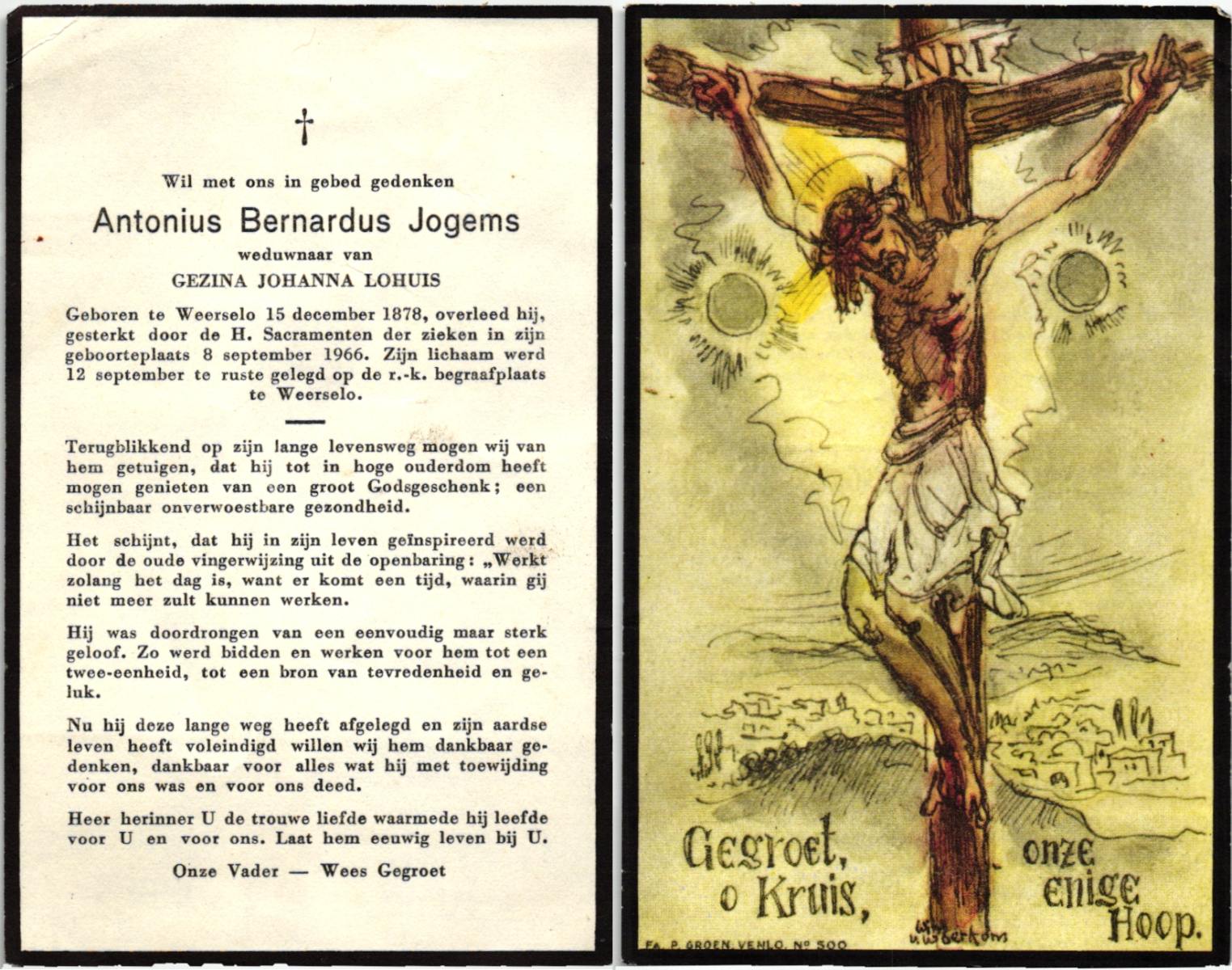 JANSEN, Josephes Maria Johannes, geboren op 03-01-1896 te Antwerpen(B), overleden op 26-7-1976 te Denekamp op 80-jarige leeftijd, gecremeerd op 29-7-1976 te Usselo.