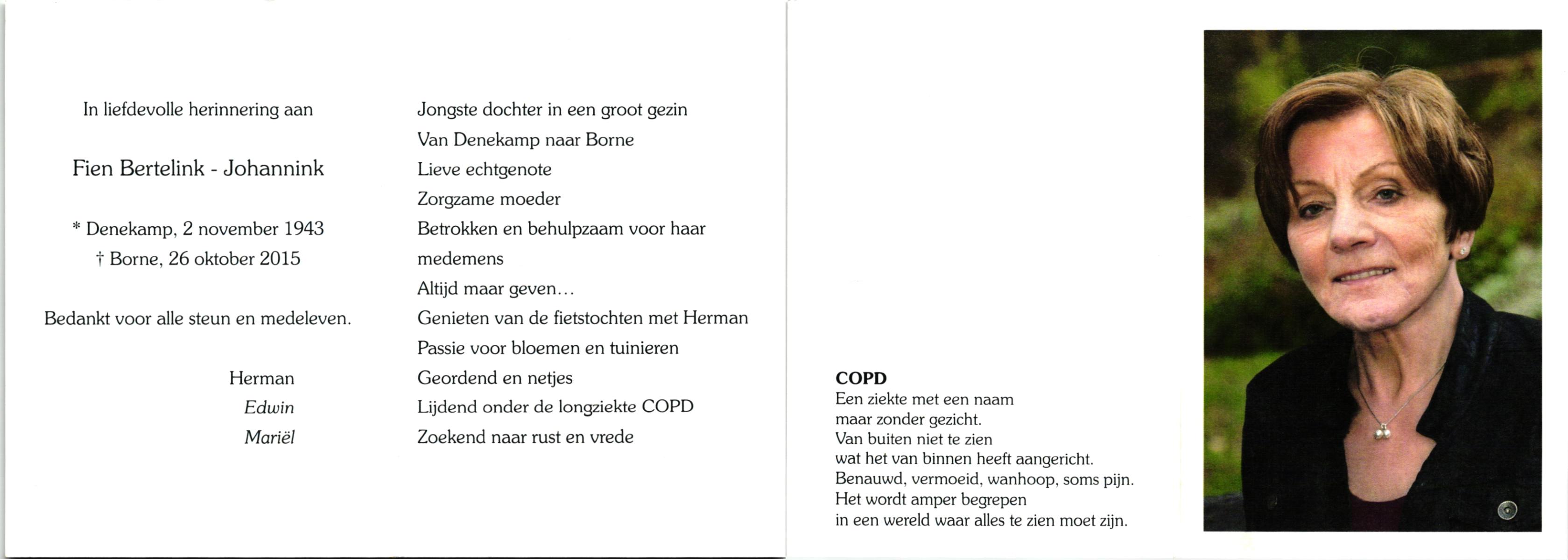 JANSINK, Fien, geboren op 14-10-1943 te Losser, overleden op 1-2-1964 te Losser op 20-jarige leeftijd, begraven op 4-2-1964 te Losser.