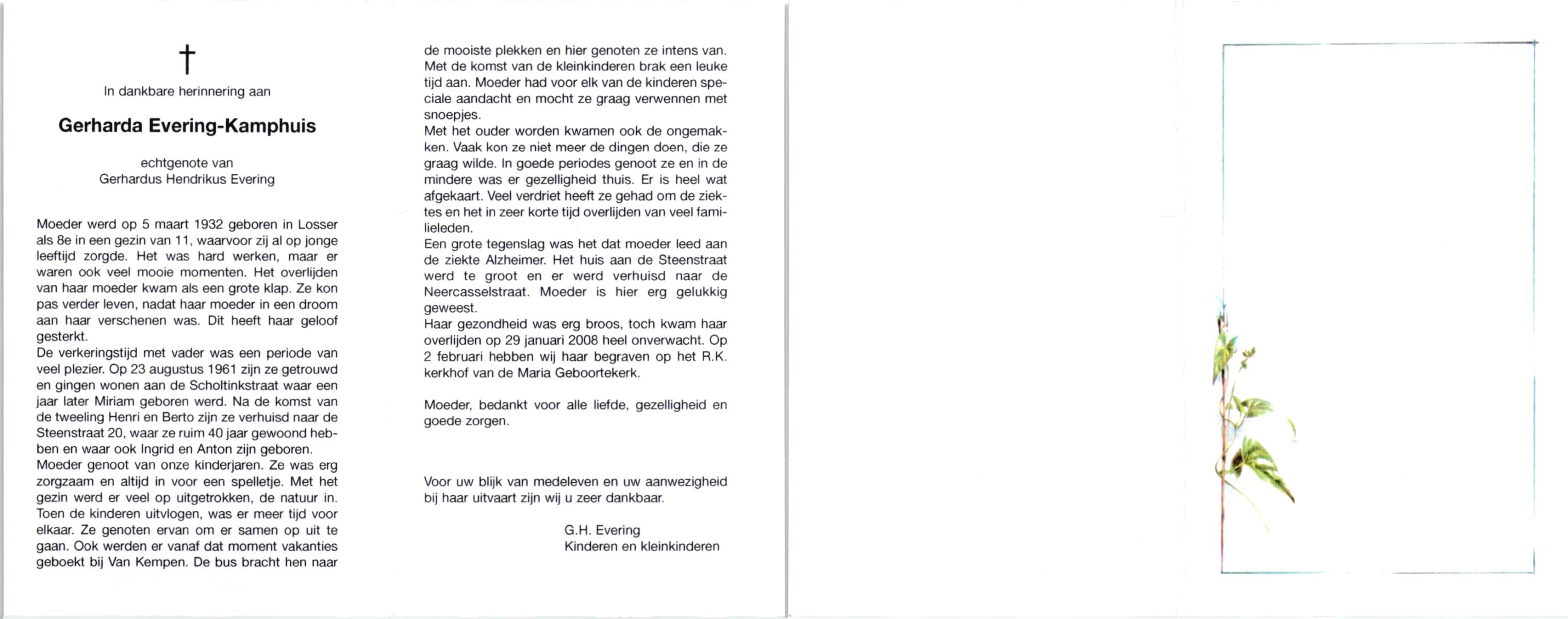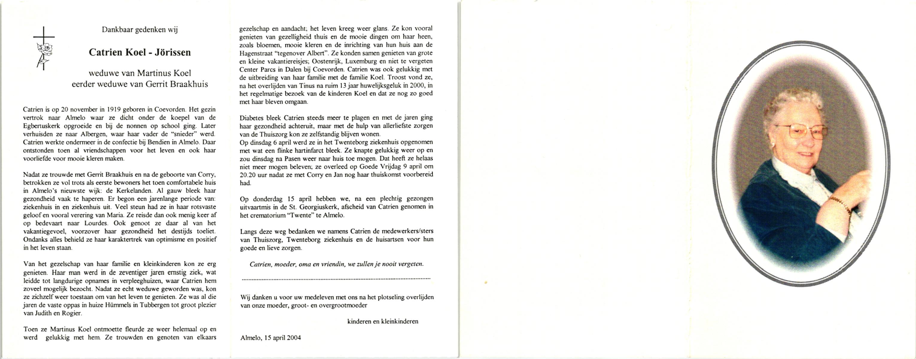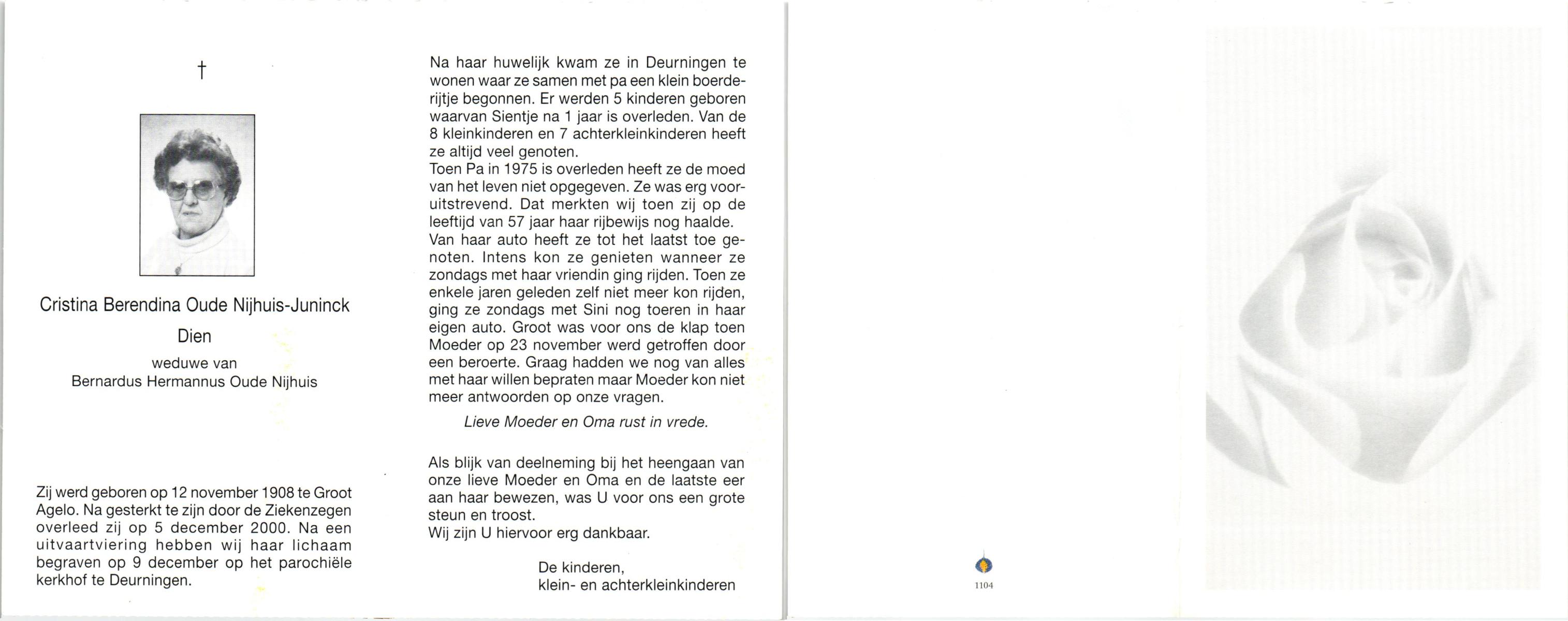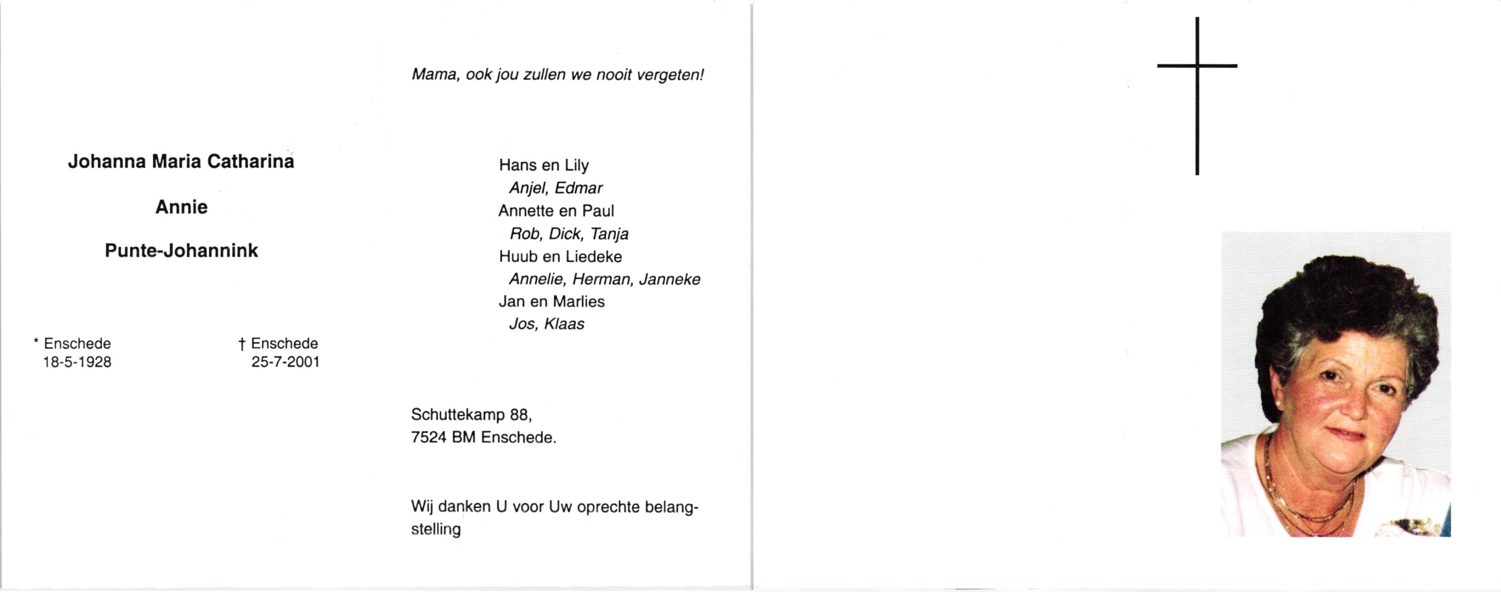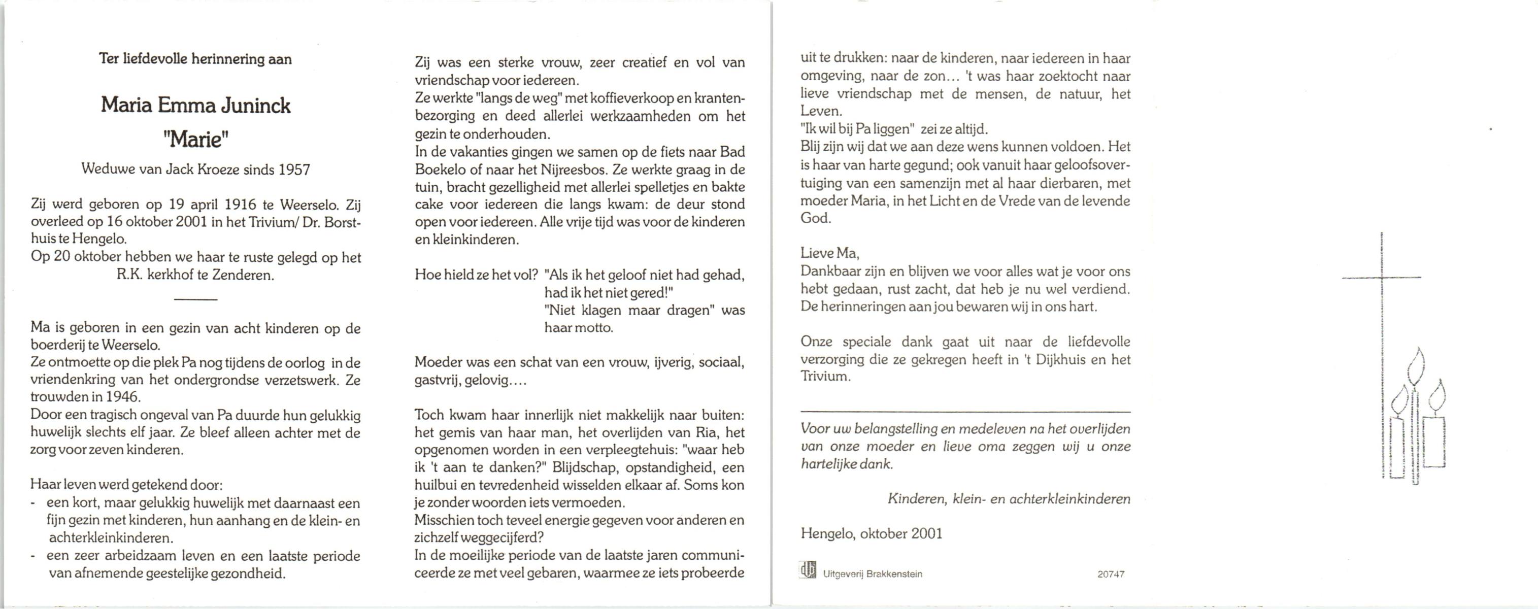 KATIER, Maria Berendina, geboren op 17-12-1911, overleden op 8-1-2001 te Hengelo (Ov.) op 89-jarige leeftijd, begraven op 12-1-2001 te Hengevelde.