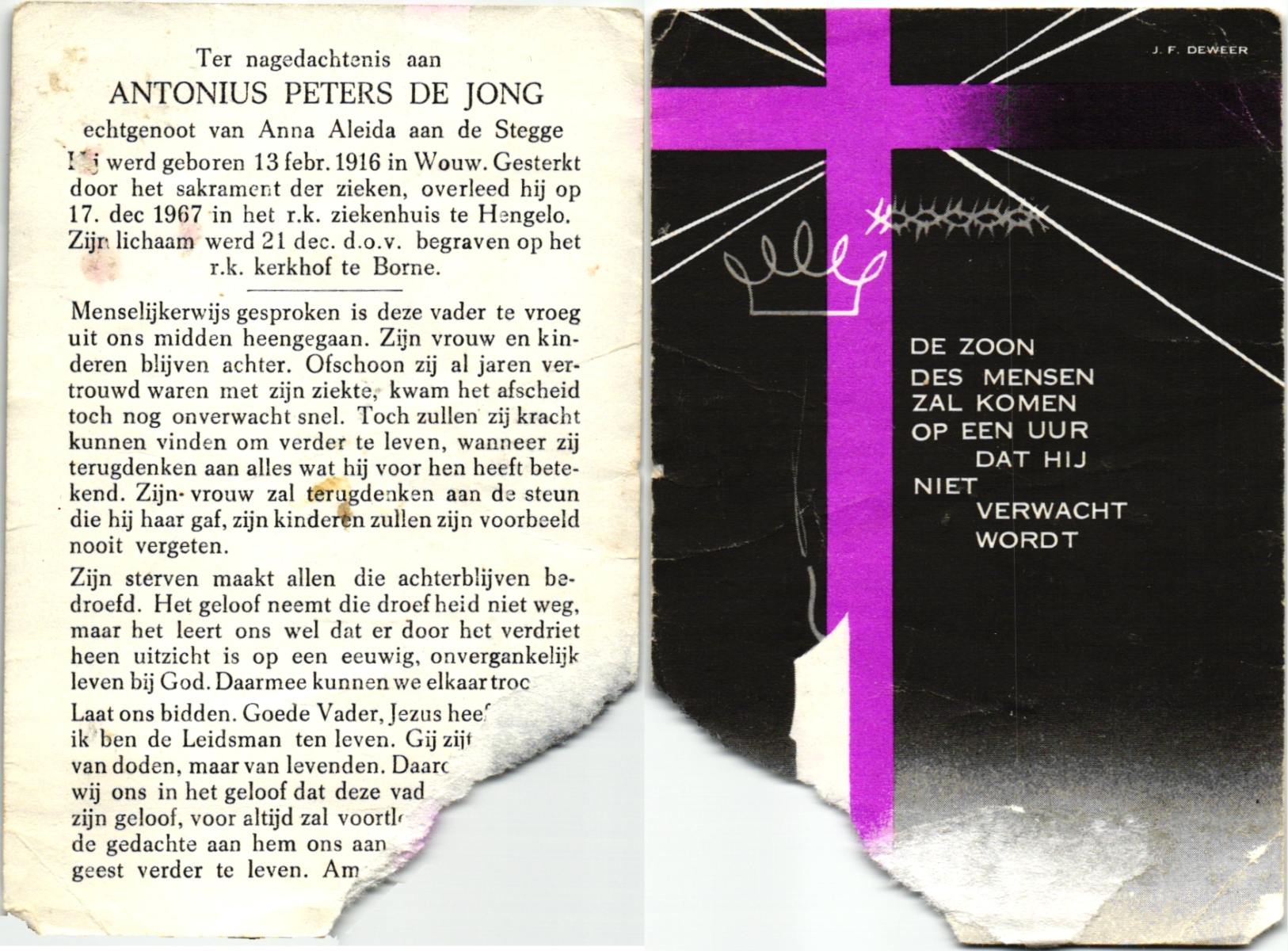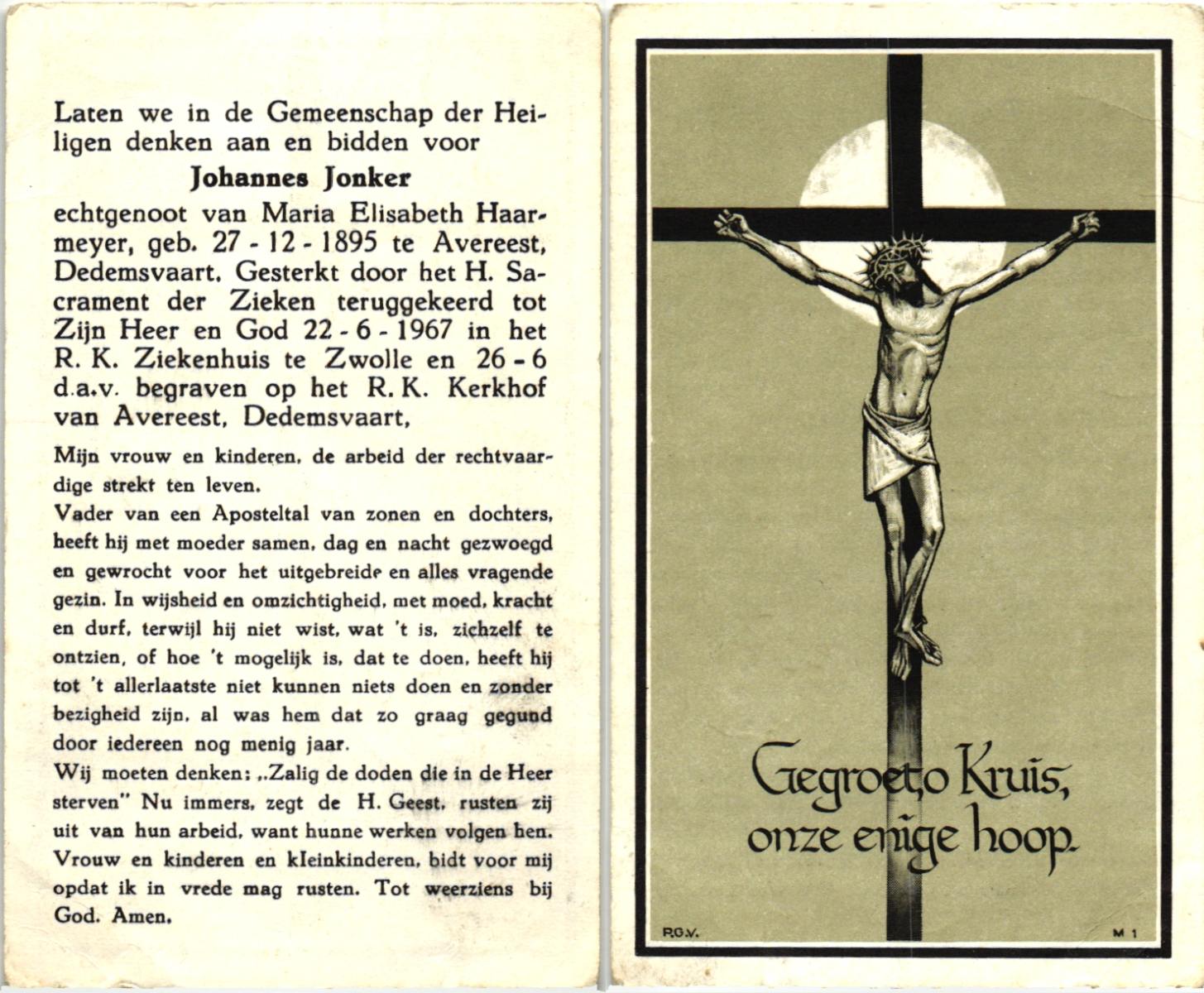 JANSEN, Johannes, geboren op 17-7-1902 te Enter, overleden op 26-6-1967 te Apeldoorn op 64-jarige leeftijd, begraven op 29-6-1967 te Apeldoorn.