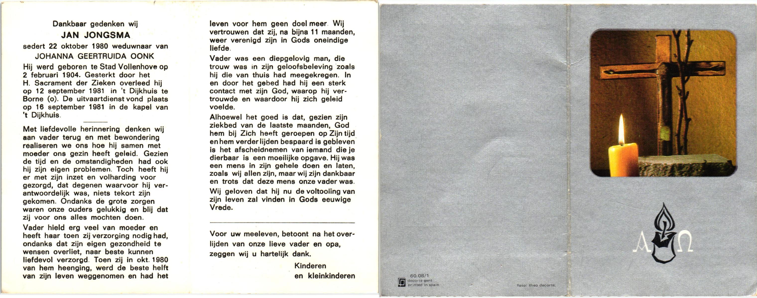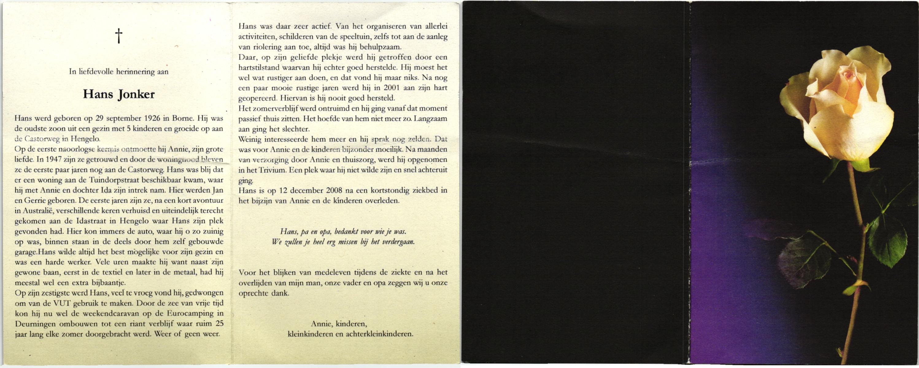 JANSEN, Johannes Hendrikus, geboren op 16-3-1922 te Enter, overleden op 14-7-1988 te Delden op 66-jarige leeftijd, begraven op 19-7-1988 te Delden.