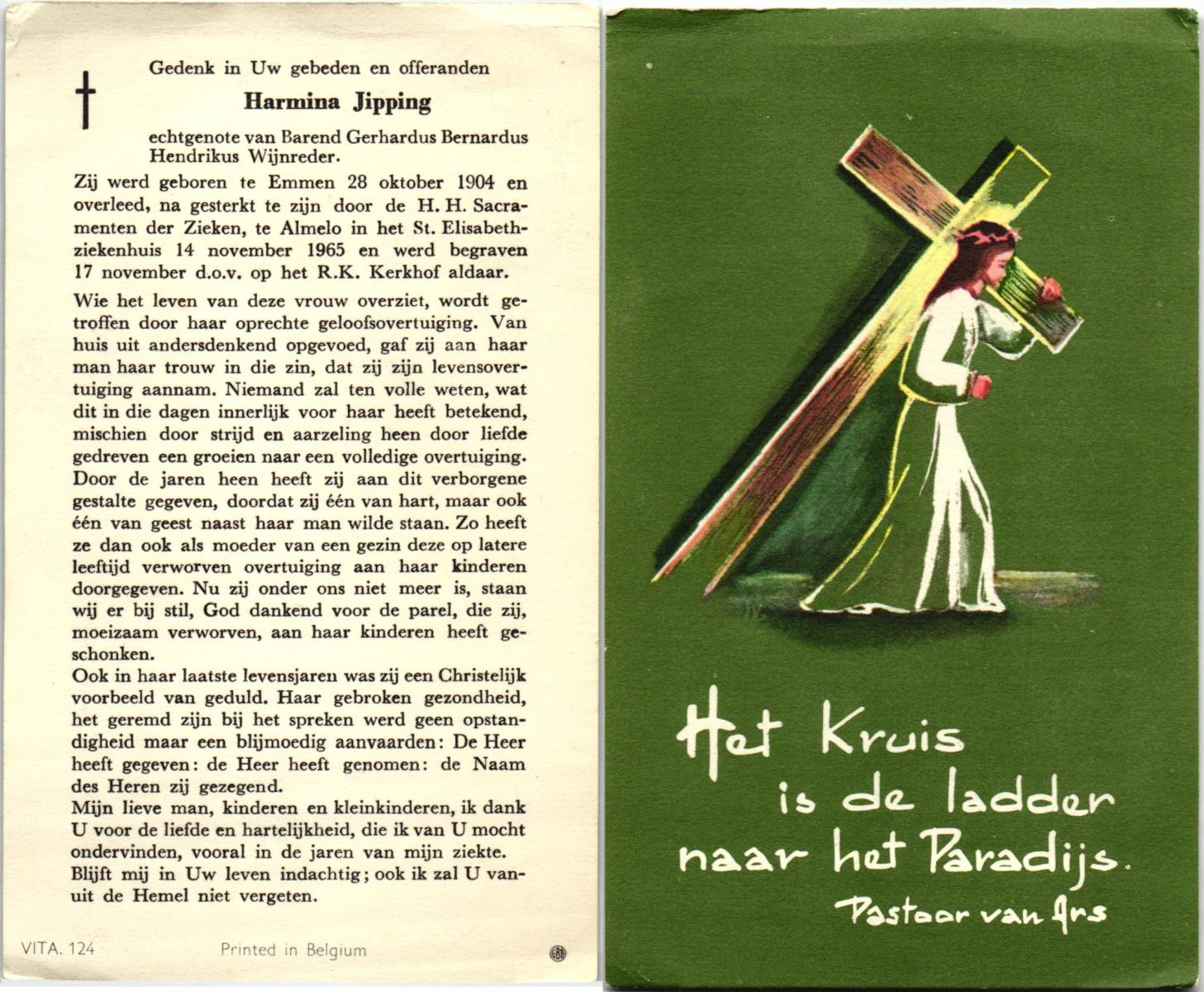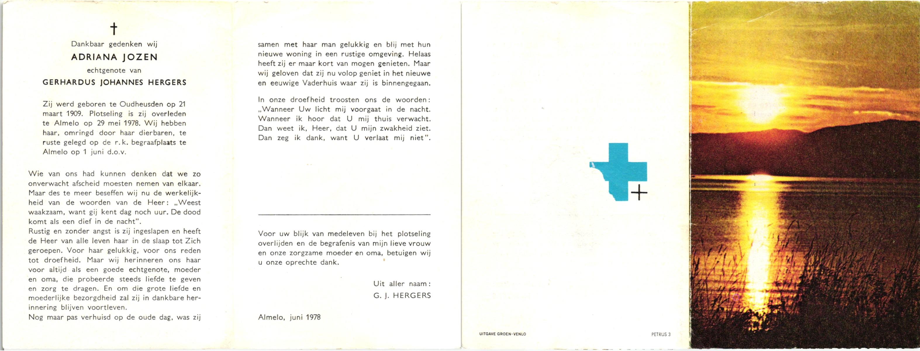 JANSEN, Maria Hermina, geboren op 01-05-1892 te Almelo, overleden op 21-9-1966 te Winterswijk op 74-jarige leeftijd, begraven op 26-9-1966 te Winterswijk.