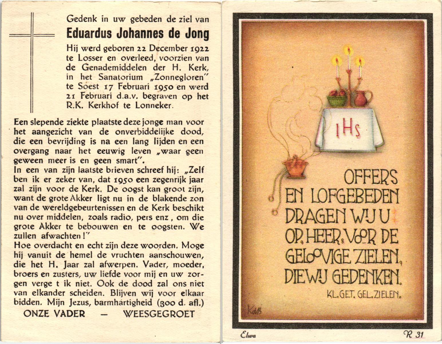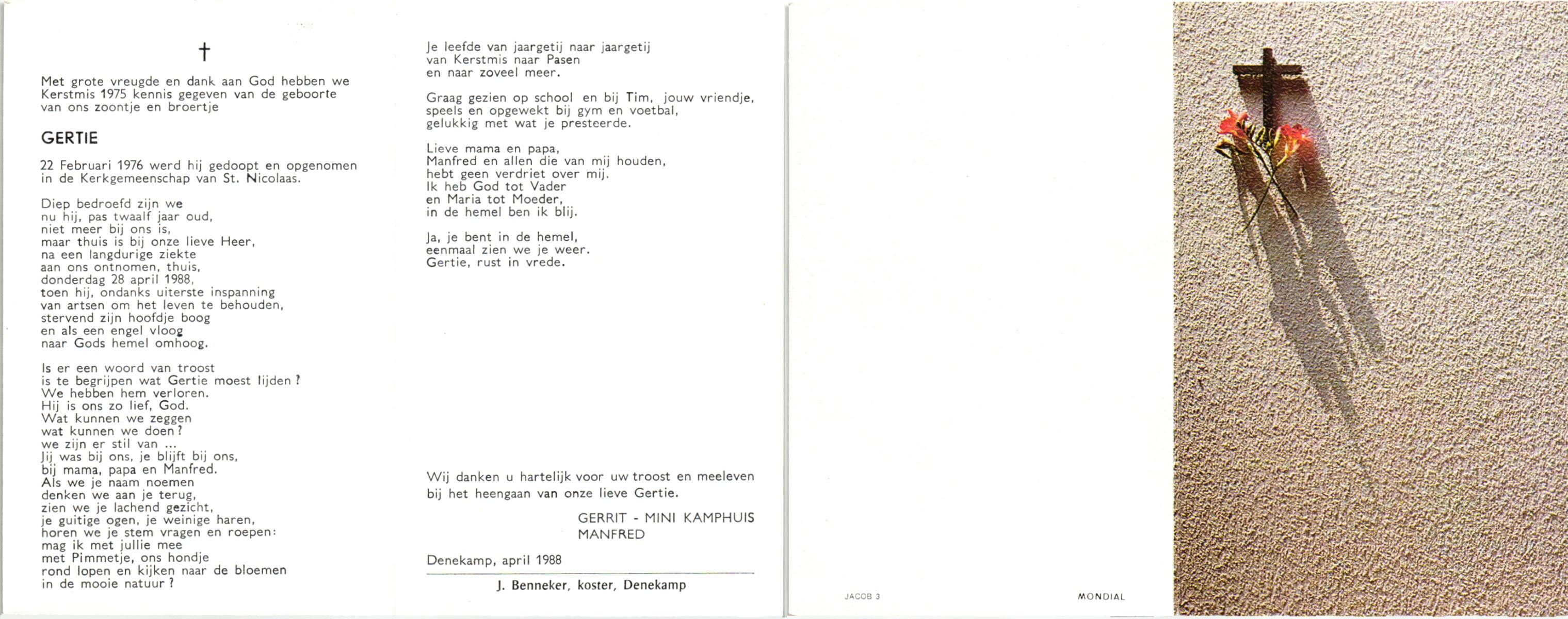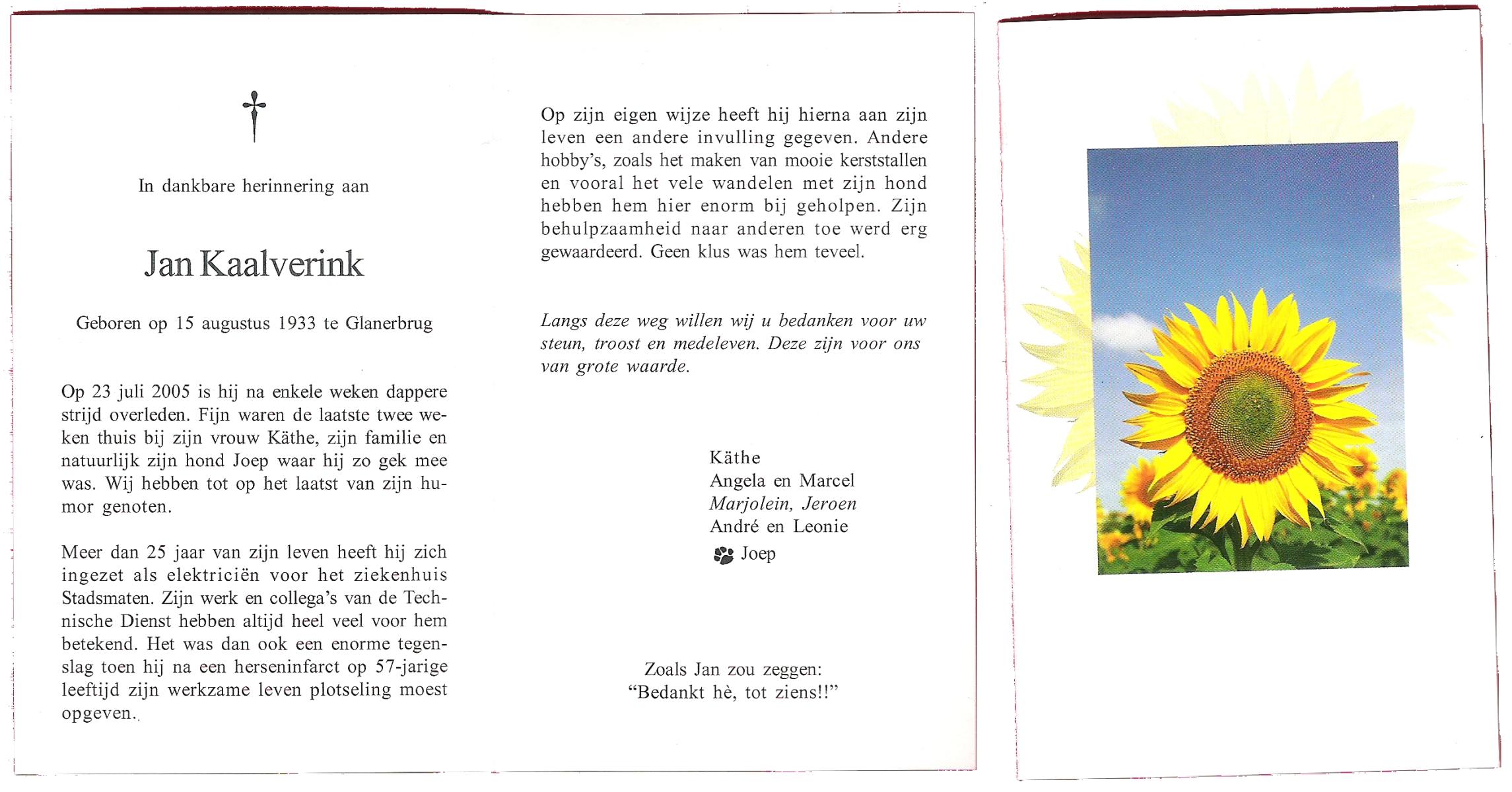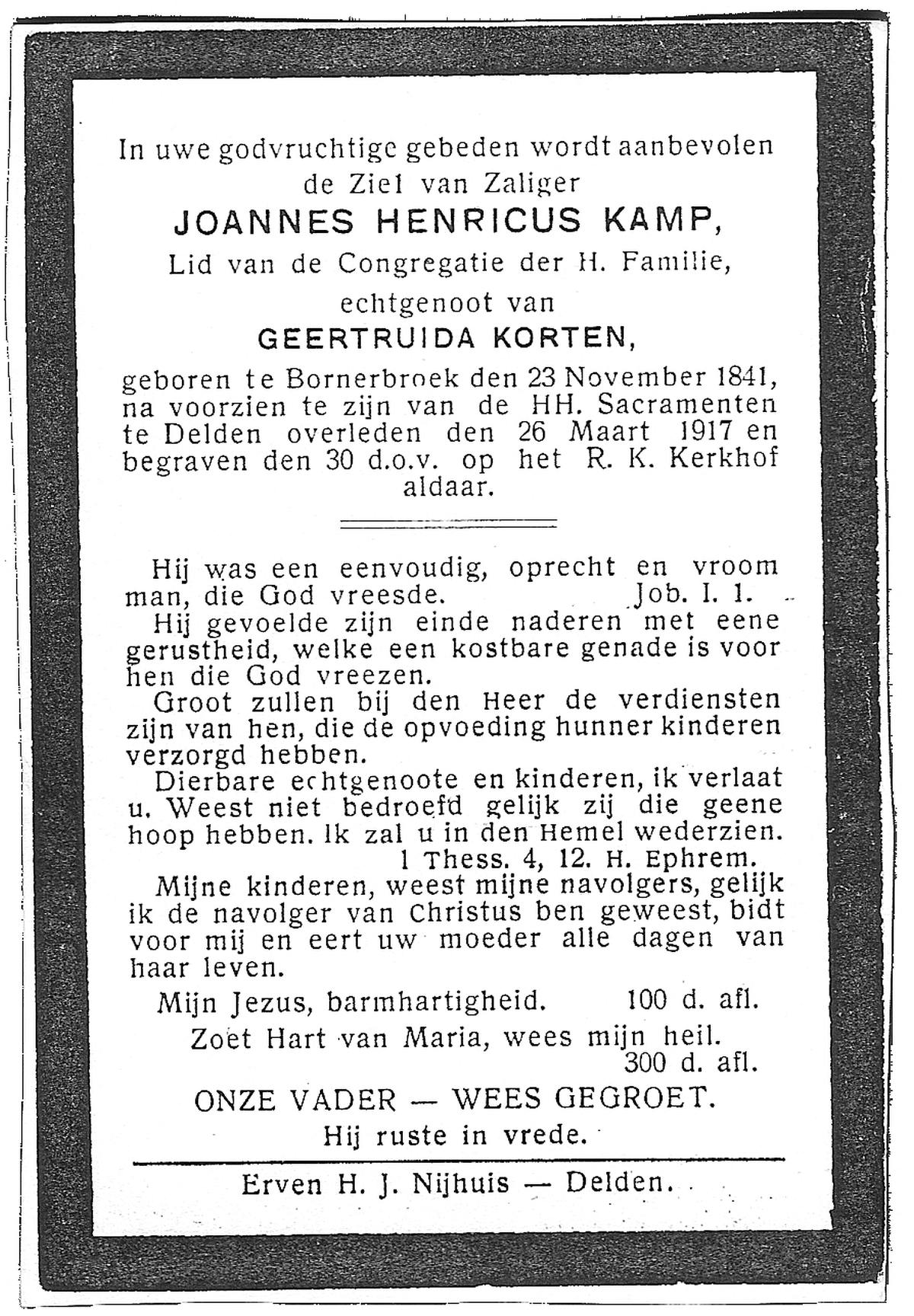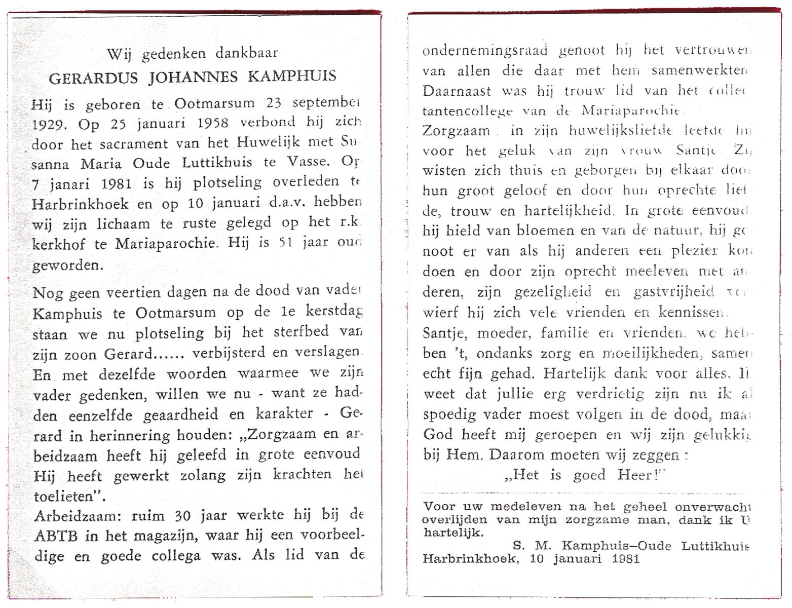 KAMPHUIS op HEGHUIS, Johannes Gerhardus, geboren op 1-6-1921 te Denekamp, overleden op 9-1-2005 te Losser op 83-jarige leeftijd, begraven op 14-1-2005 te Denekamp.