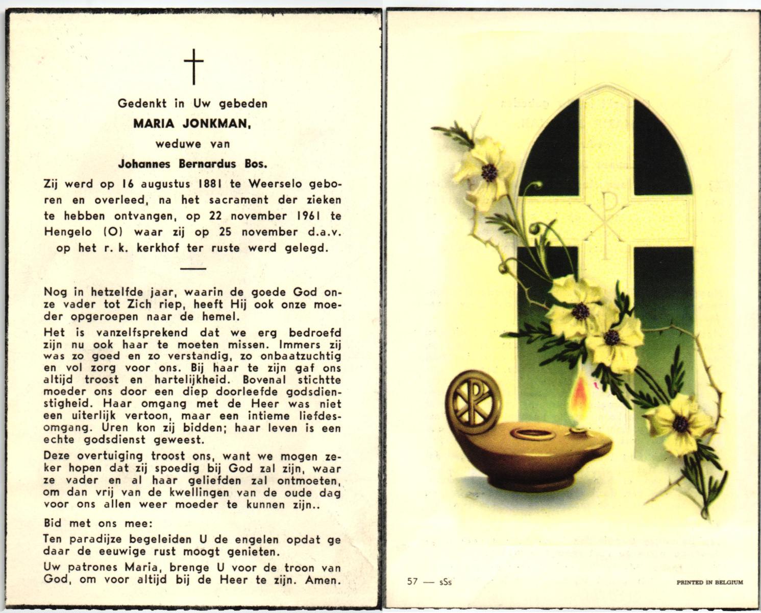JANSEN, Maria Josephina Christina, geboren op 08-01-1889 te 's Gravenhage, overleden op 4-4-1970 te Almelo op 81-jarige leeftijd, begraven op 8-4-1970 te Weerselo.