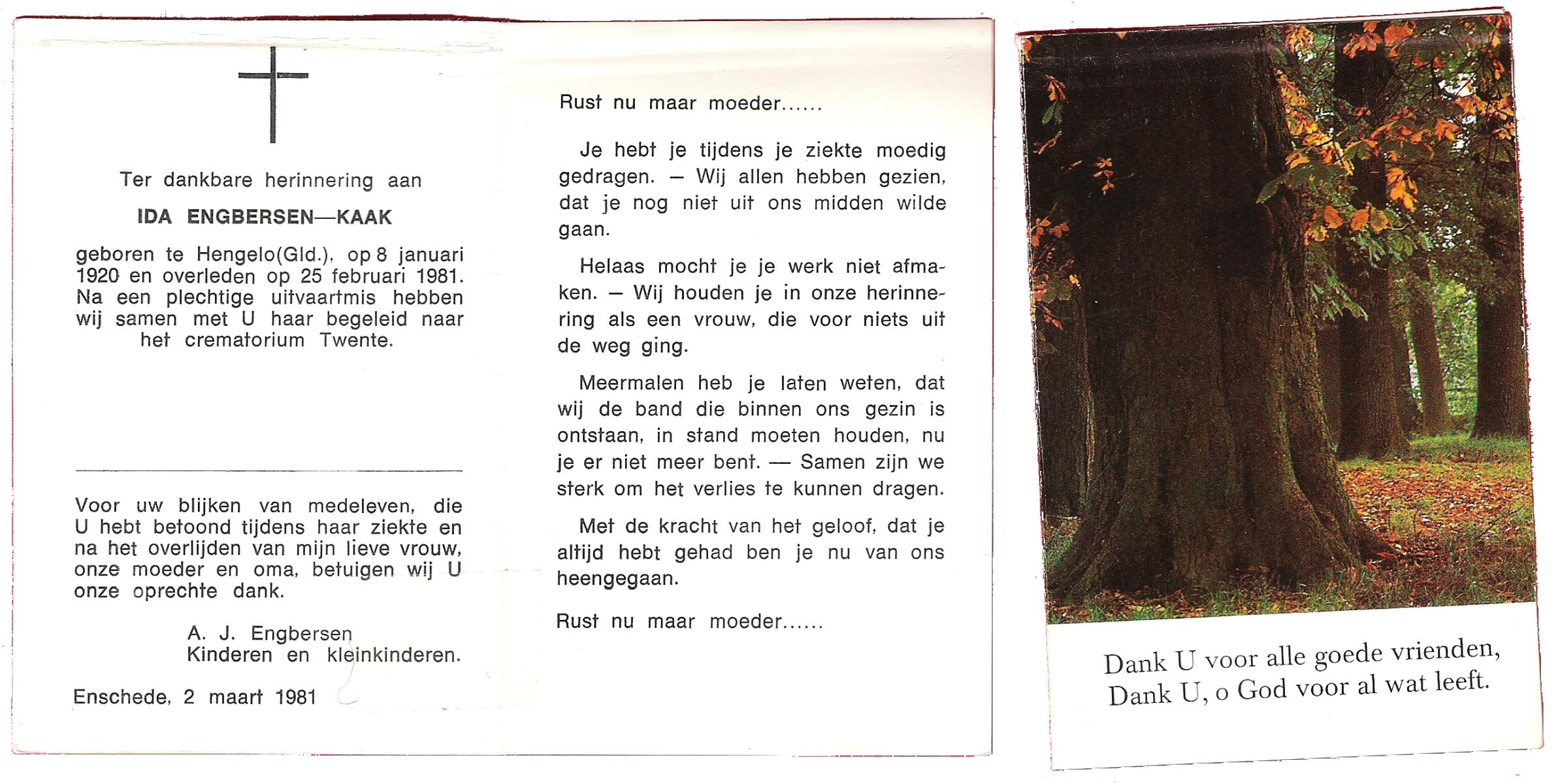 JANSEN, Ida Maria, geboren op 08-02-1896 te Heino, overleden op 10-2-1989 te Enschede op 93-jarige leeftijd, gecremeerd op 14-2-1989 te Usselo.
