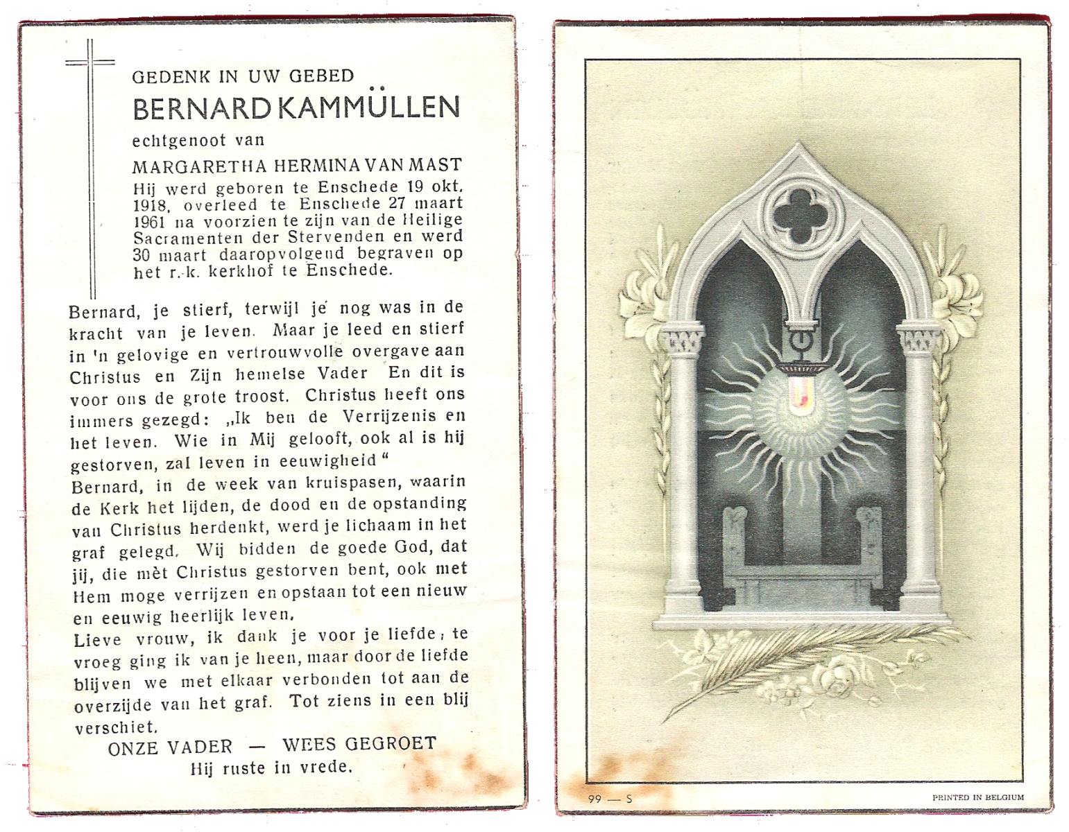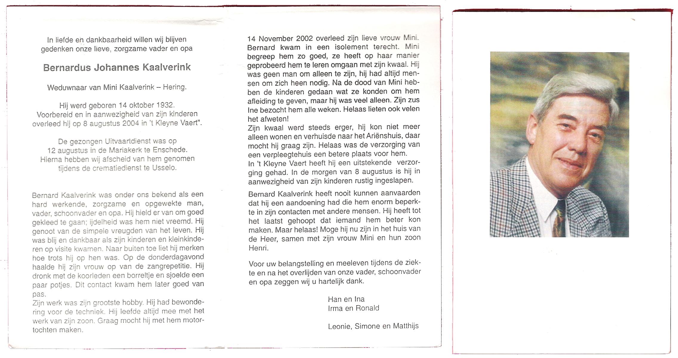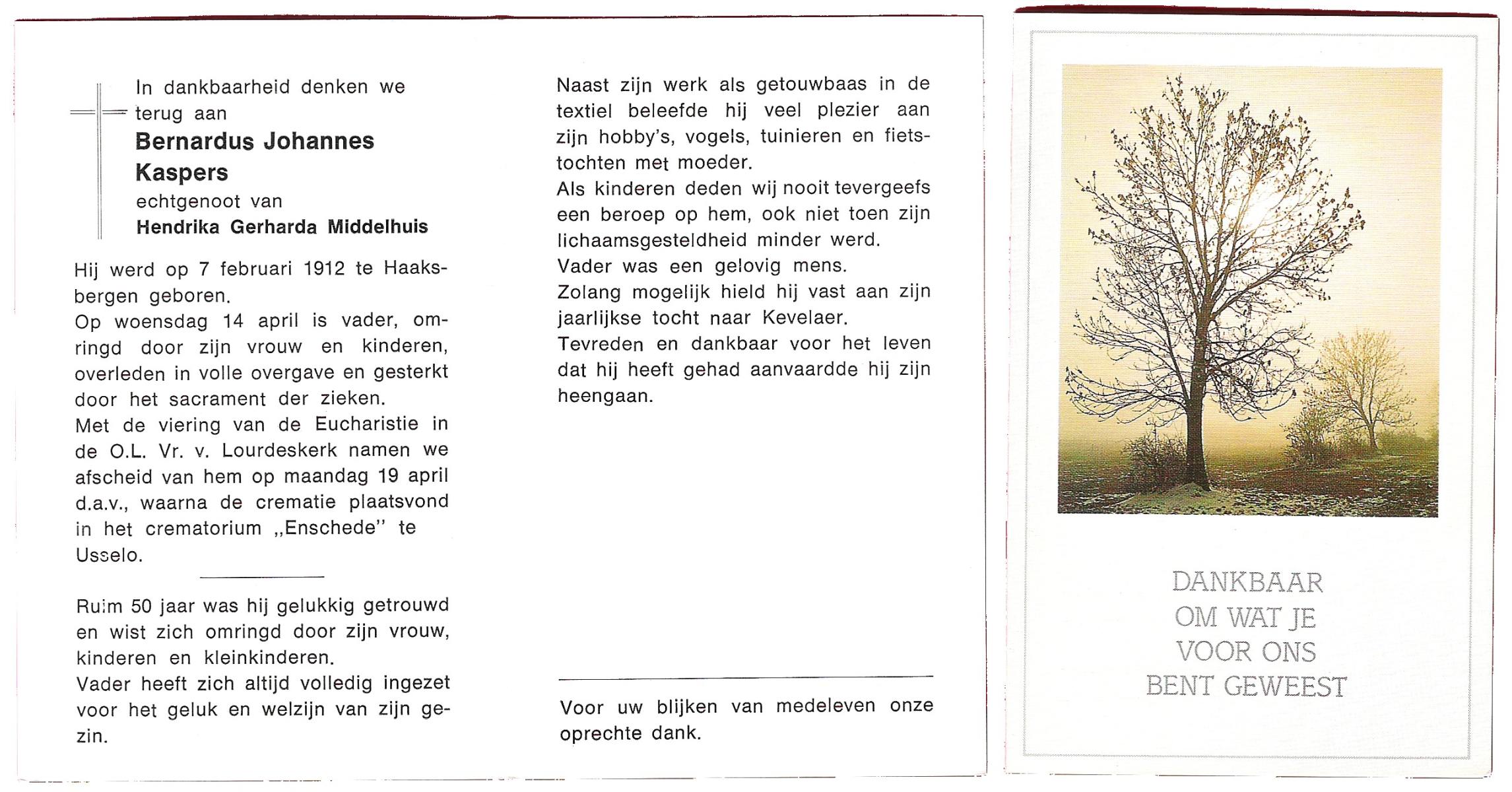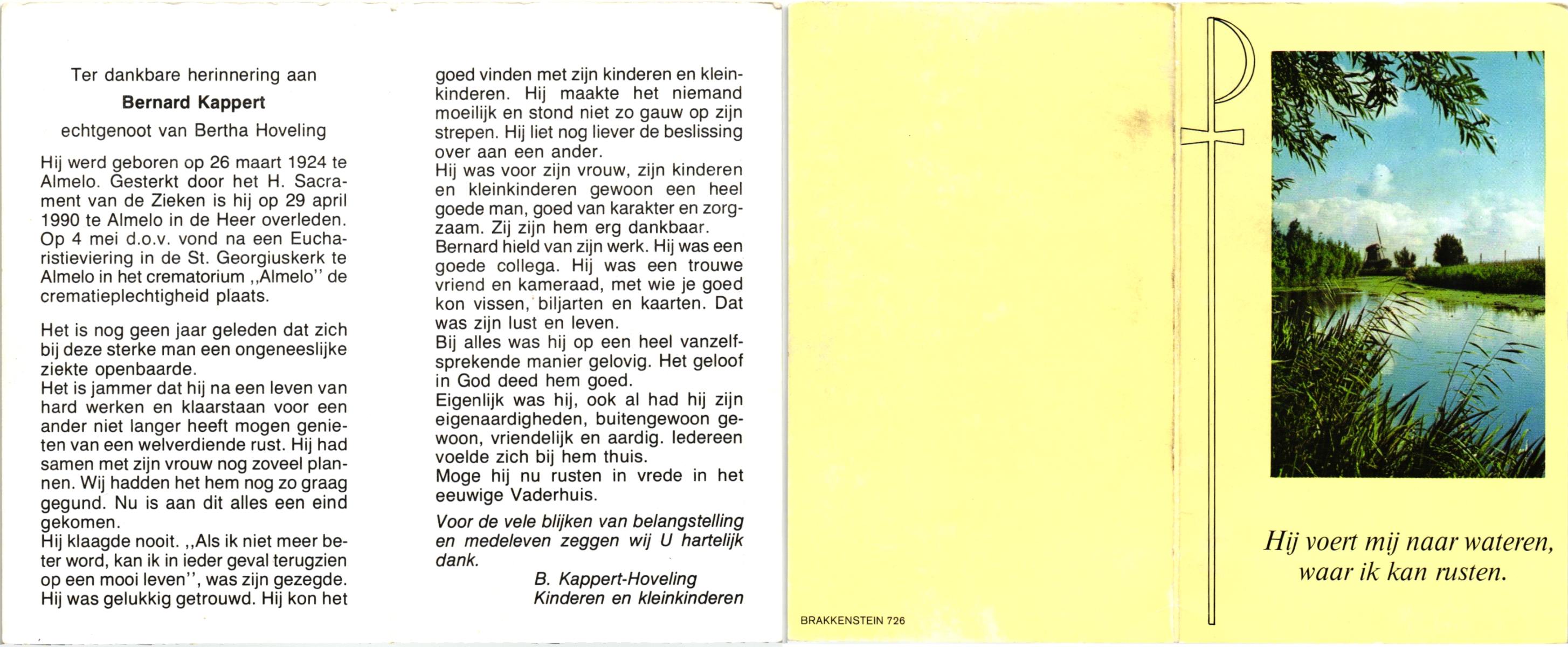 KAPPERT, , Bernard, geboren op 26-3-1924 te Almelo, overleden op 29-4-1990 te Almelo op 66-jarige leeftijd, gecremeerd op 4-5-1990 te Almelo.