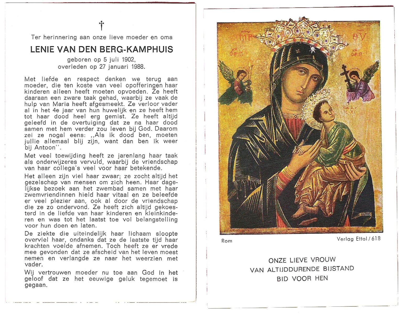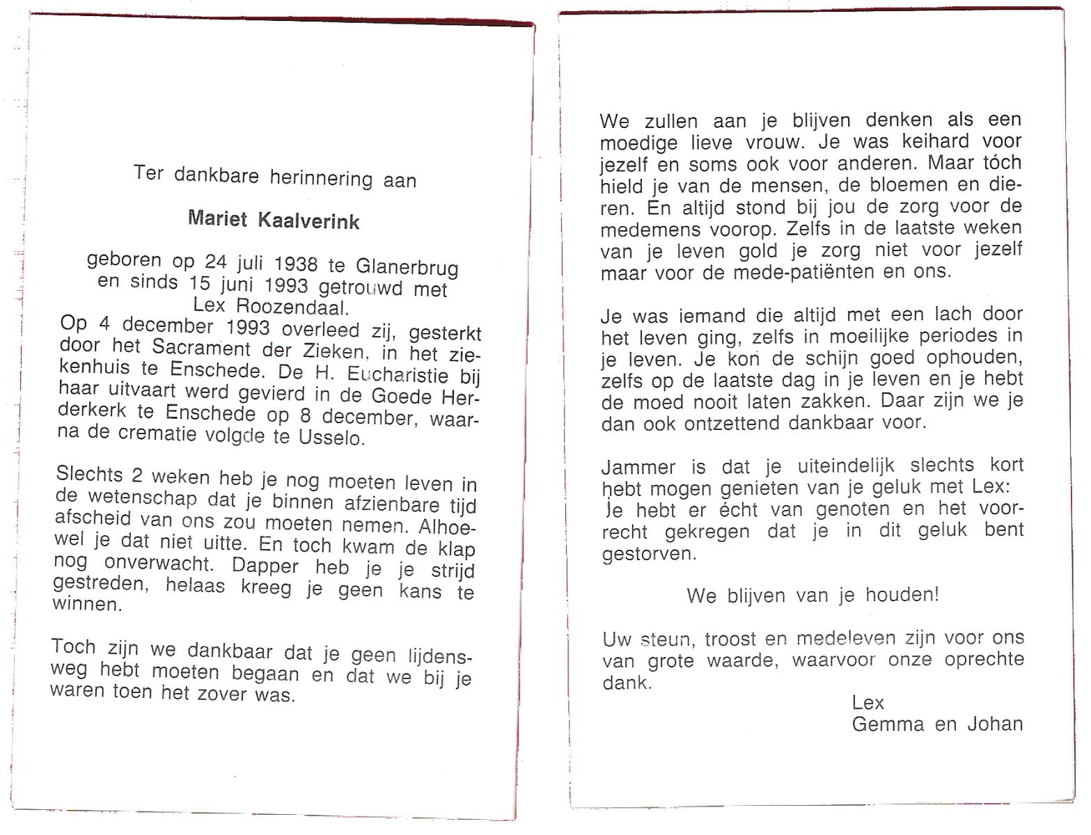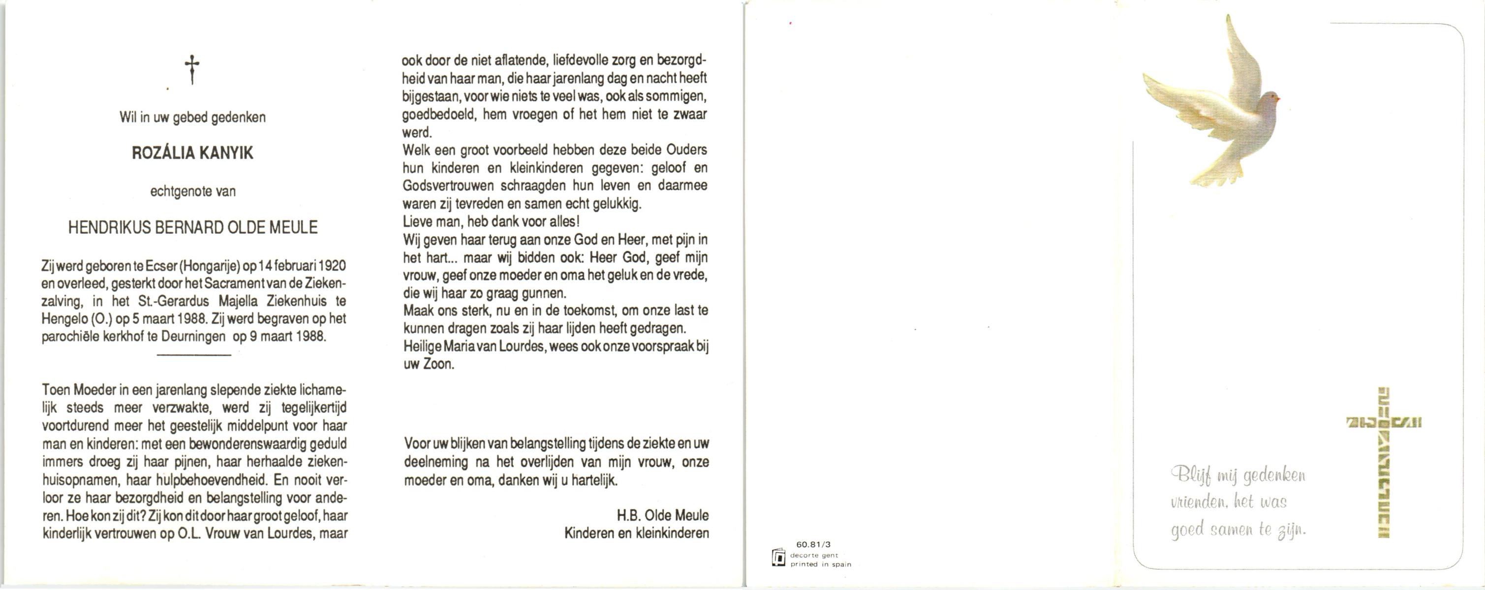 KANYIK, Rozalia, geboren op 14-2-1920 te Ecser, Hong., overleden op 5-3-1988 te Hengelo, ziekenhuis op 68-jarige leeftijd, begraven op 9-3-1988 te Deurningen.