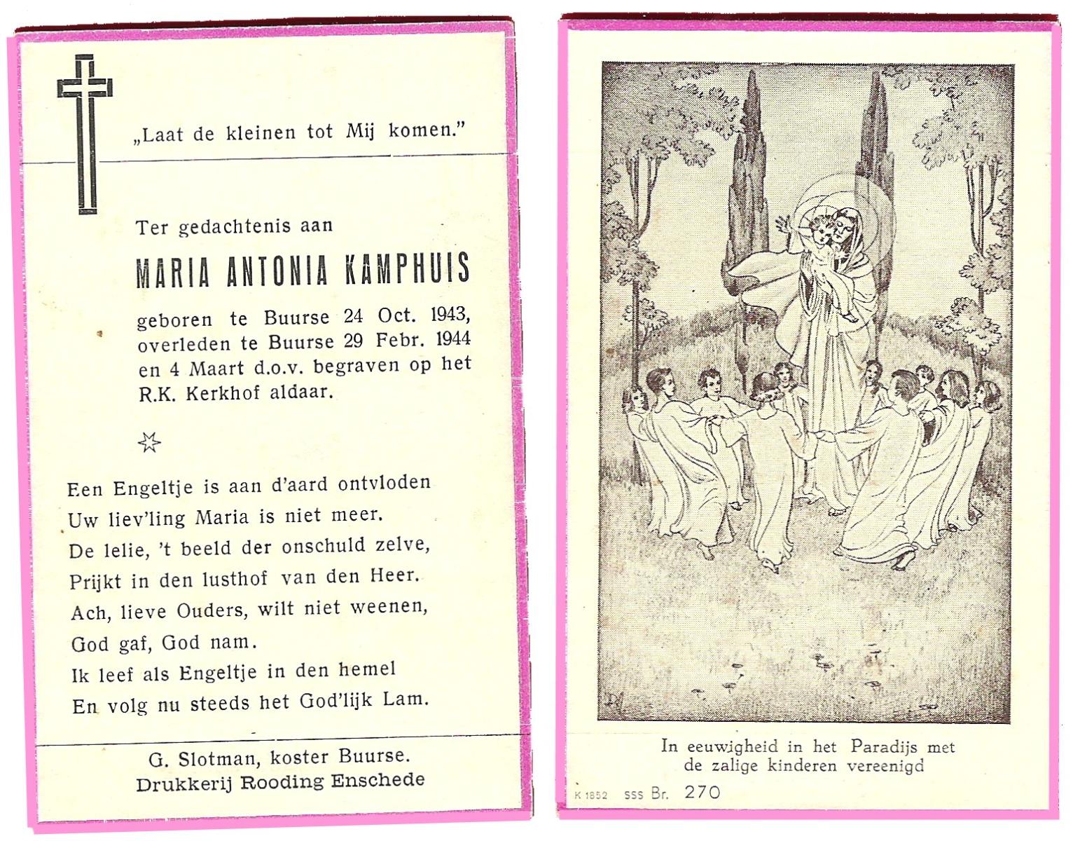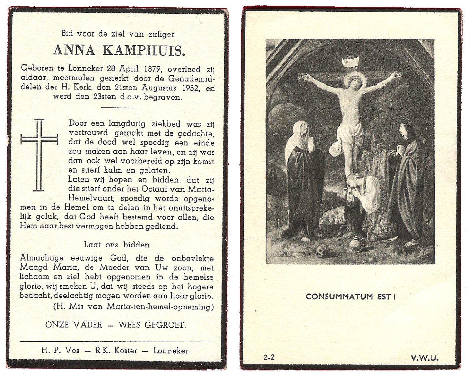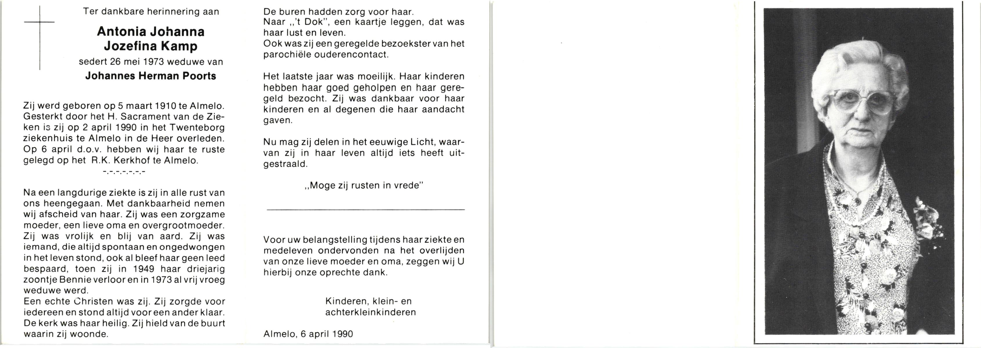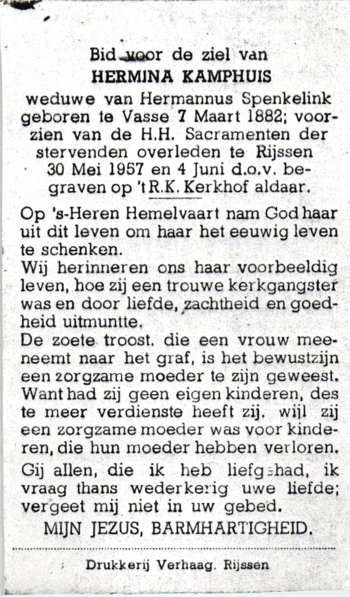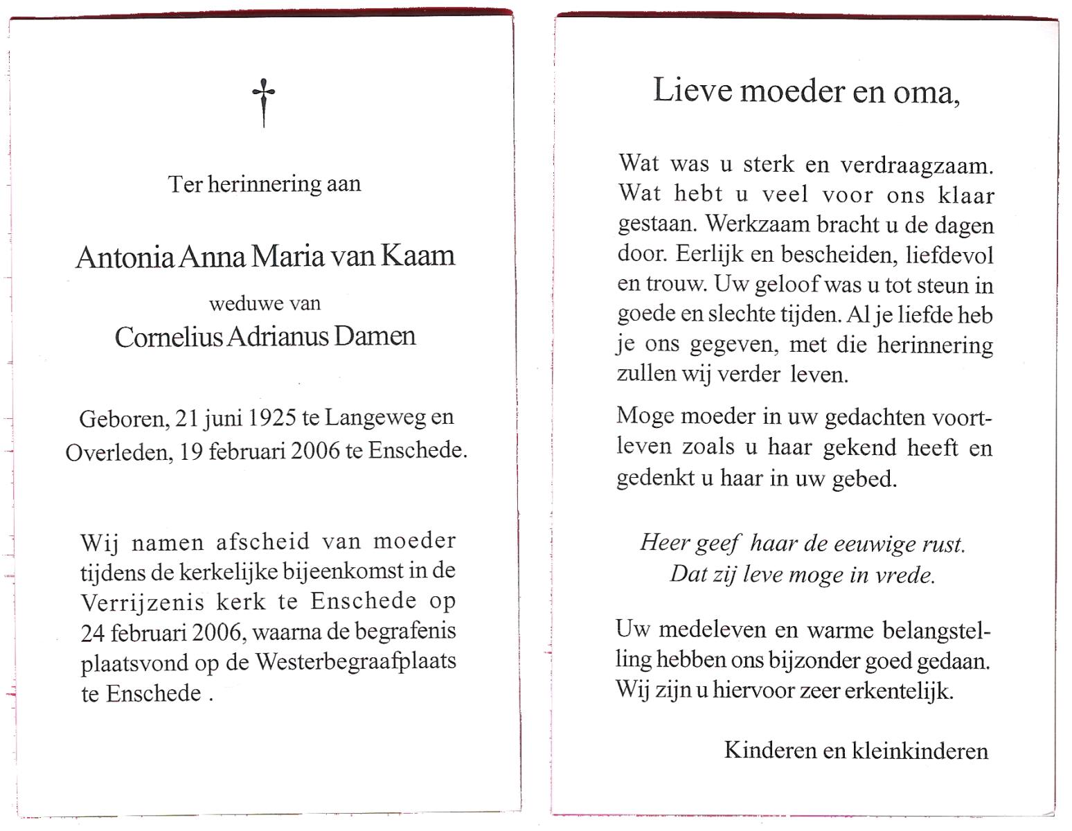KAMPHUIS, , Rica Antonia, geboren op 1-6-1921 te Vasse, overleden op 8-11-1992 te Almelo op 71-jarige leeftijd.