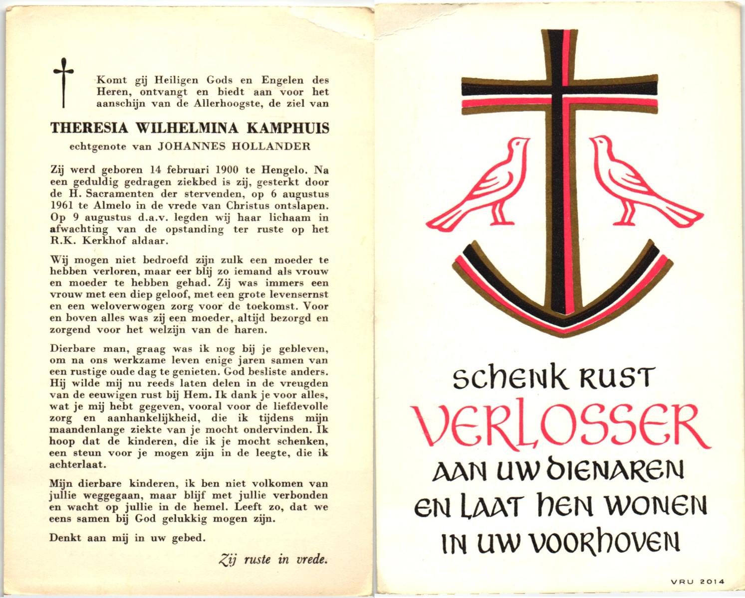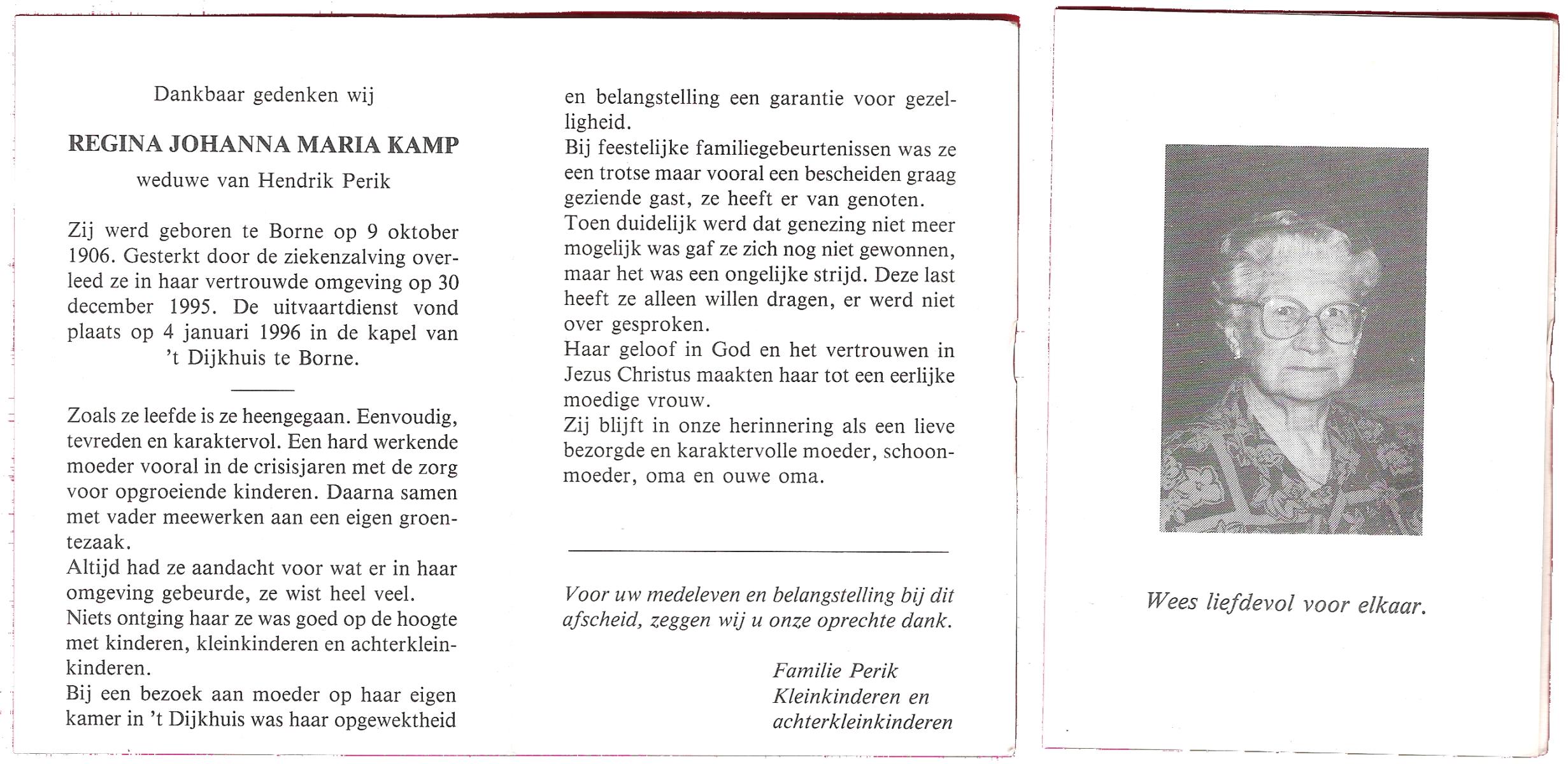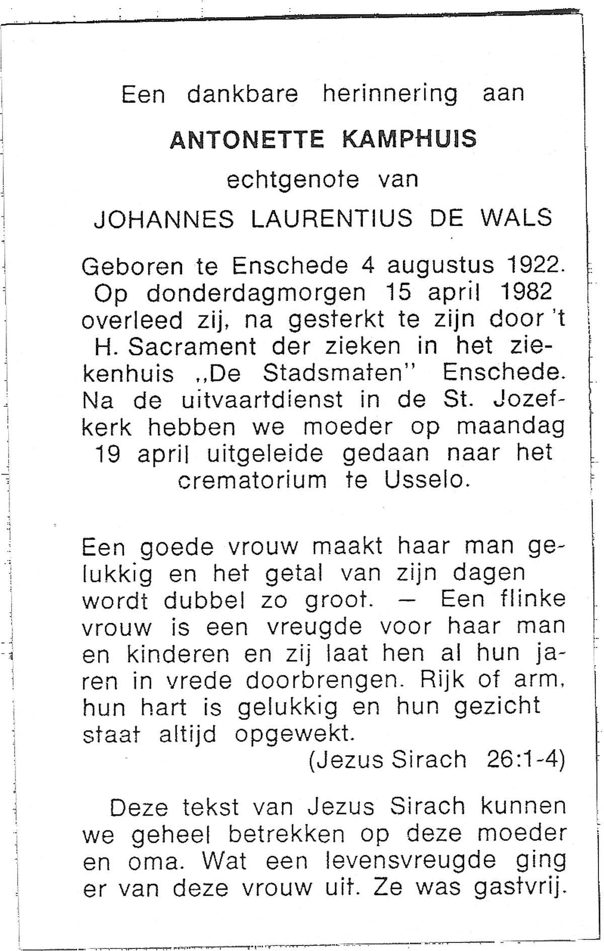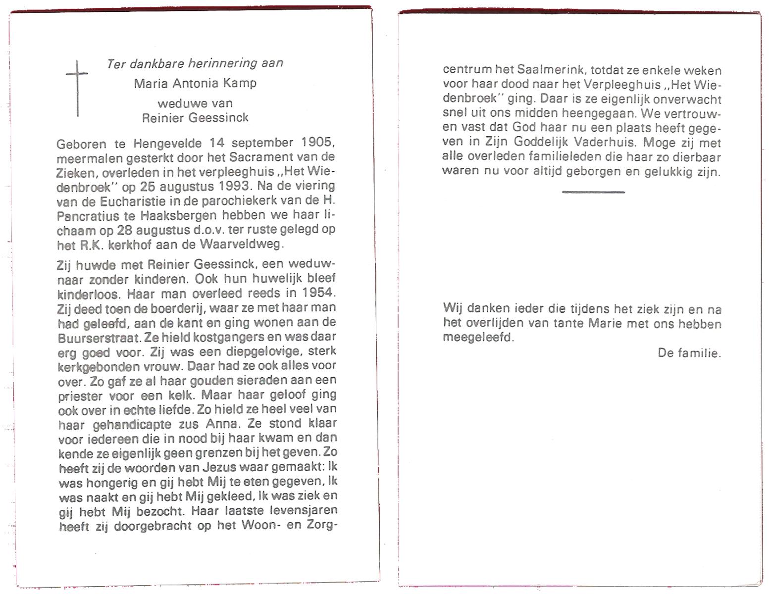 KAMPHUIS, , Rica Antonia, geboren op 1-6-1921 te Vasse, overleden op 8-11-1992 te Almelo op 71-jarige leeftijd.