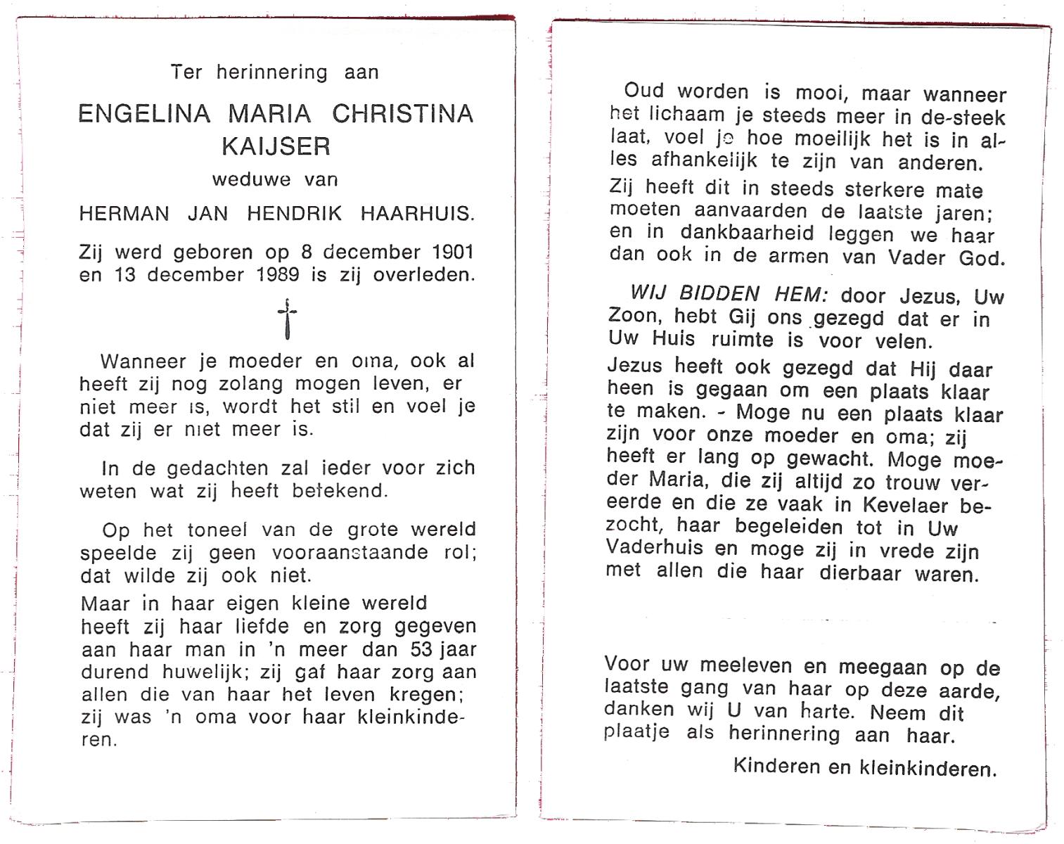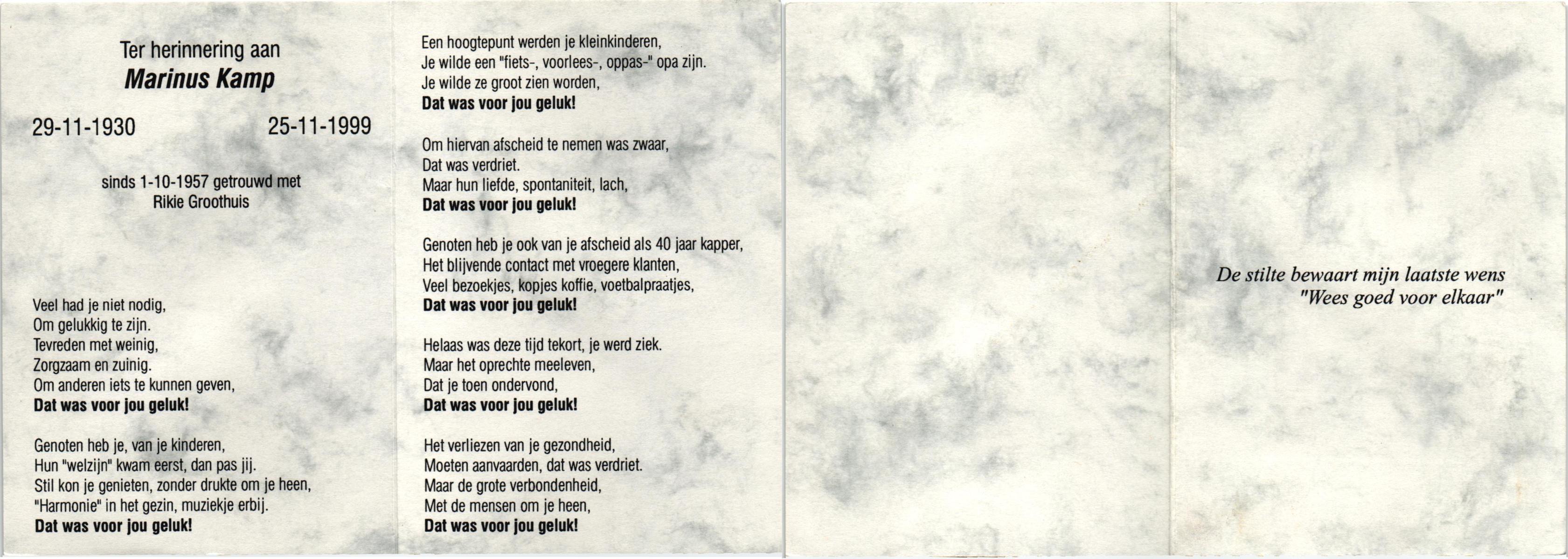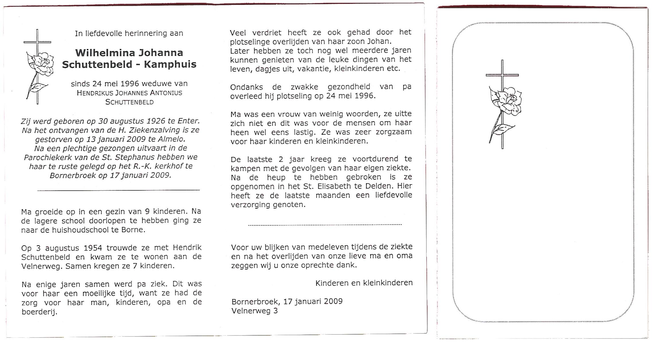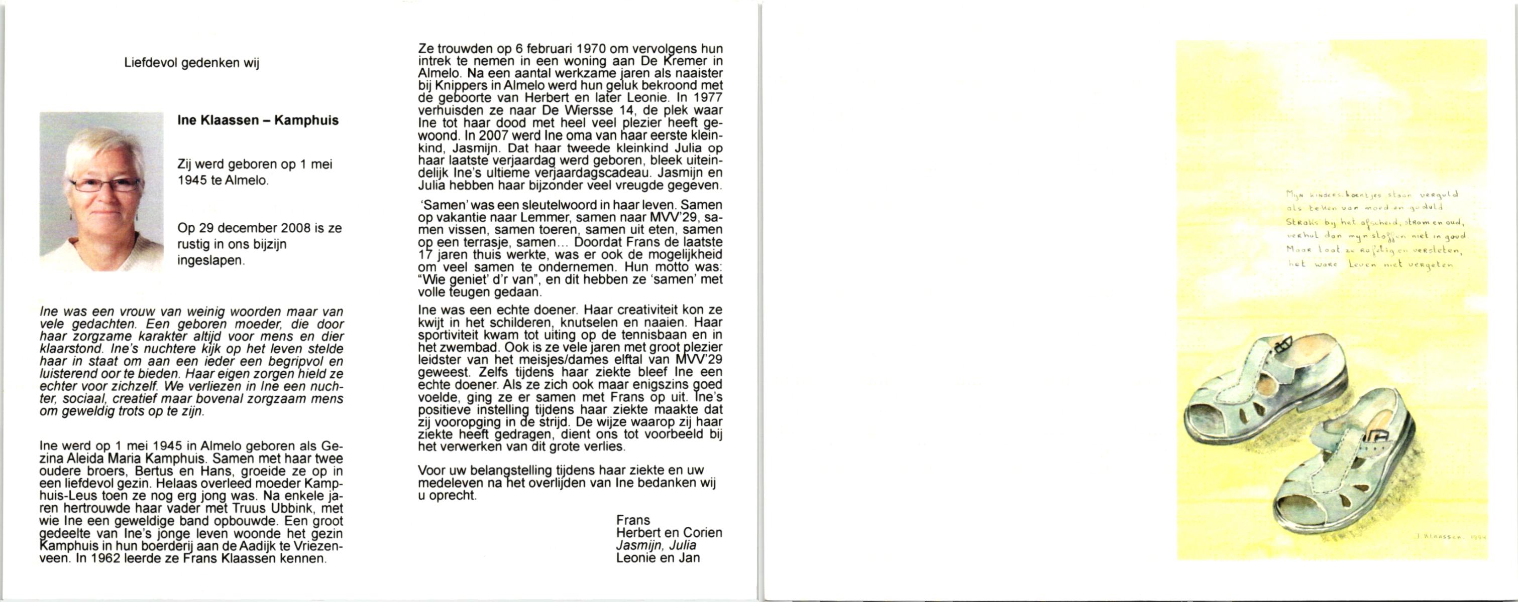 KAMPHUIS, , Wilhelmina Gesina, geboren op 28-9-1909 te Harbrinkhoek, overleden op 3-11-1999 te Harbrinkhoek op 90-jarige leeftijd, begraven te Mariaparochie.