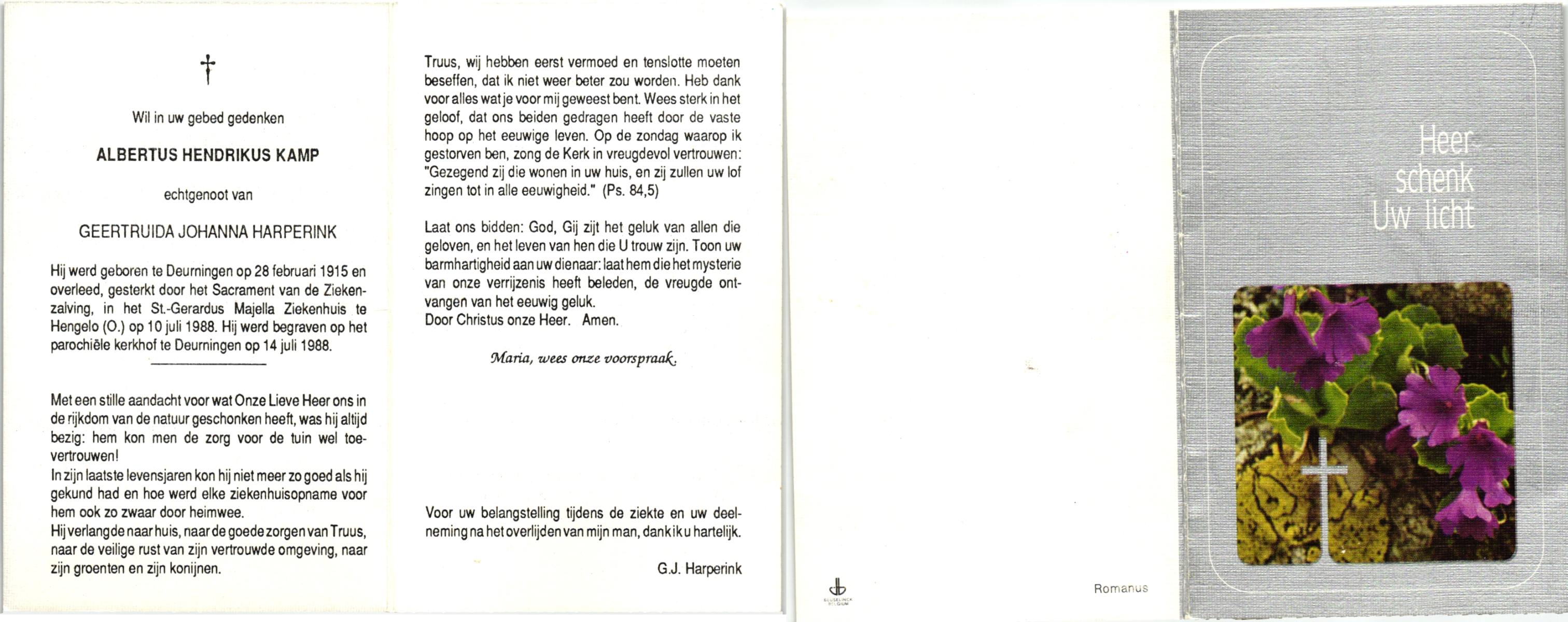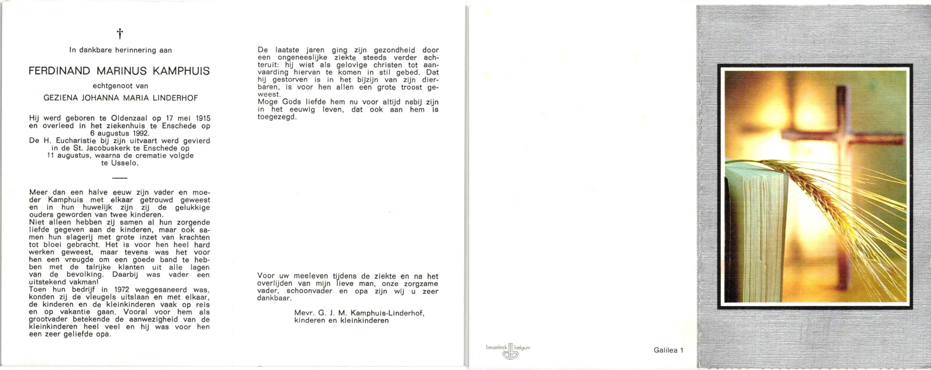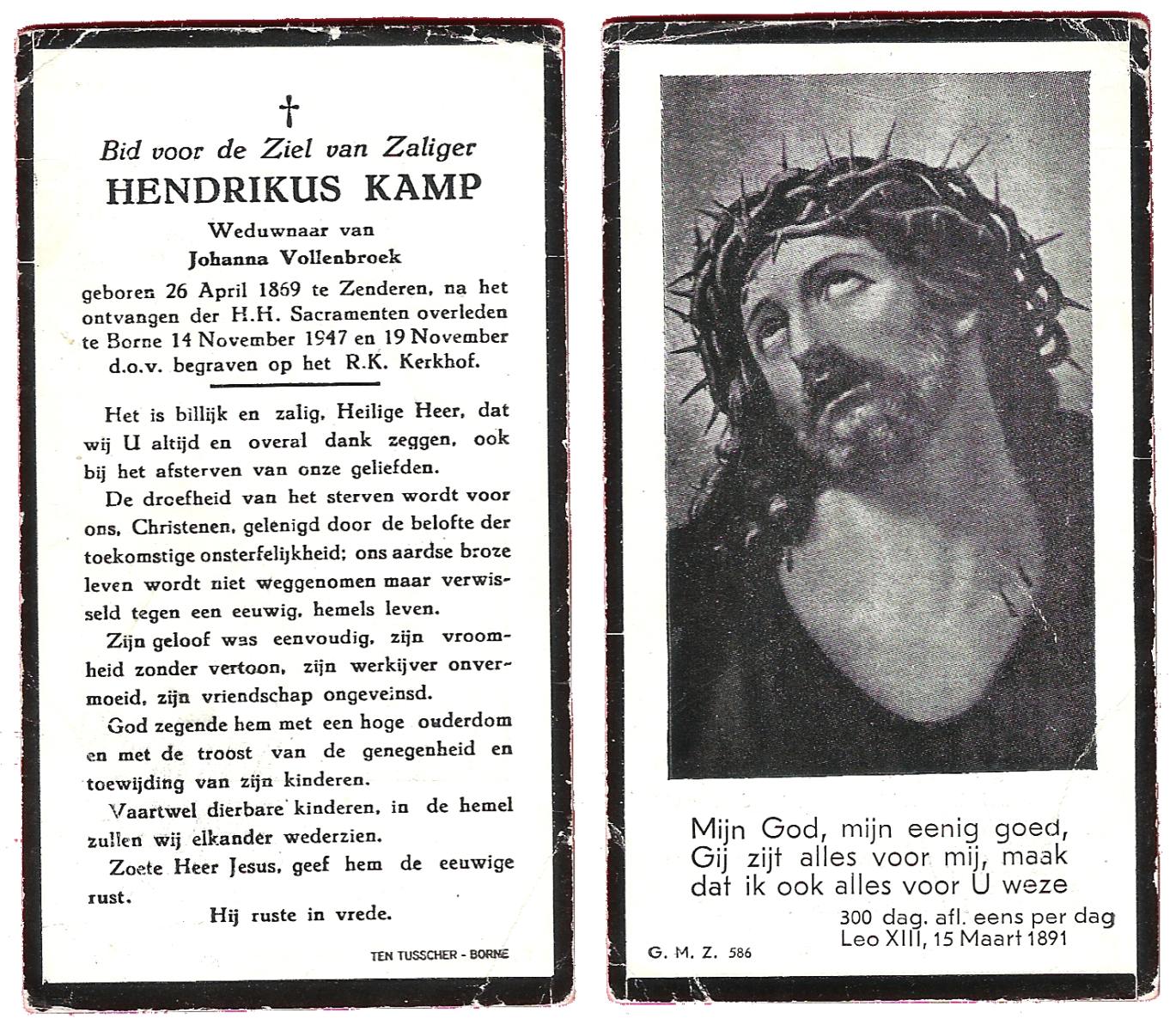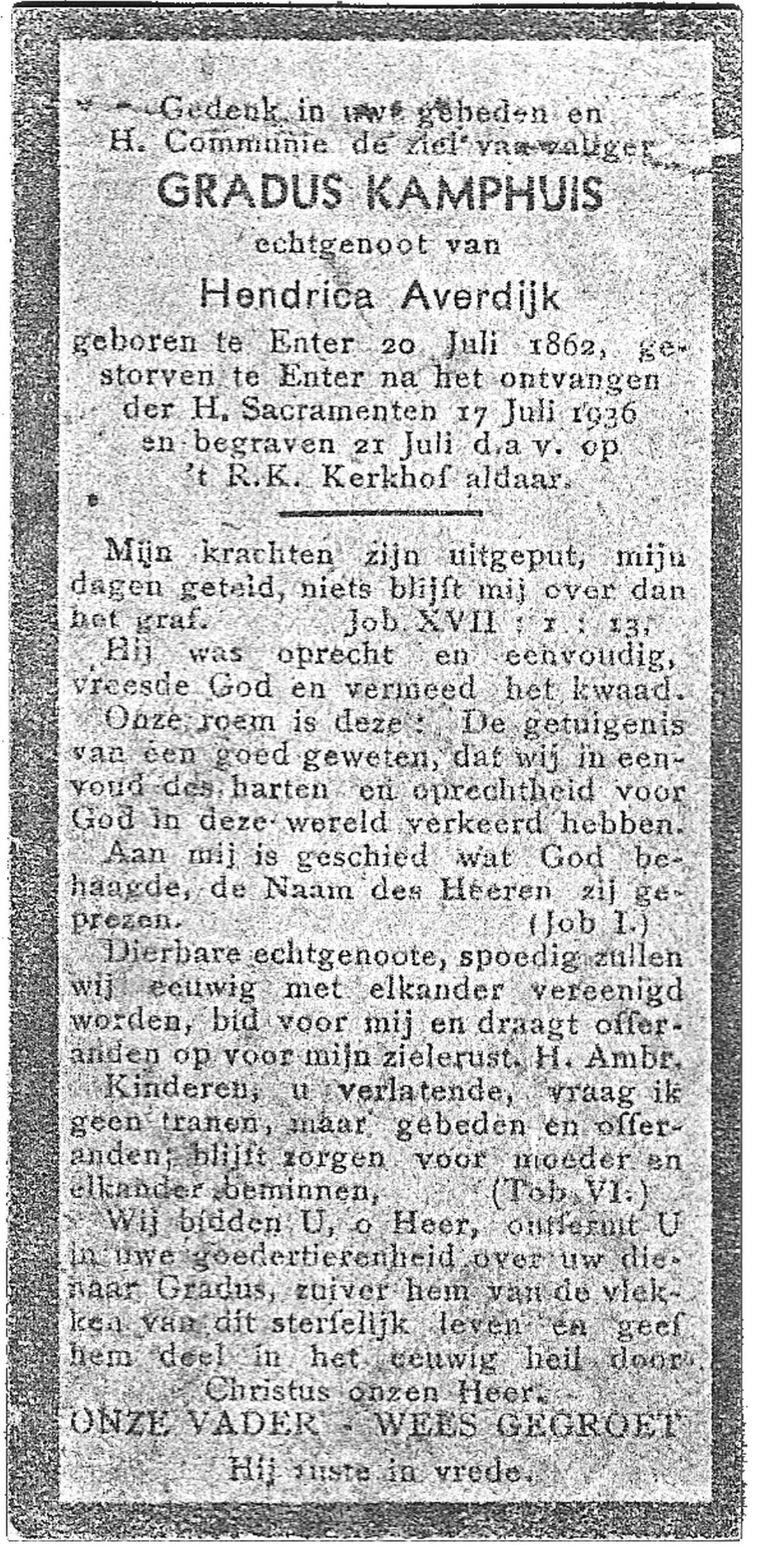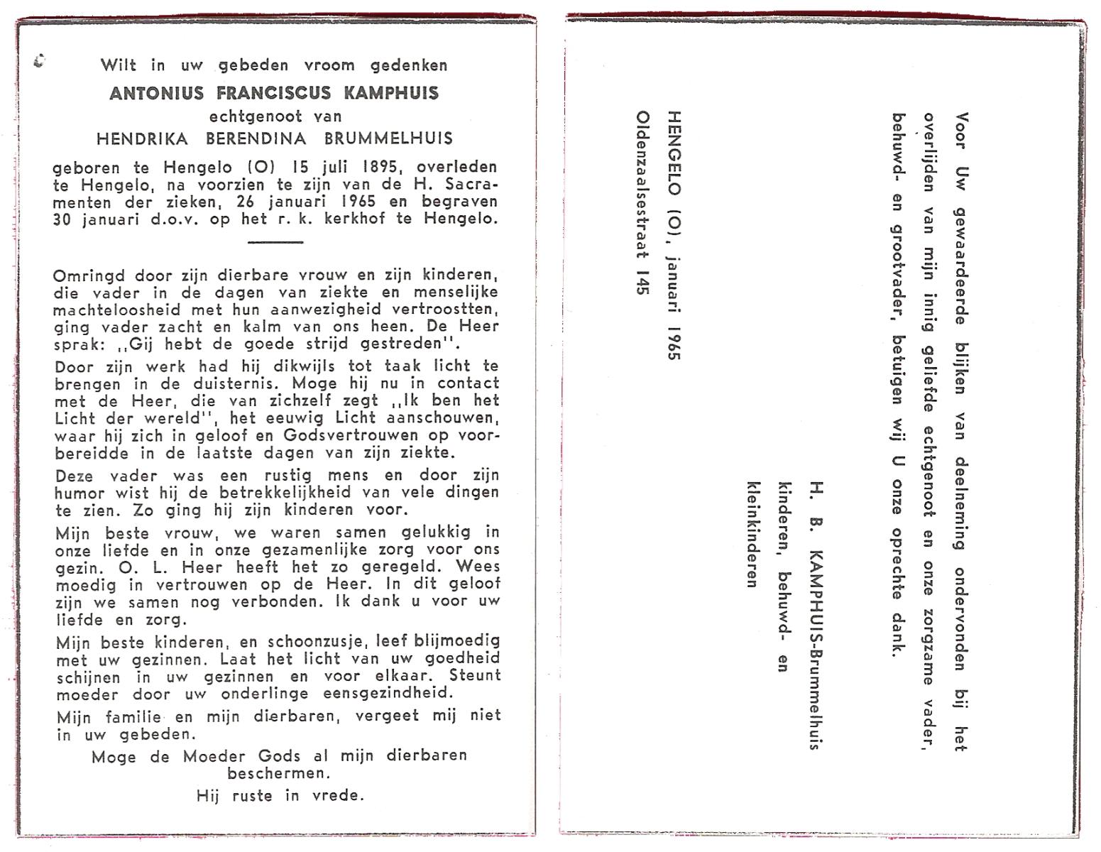 KAMPHUIS, , Johannes Hendrikus, geboren op 5-1-1914 te Harbrinkhoek, overleden op 20-4-1996 te Hengelo (O) op 82-jarige leeftijd, begraven op 24-4-1996 te Zenderen.
