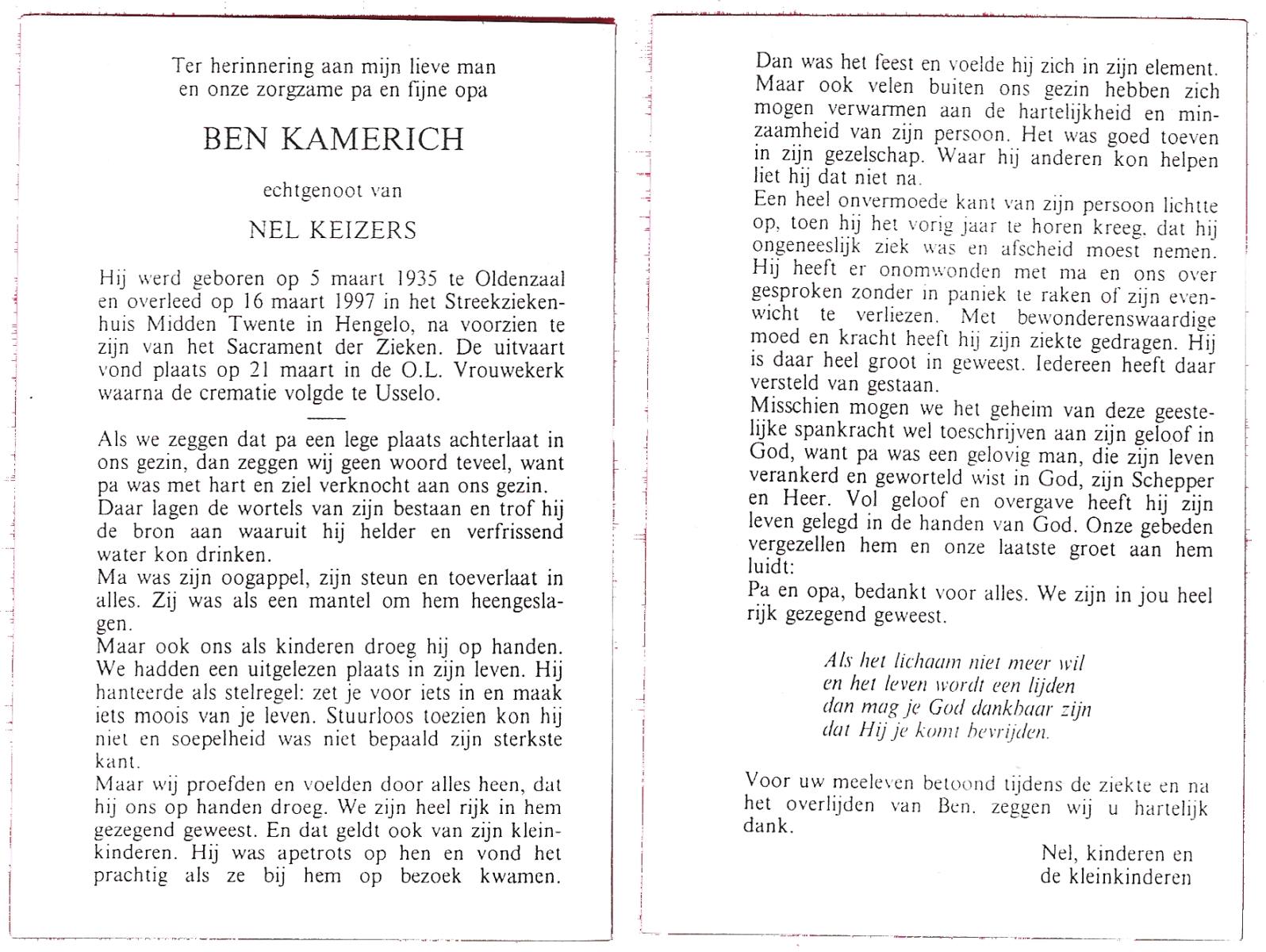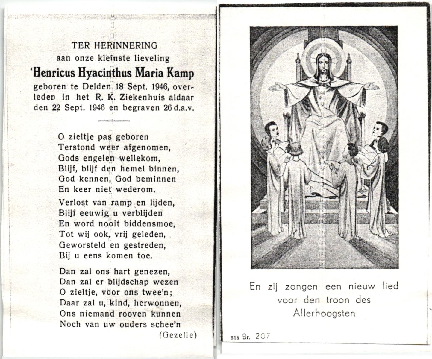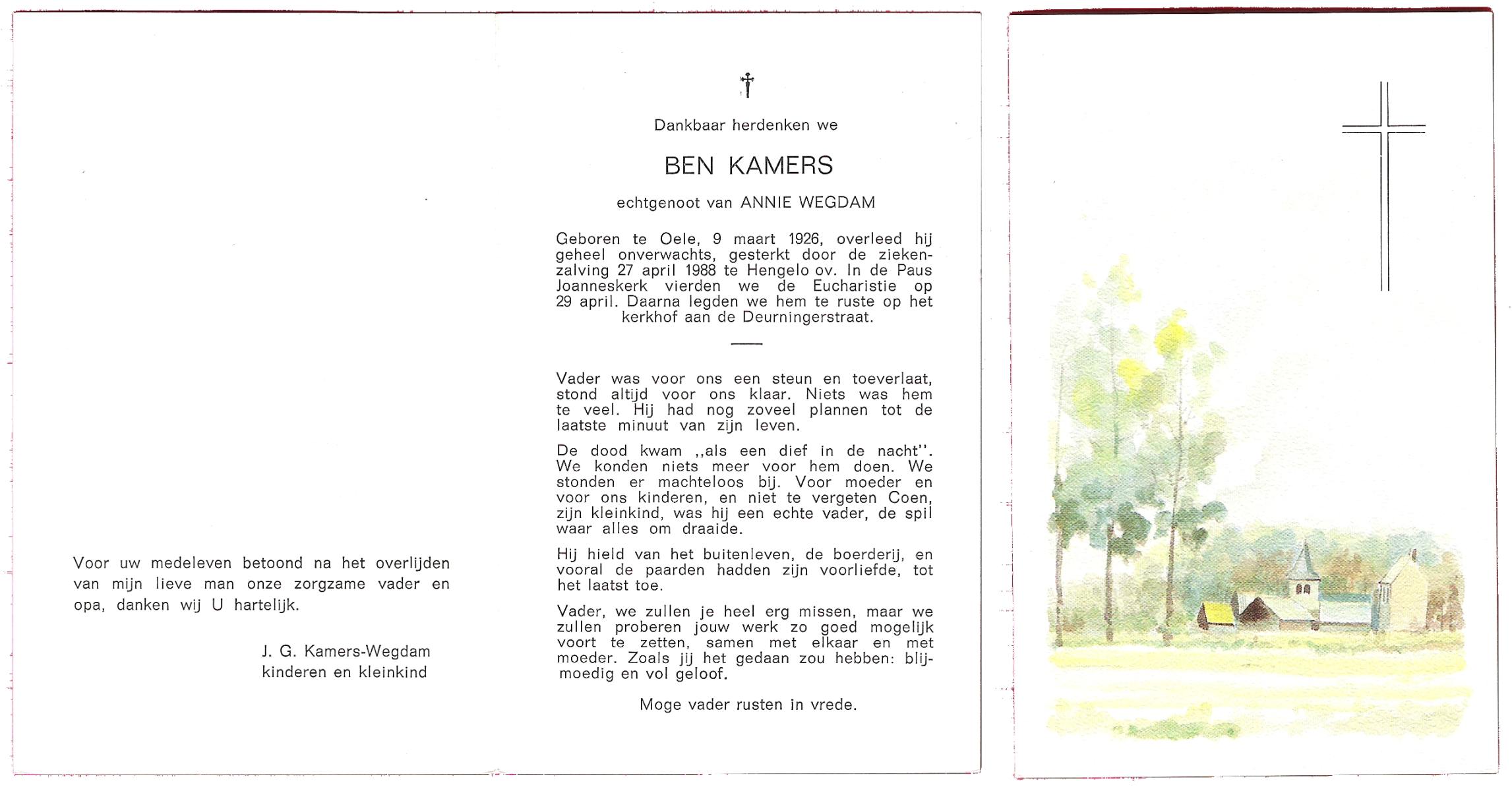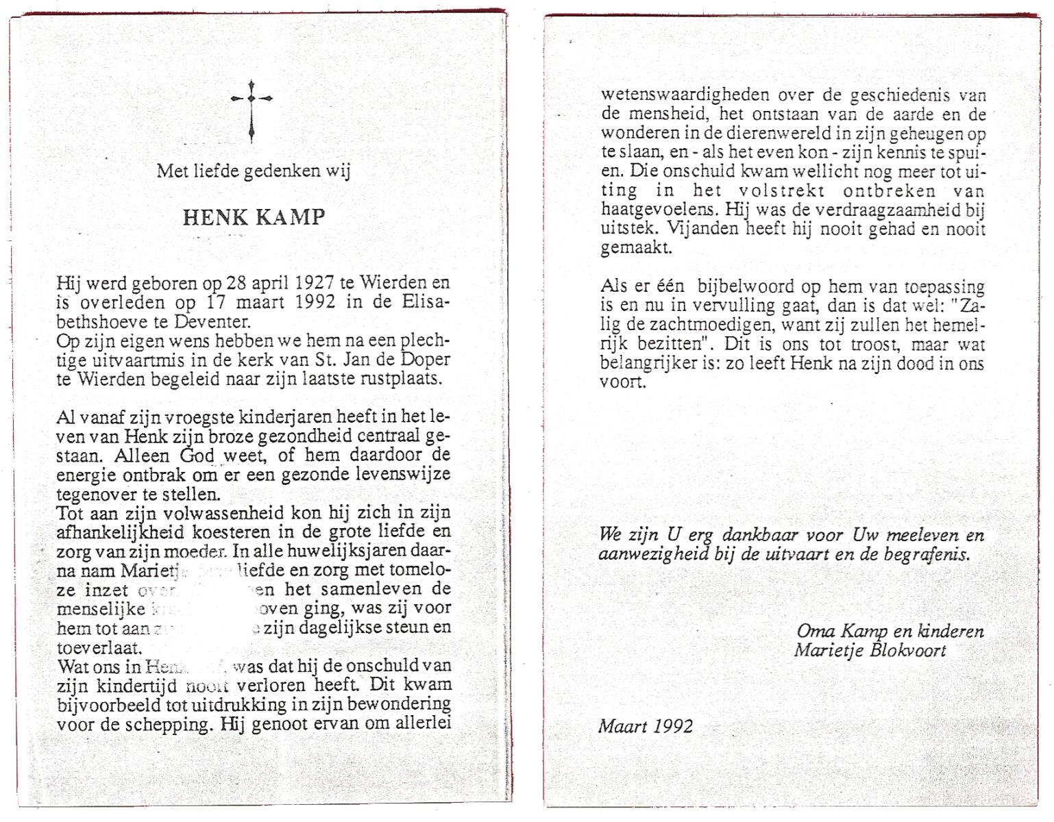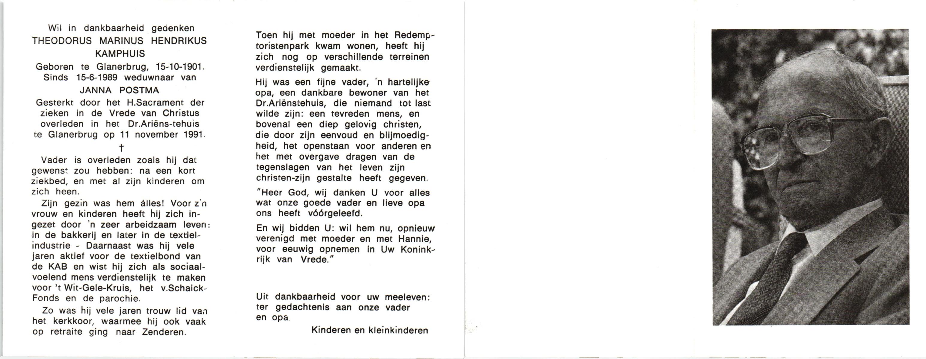 KAMPHUIS, , Johannes Hendrikus, geboren op 5-1-1914 te Harbrinkhoek, overleden op 20-4-1996 te Hengelo (O) op 82-jarige leeftijd, begraven op 24-4-1996 te Zenderen.