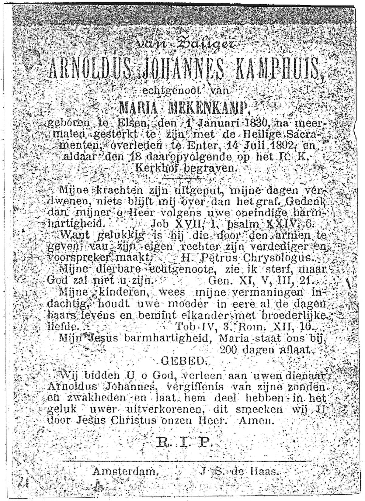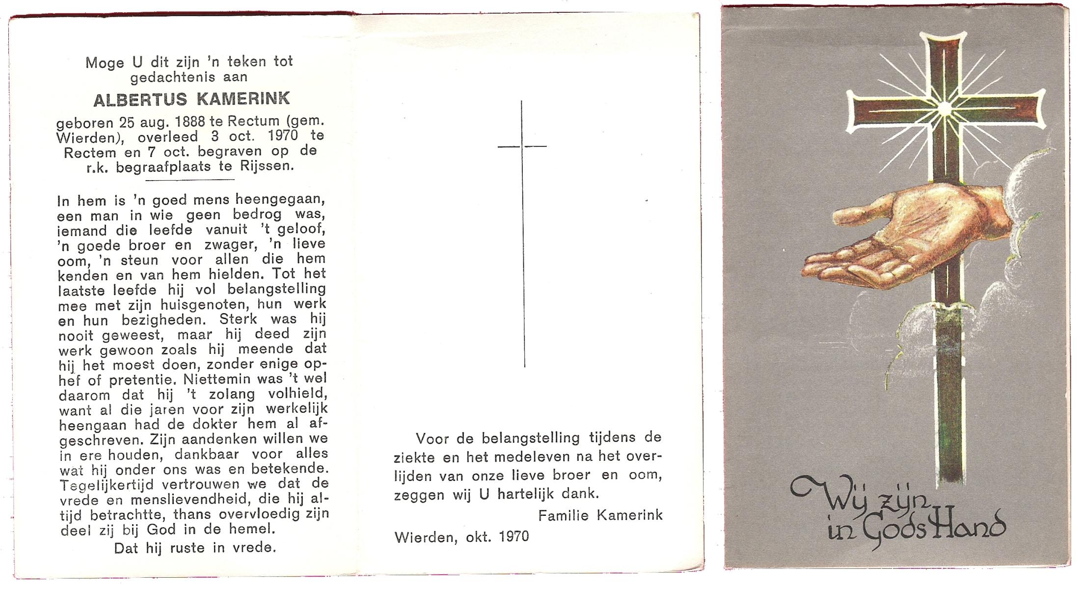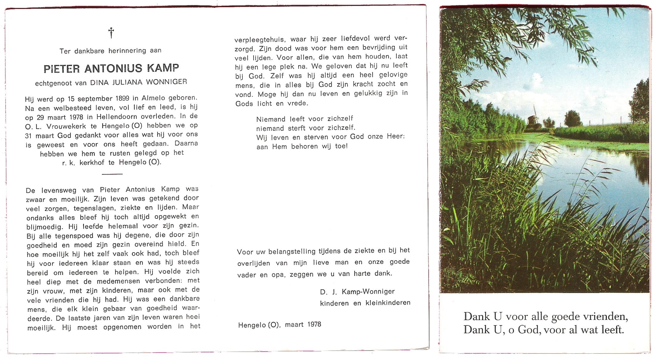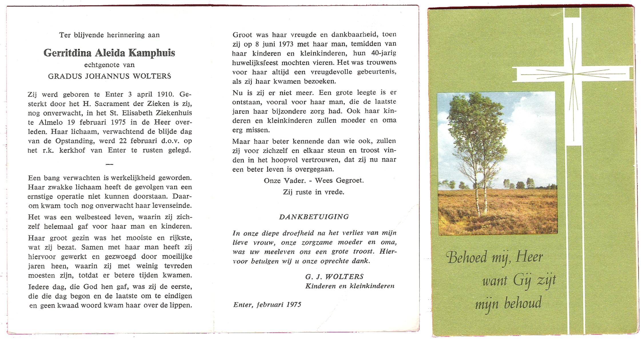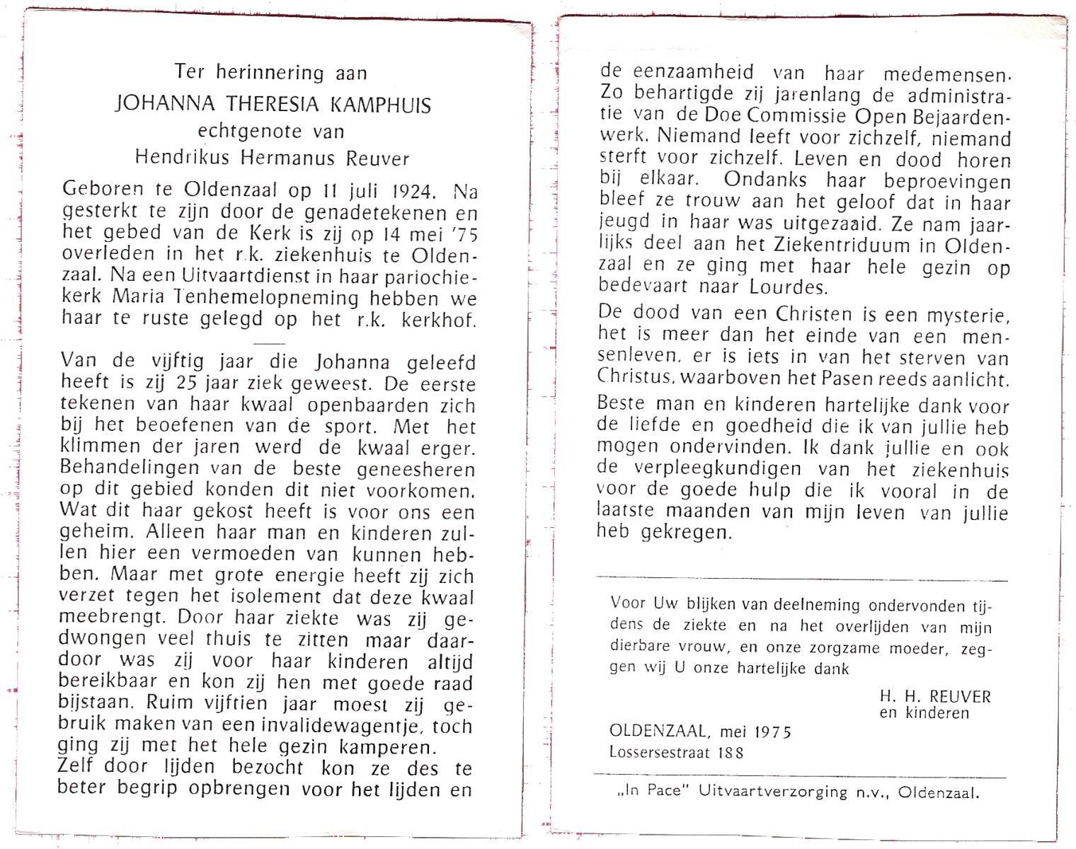 KAMPHUIS, , J.A., geboren op 14-11-1897 te Almelo, overleden op 17-9-1974 te Denekamp op 76-jarige leeftijd, begraven op 21-9-1974 te Denekamp.