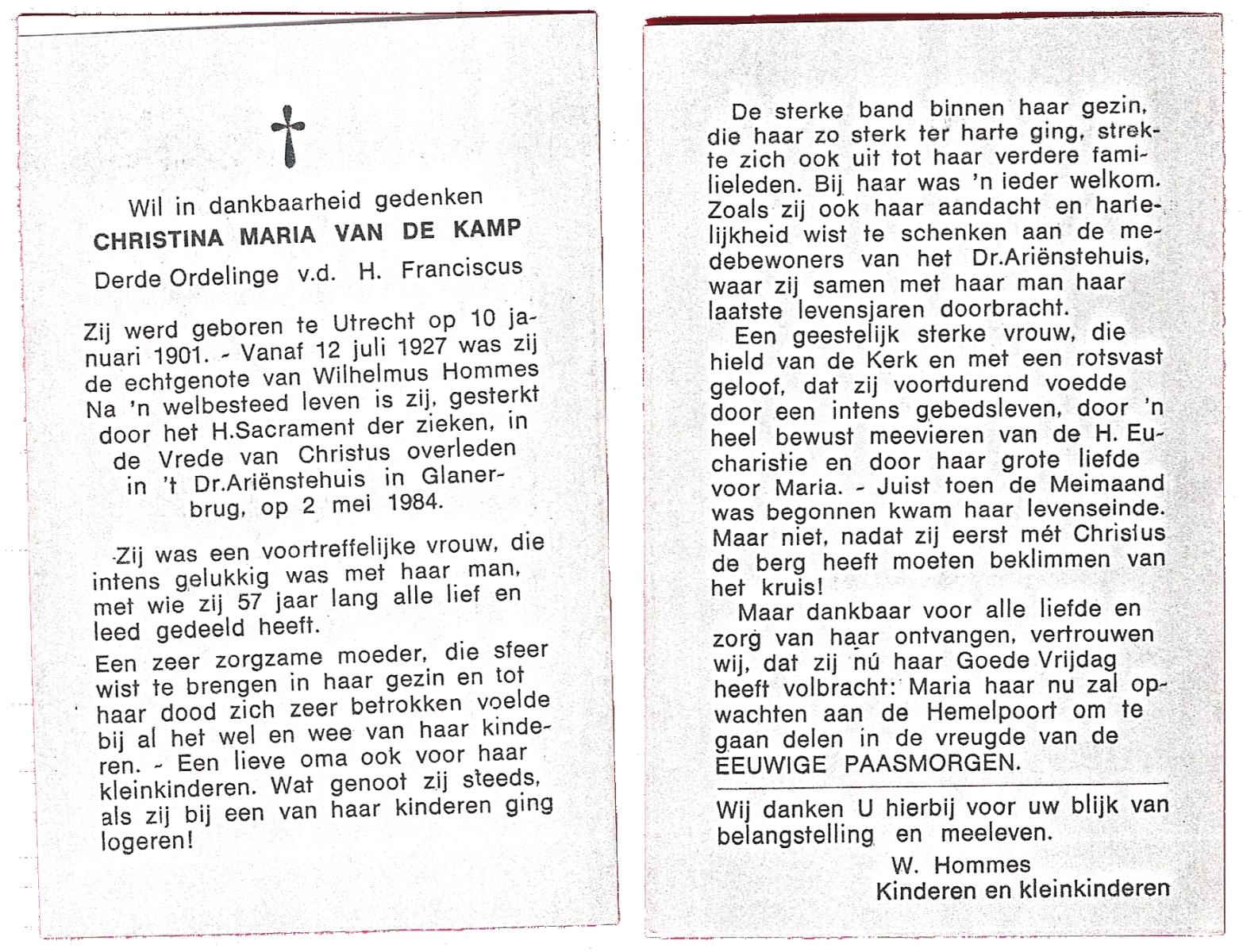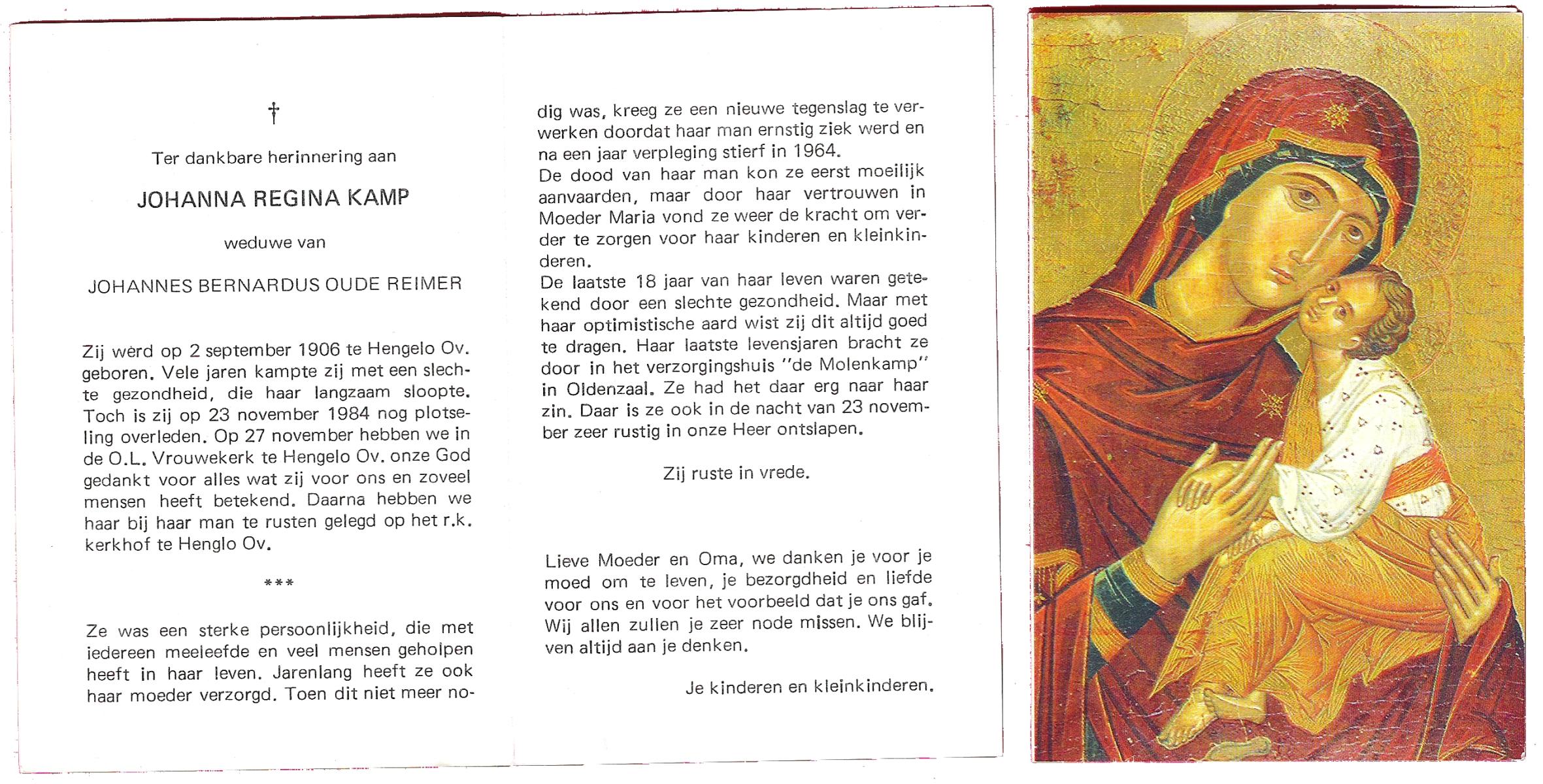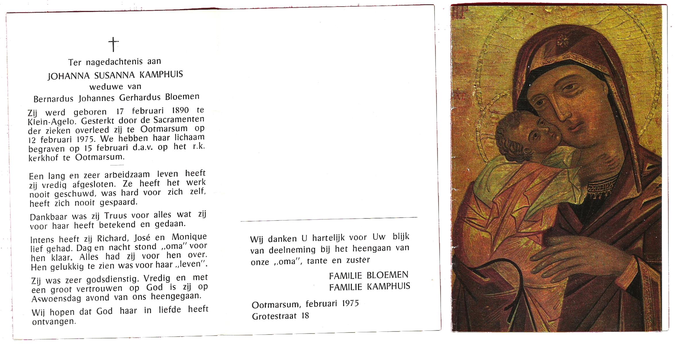 KAMPS, Maria Bartholomea, geboren op 2-8-1903 te Ooy, overleden op 19-1-1986 te Enschede op 82-jarige leeftijd.