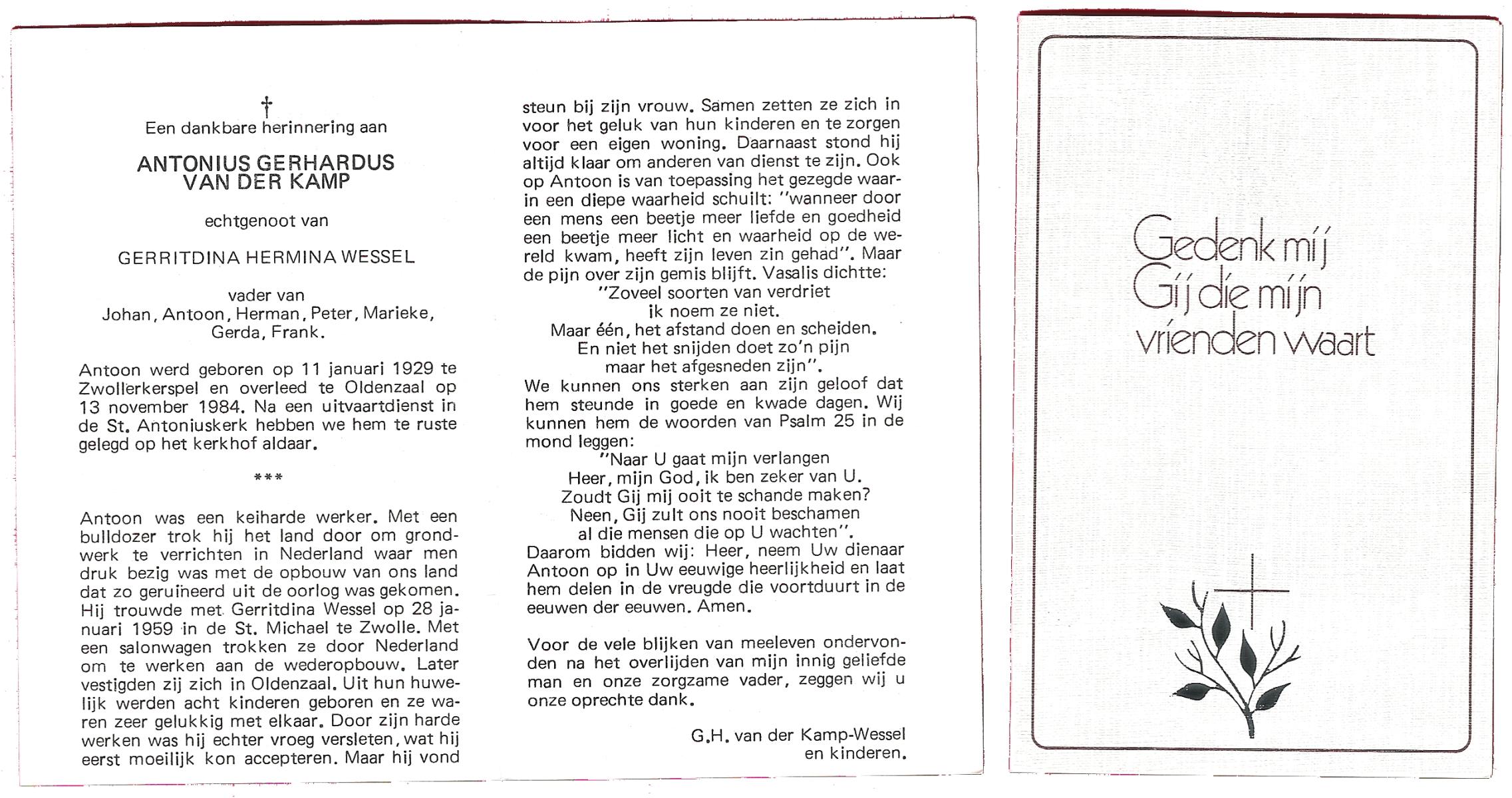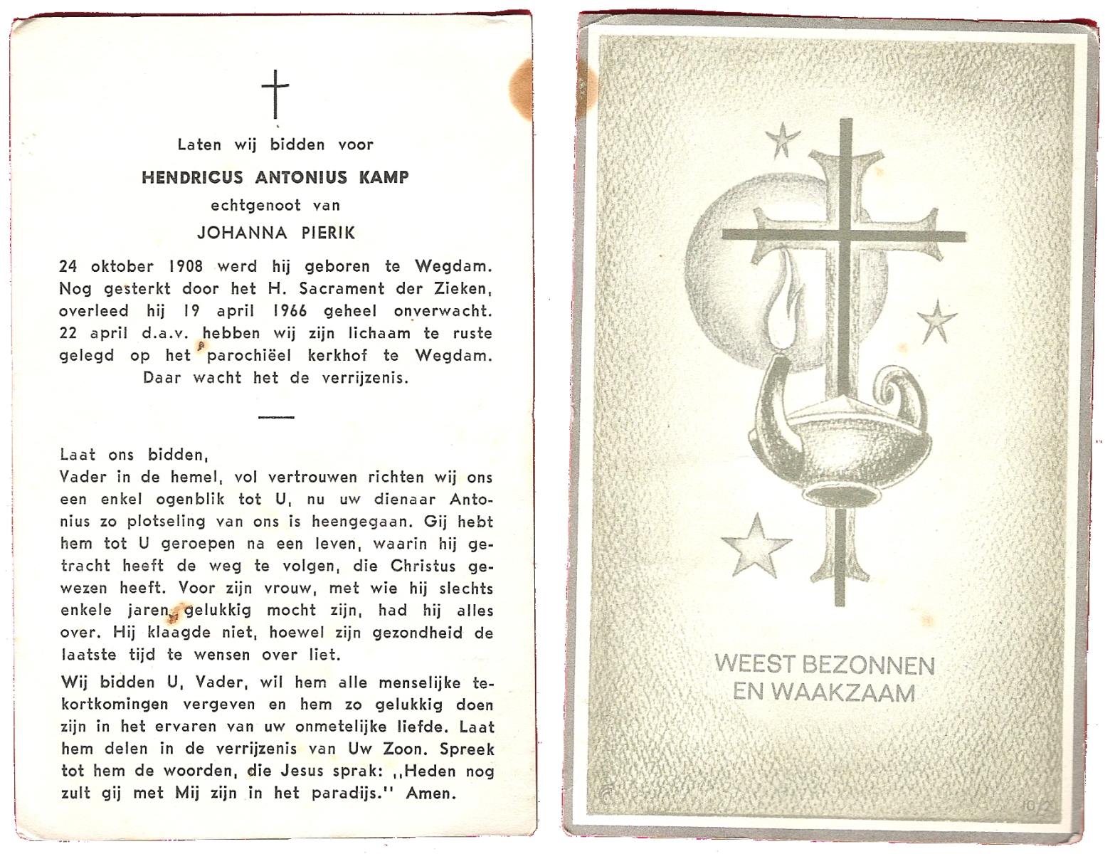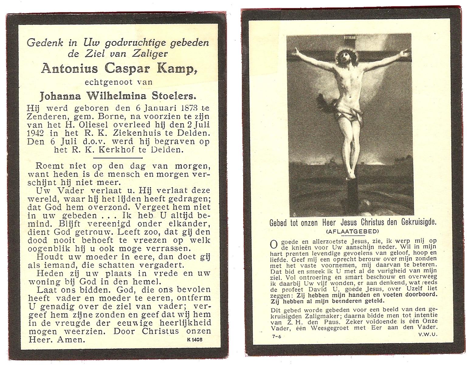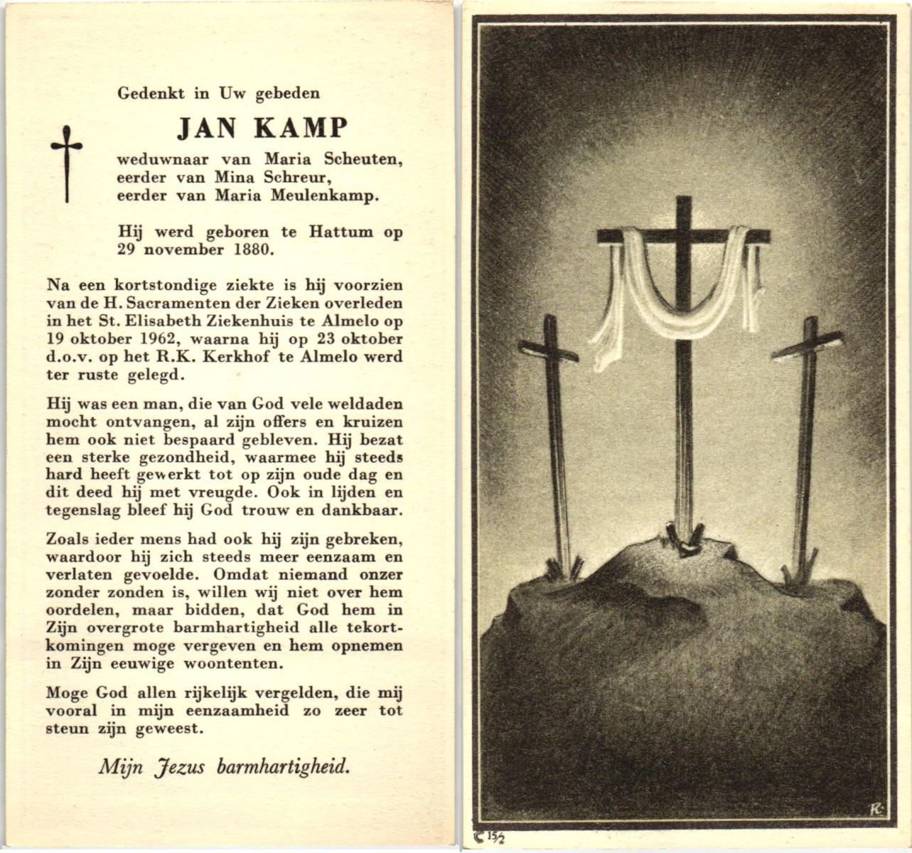KAMPKUIPER, Johan, geboren op 02-01-1888 te Almelo, overleden op 13-4-1965 te Almelo, ziekenhuis op 77-jarige leeftijd, begraven op 16-4-1985 te Almelo.