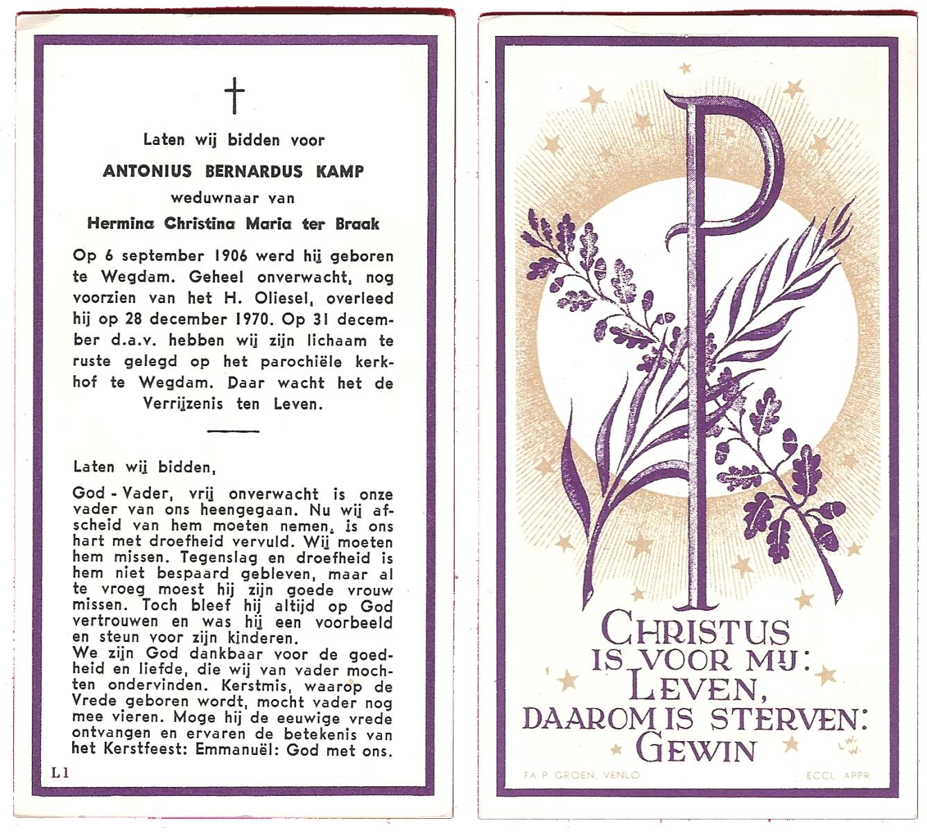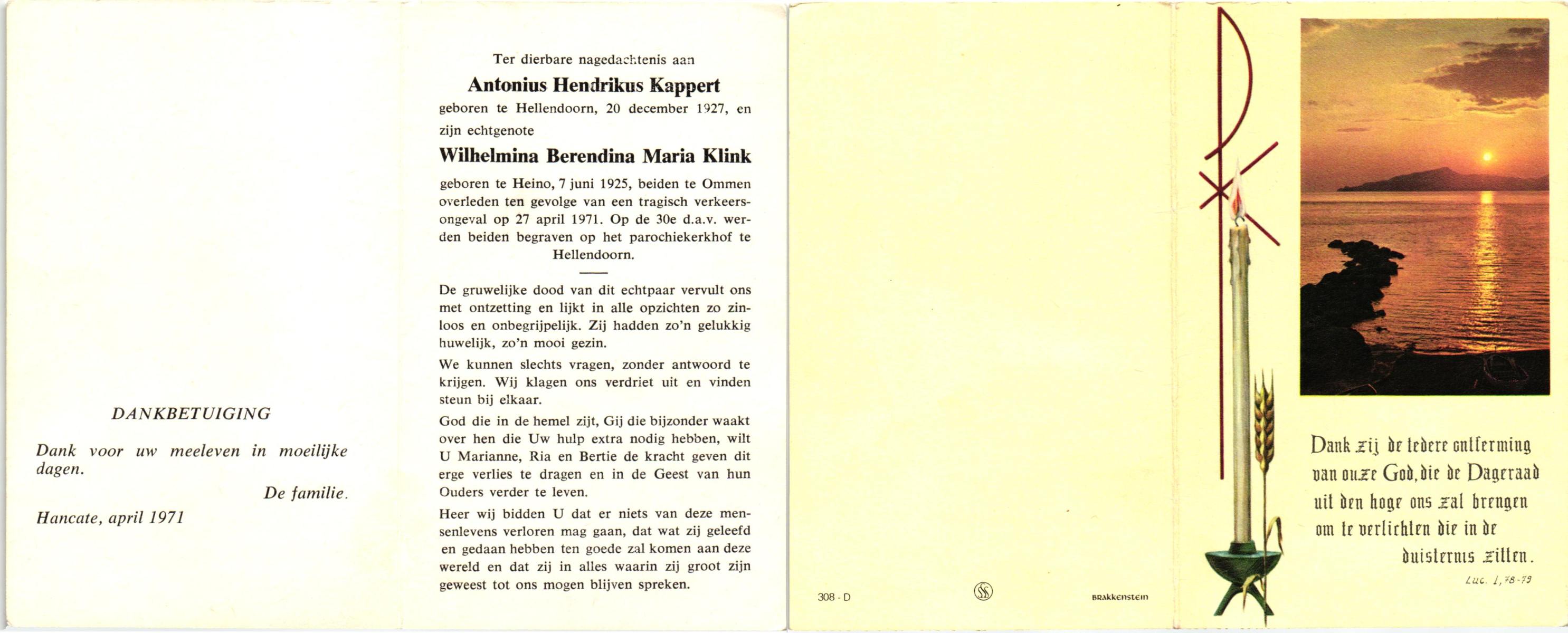KAPPERT, Antonius Hendrikus, geboren op 20-12-1927 te Hellendoorn, overleden op 27-4-1971 te Ommen op 43-jarige leeftijd, begraven op 30-4-1971 te Hellendoorn, rk.