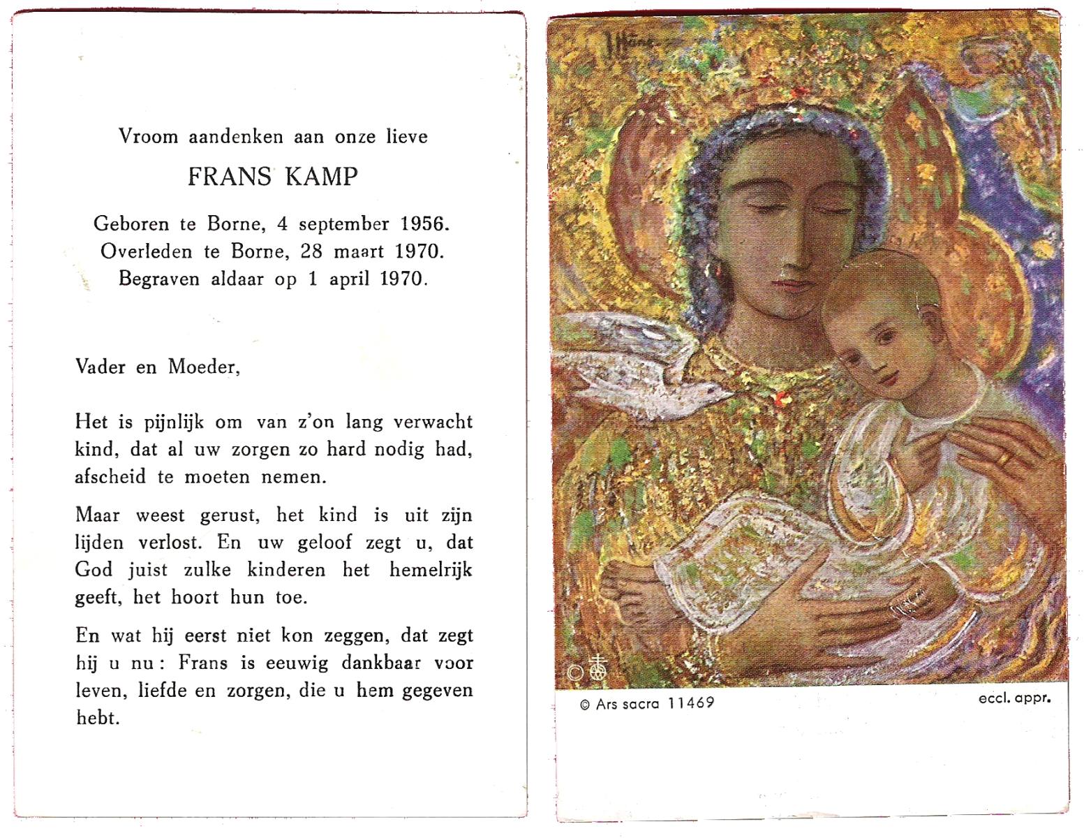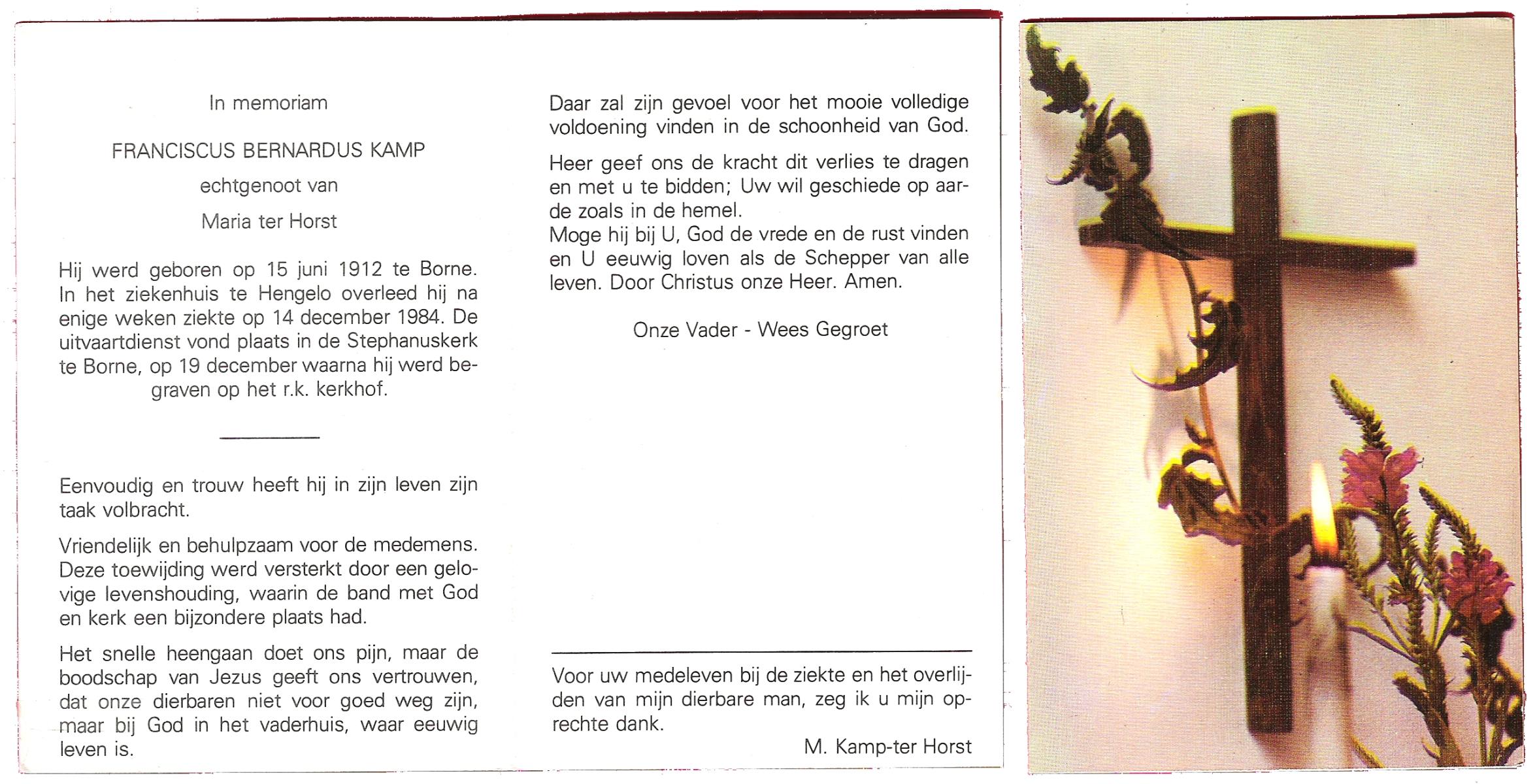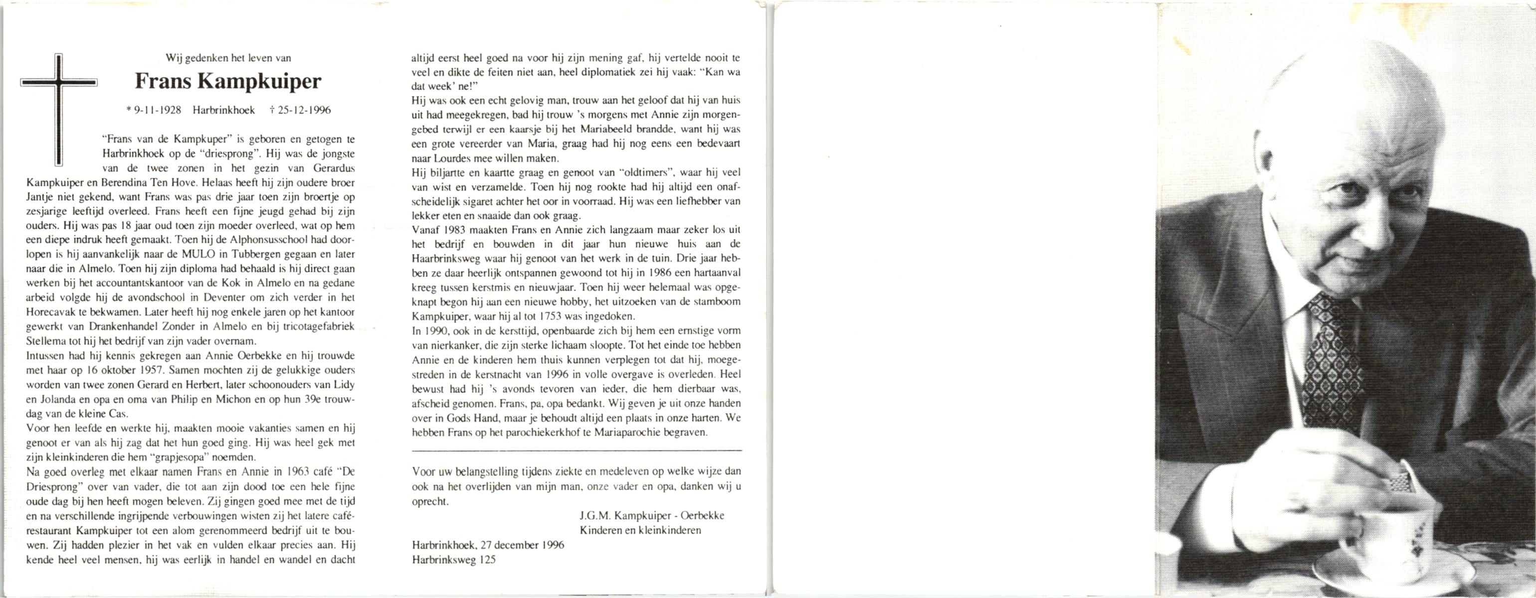 KAMPKUIPER, , Frans, geboren op 9-11-1928 te Harbrinkhoek, overleden op 25-12-1996 te Harbrinkhoek op 68-jarige leeftijd.