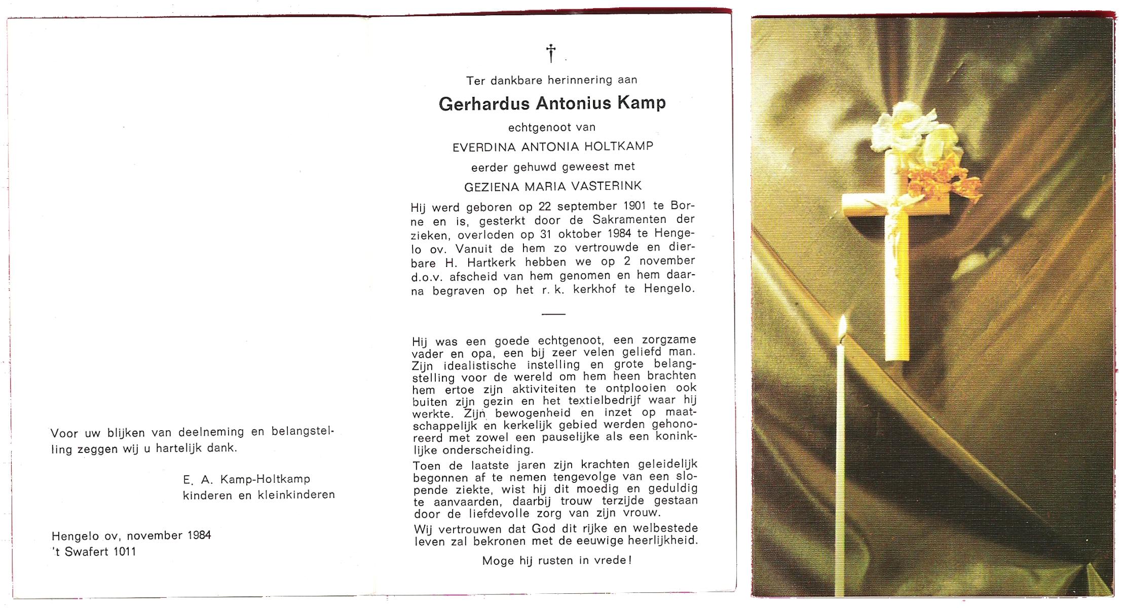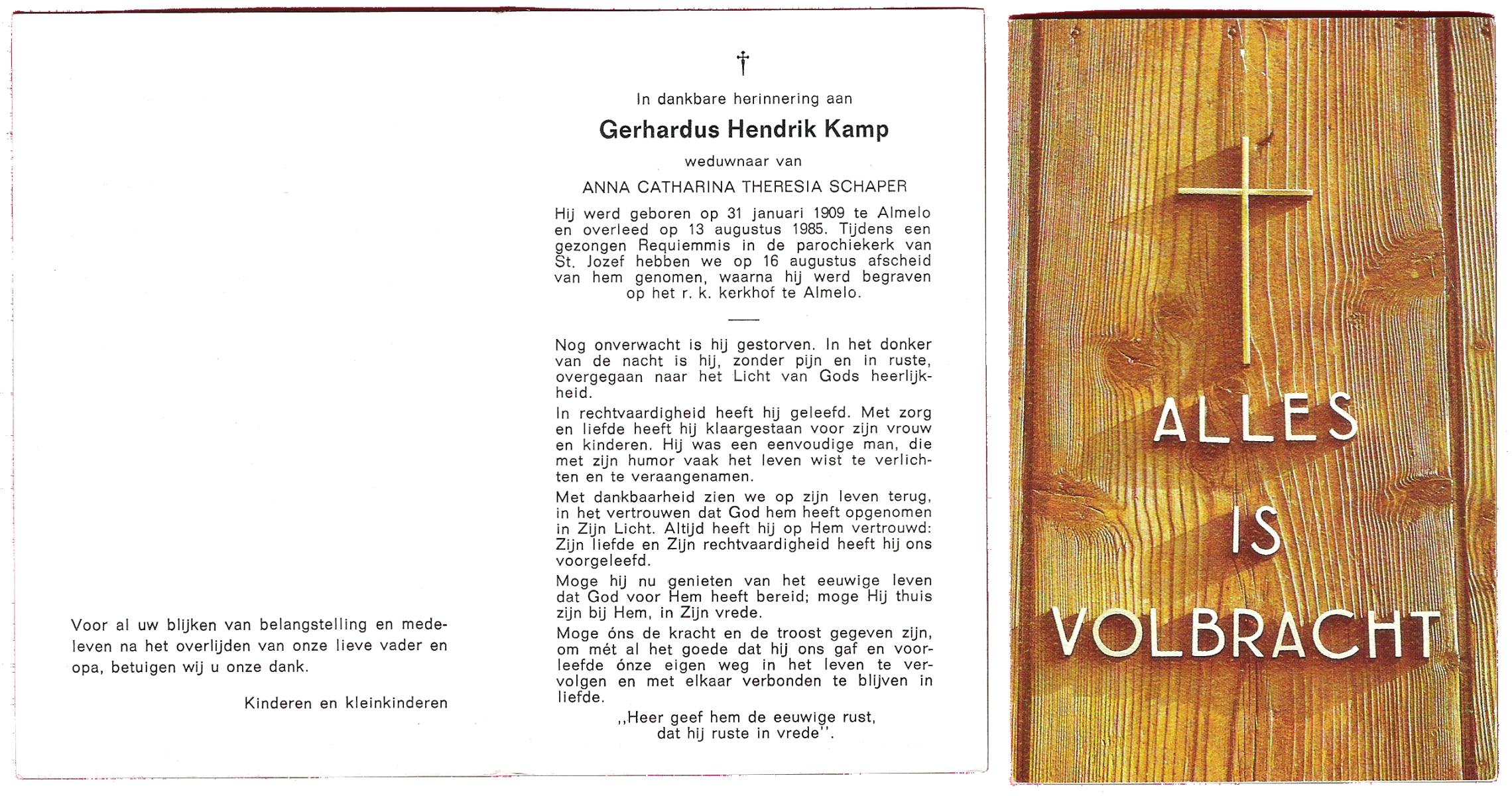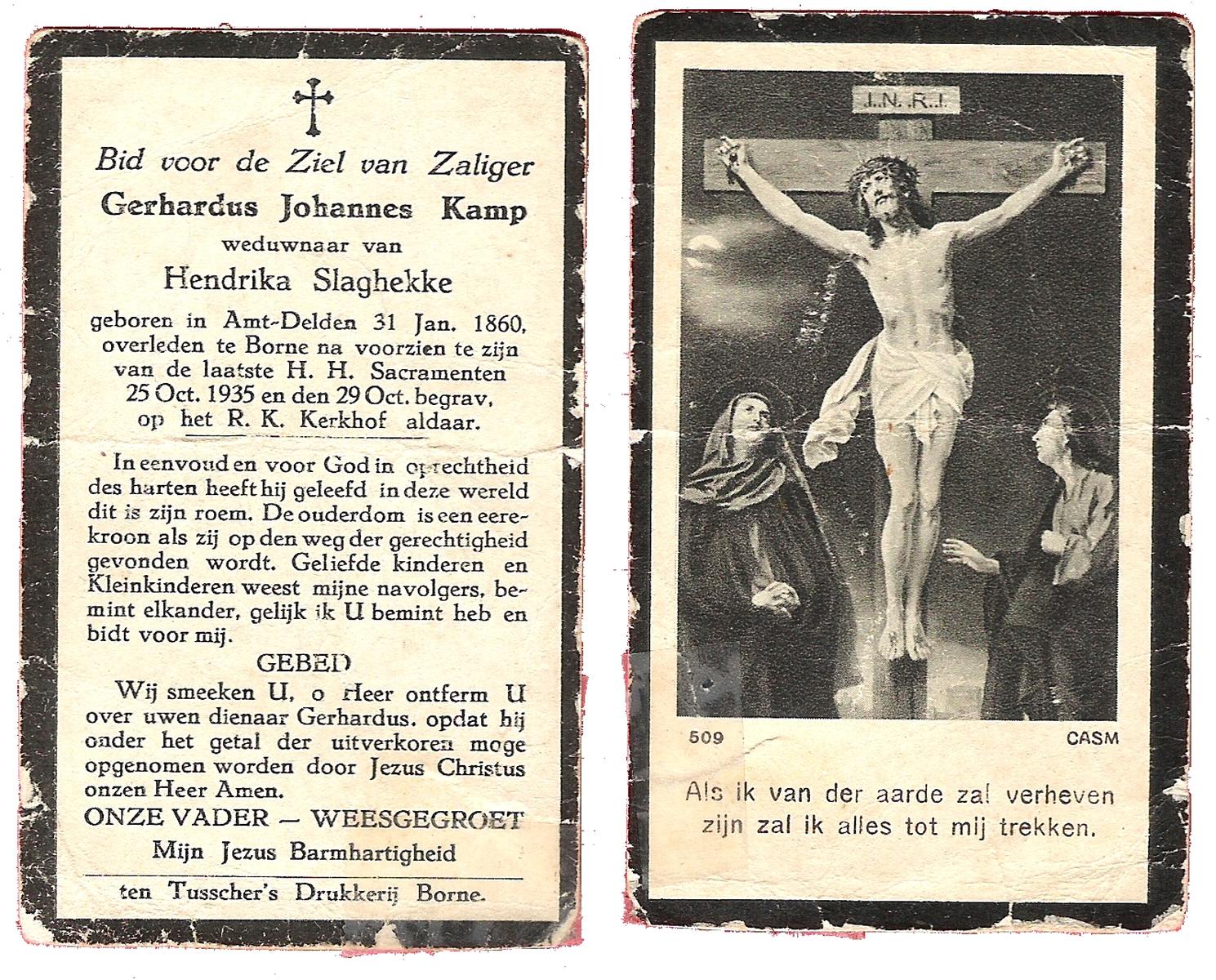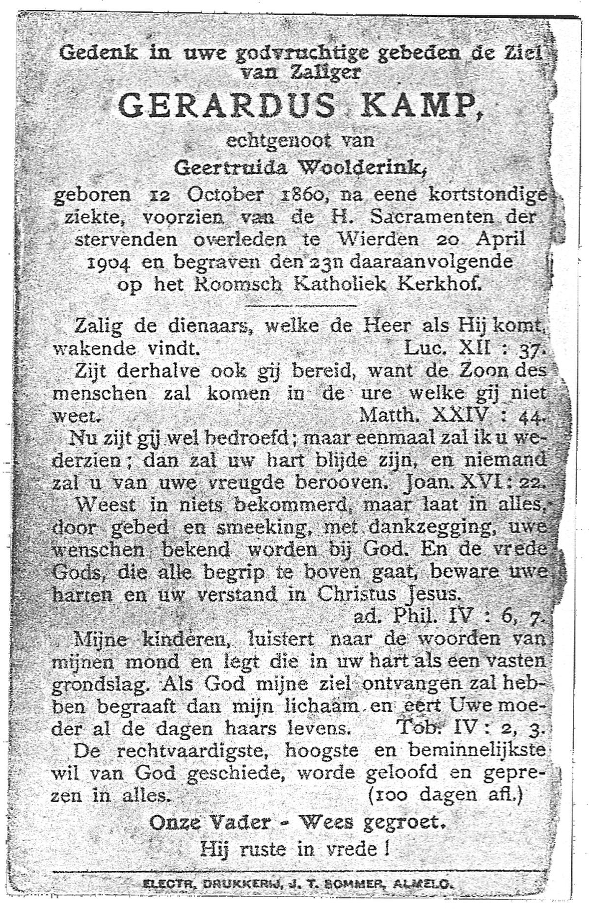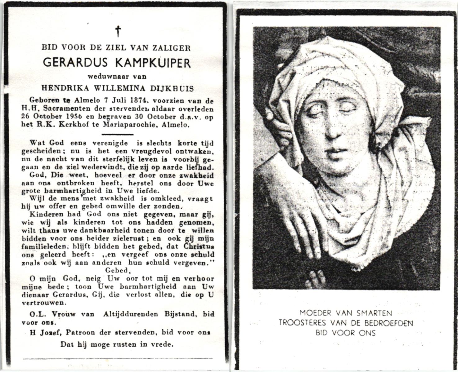 KAMPKUIPER, , Gerardus, geboren op 07-07-1874 te Almelo, overleden op 26-10-1956 te Almelo op 82-jarige leeftijd, begraven op 30-10-1956 te Mariaparochie.