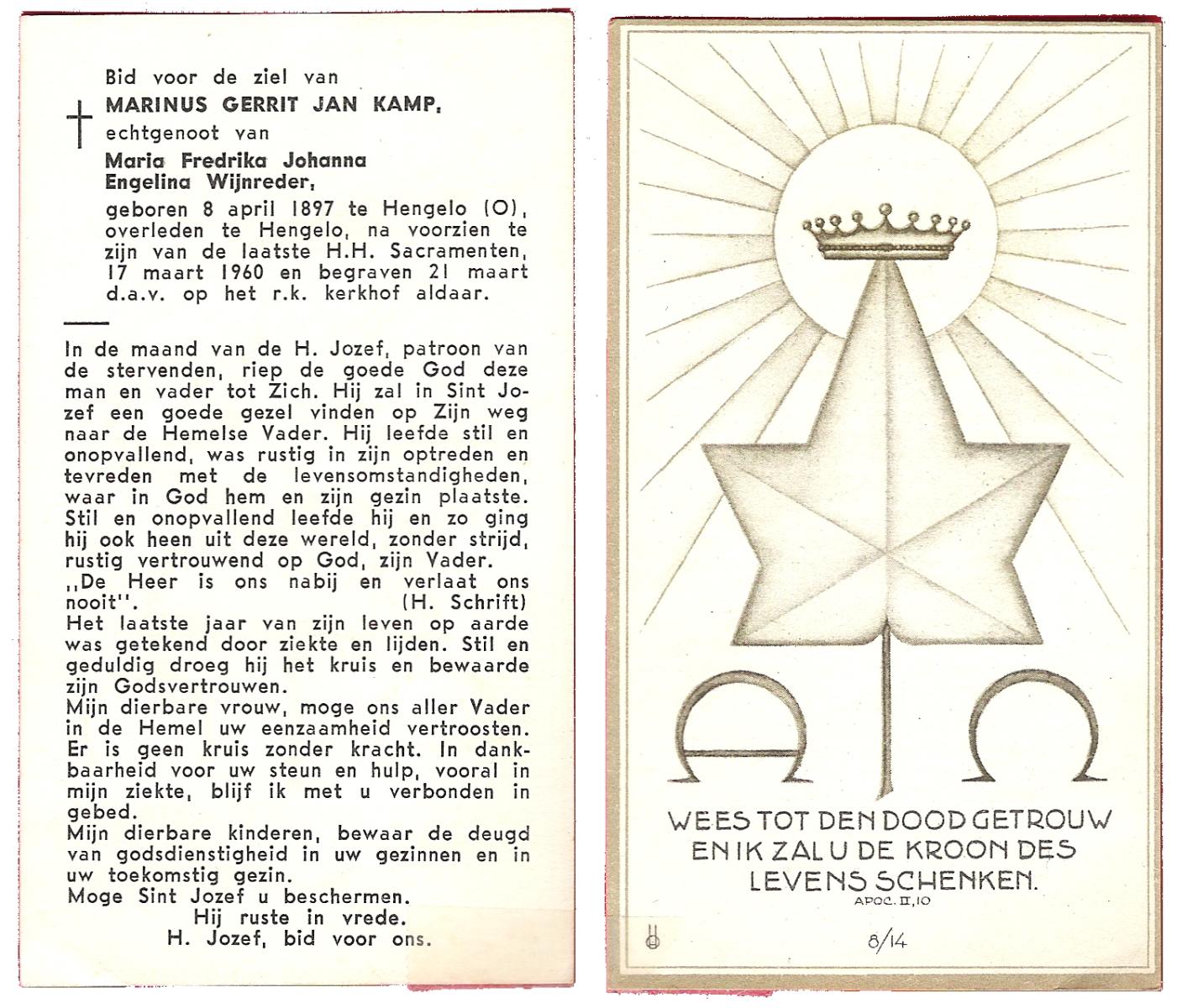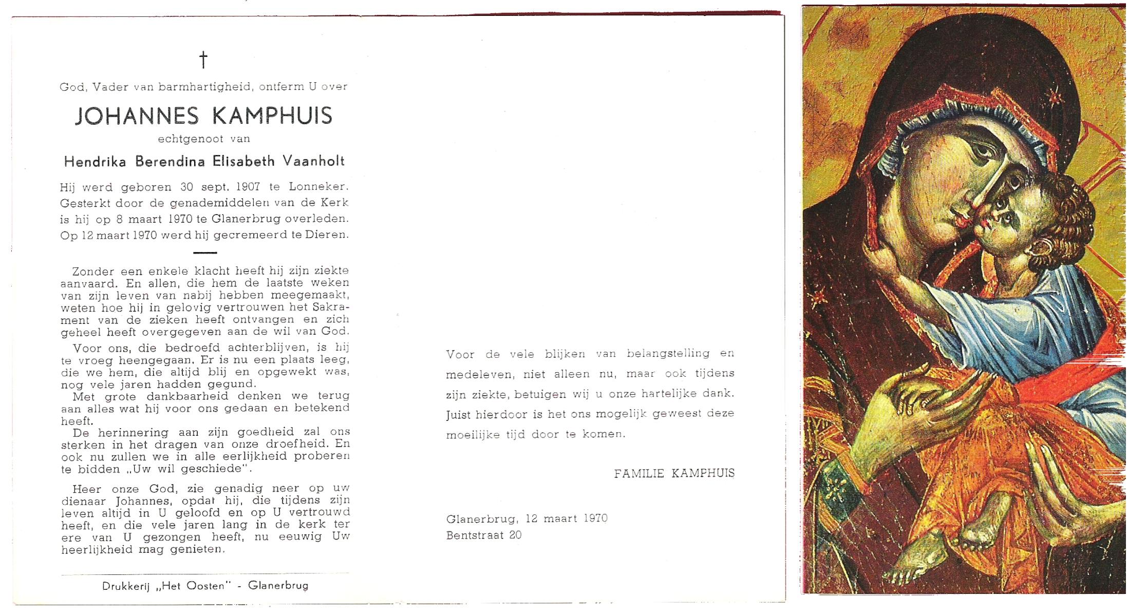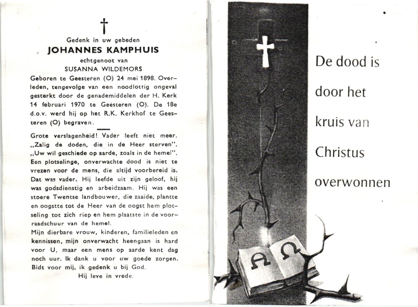 KAMPHUIS, , Johannes, geboren op 24-05-1898 te Geesteren, overleden op 14-2-1970 te Geesteren op 71-jarige leeftijd, begraven op 18-2-1970 te Geesteren.