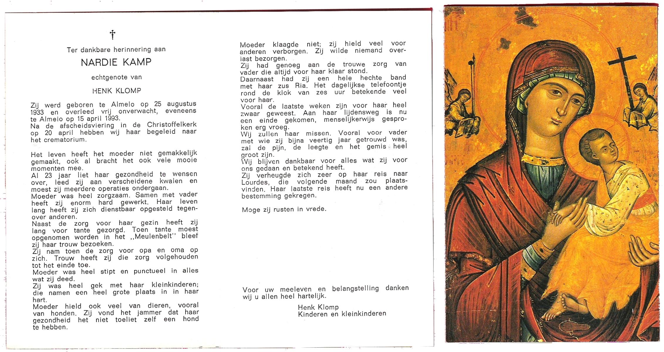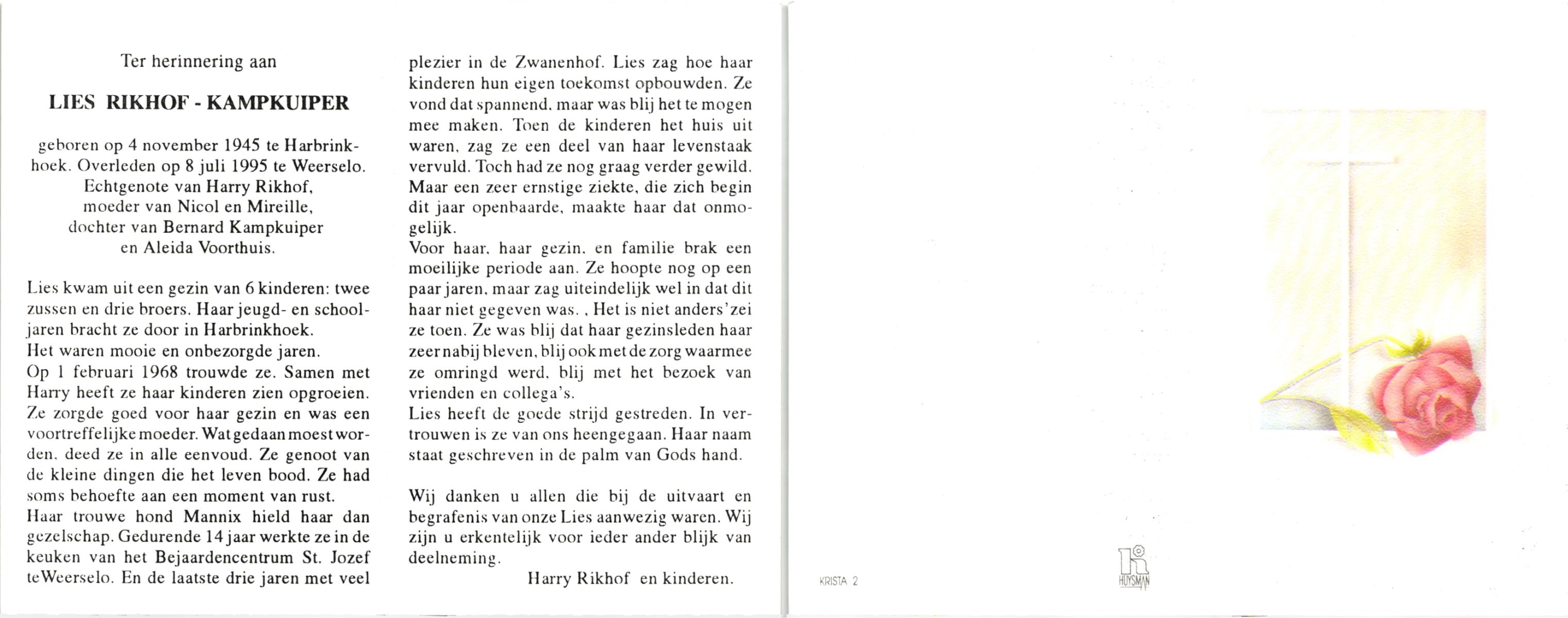 KAMPKUIPER, , Lies, geboren op 4-11-1945 te Harbrinkhoek, overleden op 8-7-1995 te Weerselo op 49-jarige leeftijd.