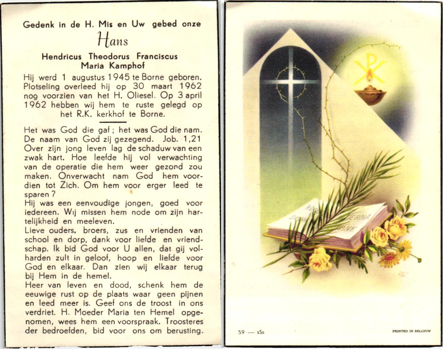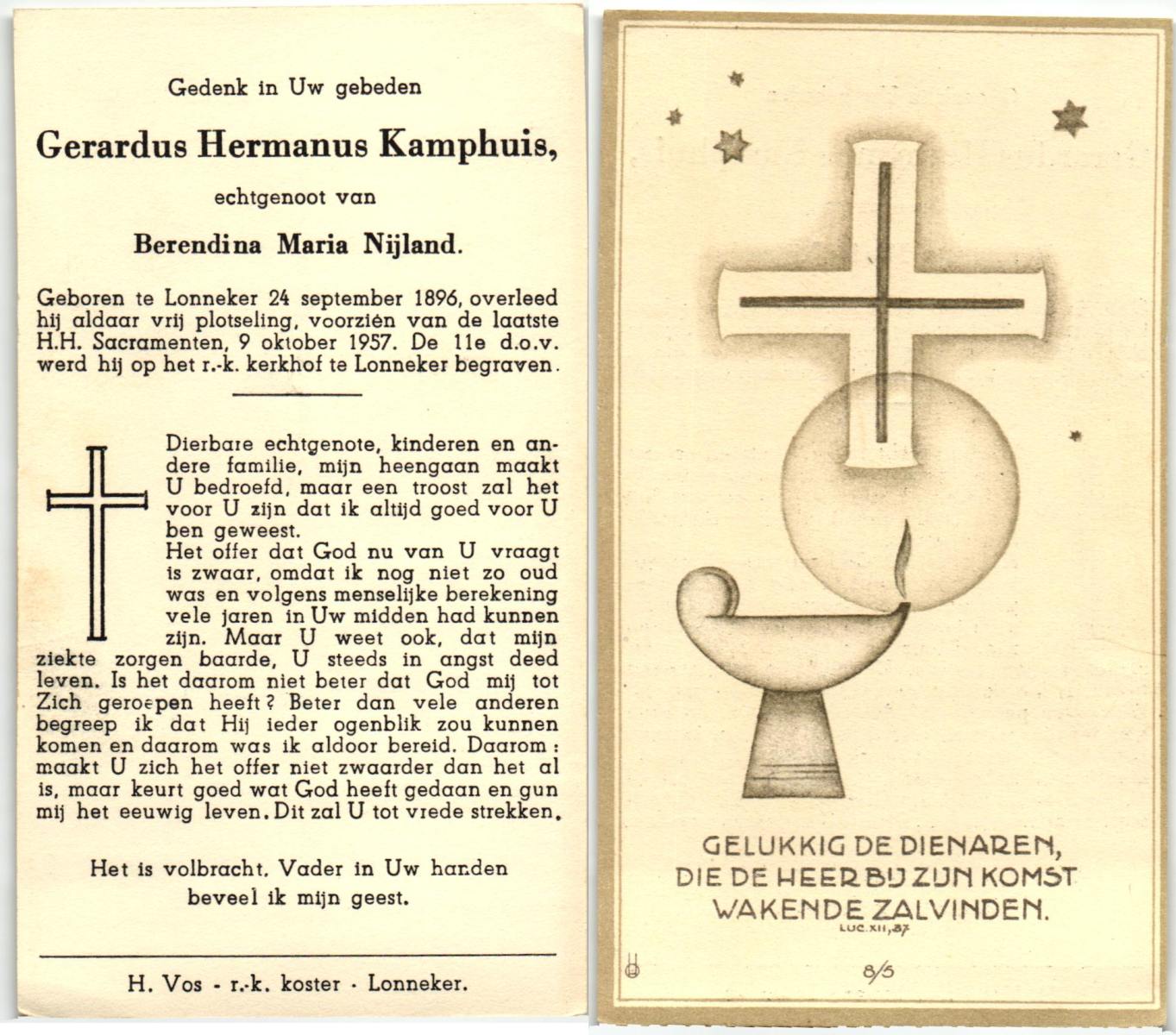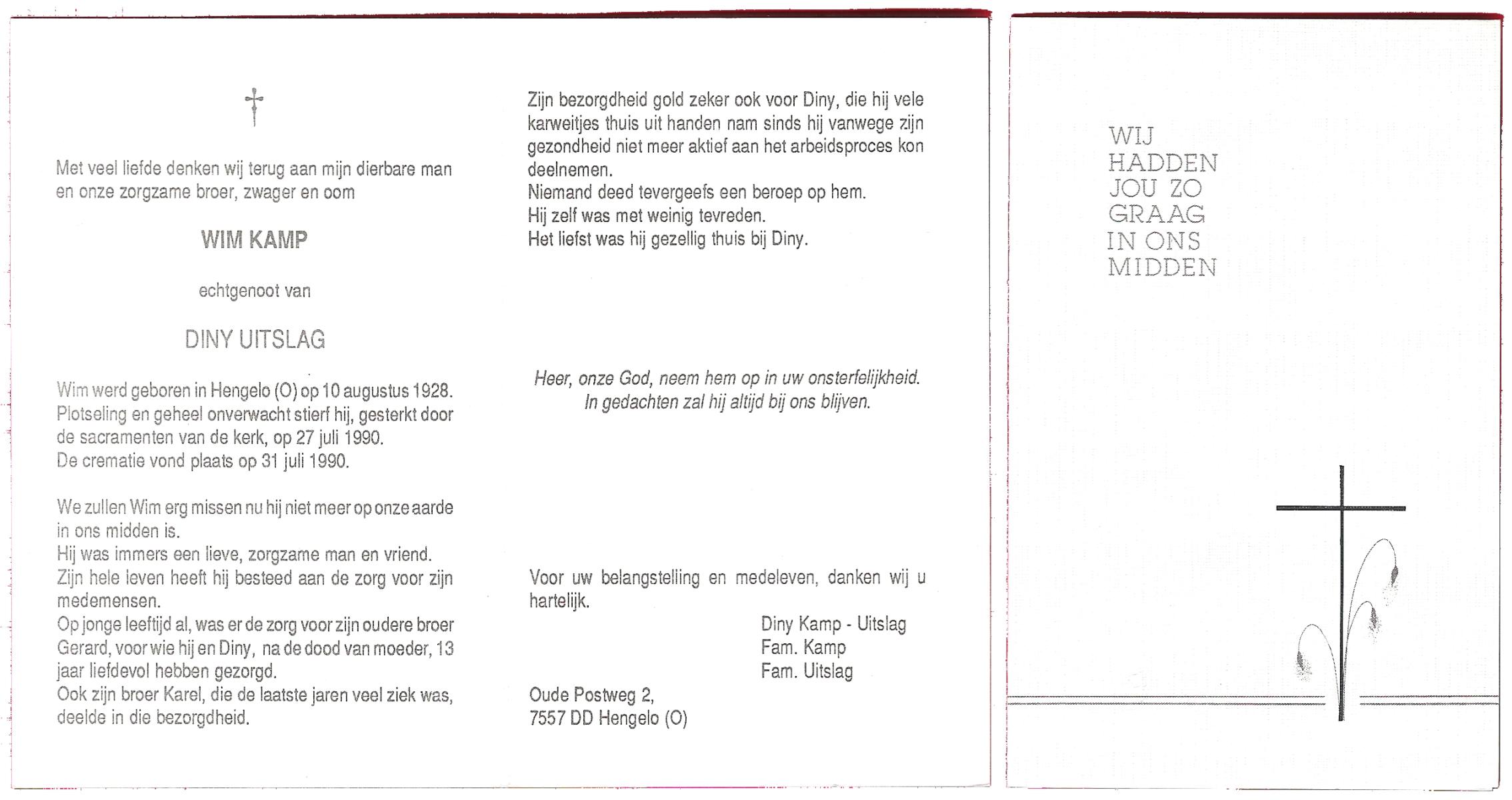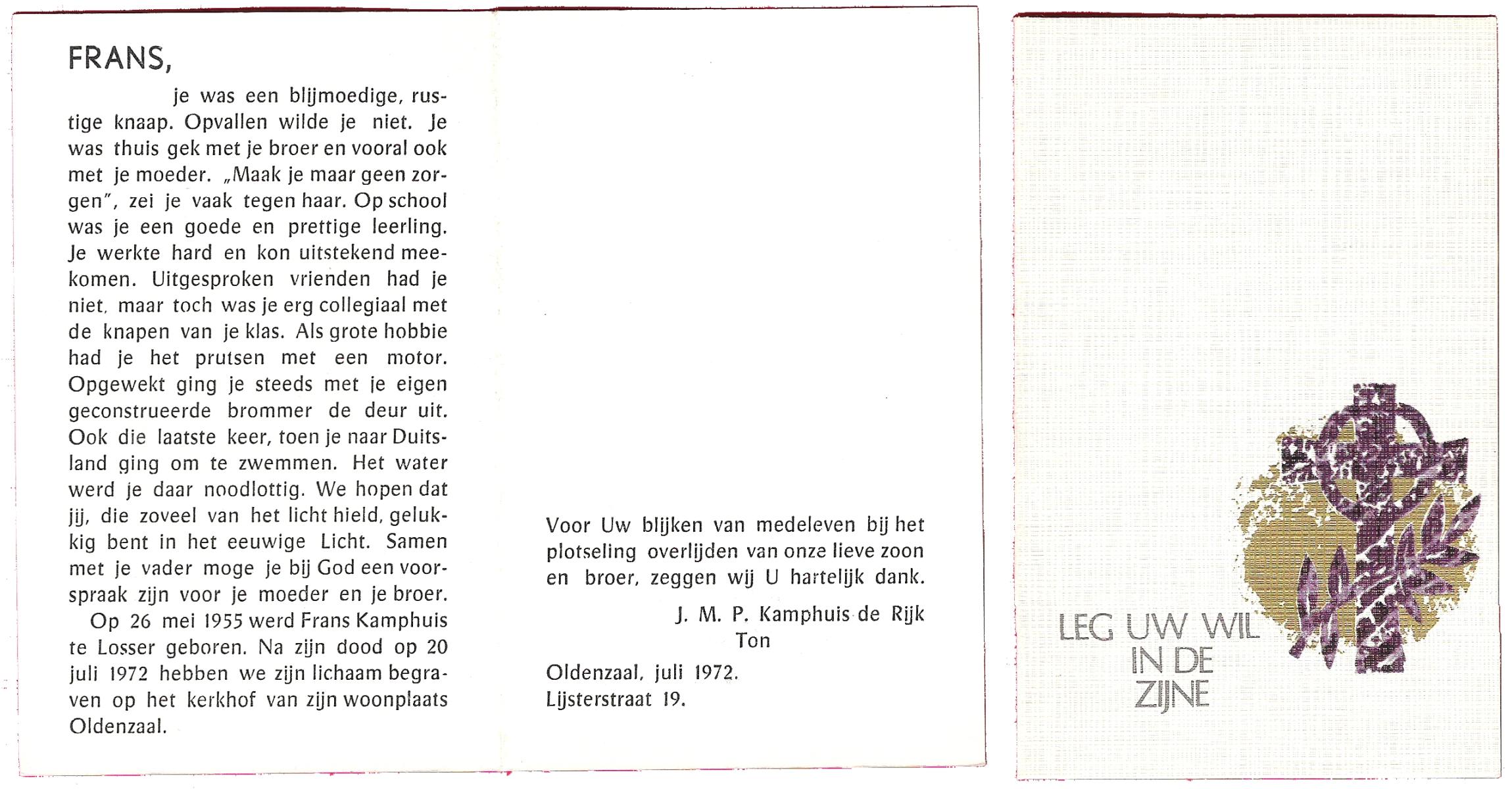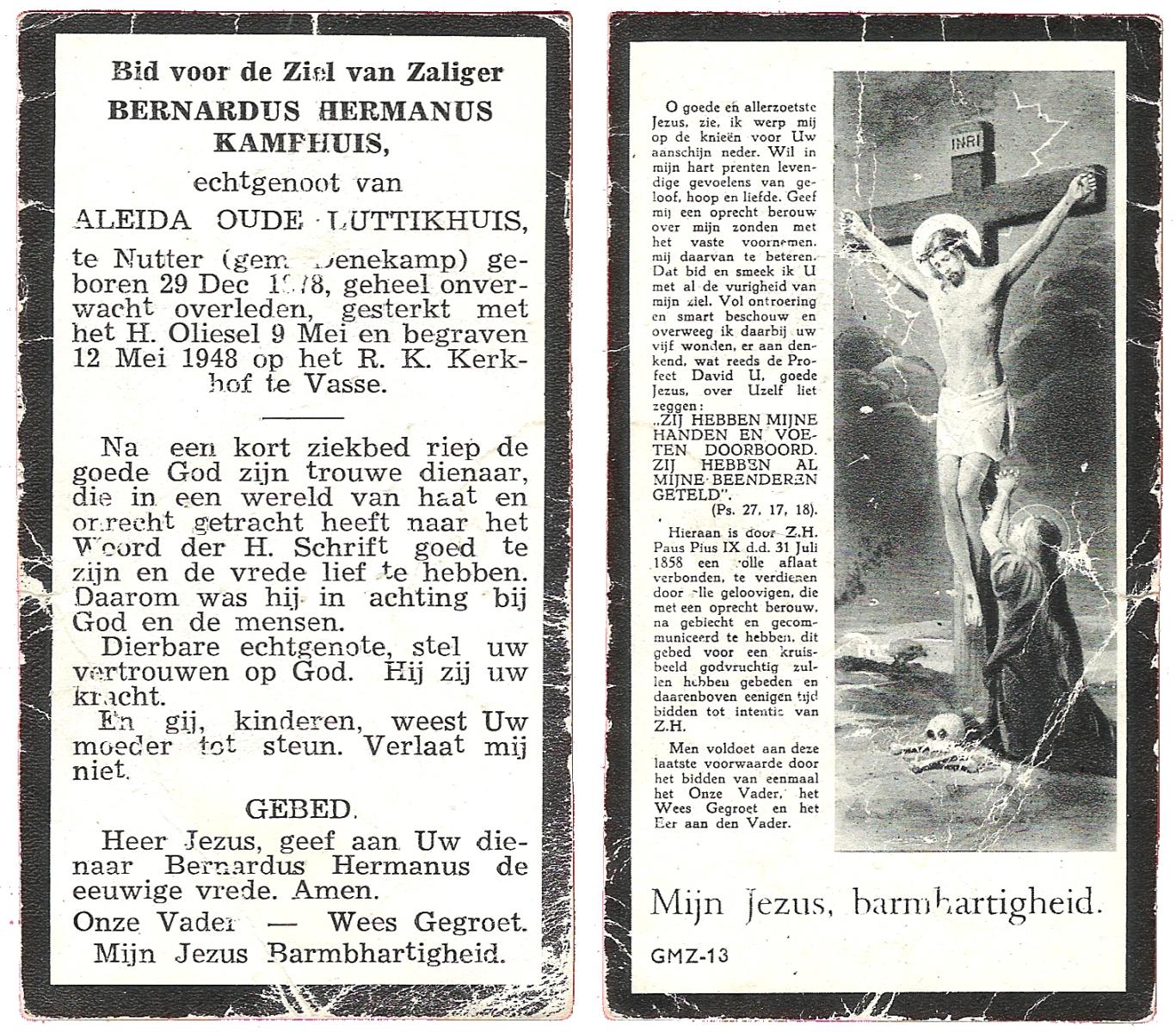 KAMPHUIS, , Jan Hendrik, geboren op 11-6-1918 te Losser, overleden op 7-12-1976 te Oldenzaal op 58-jarige leeftijd, gecremeerd op 11-12-1976 te Rossum.