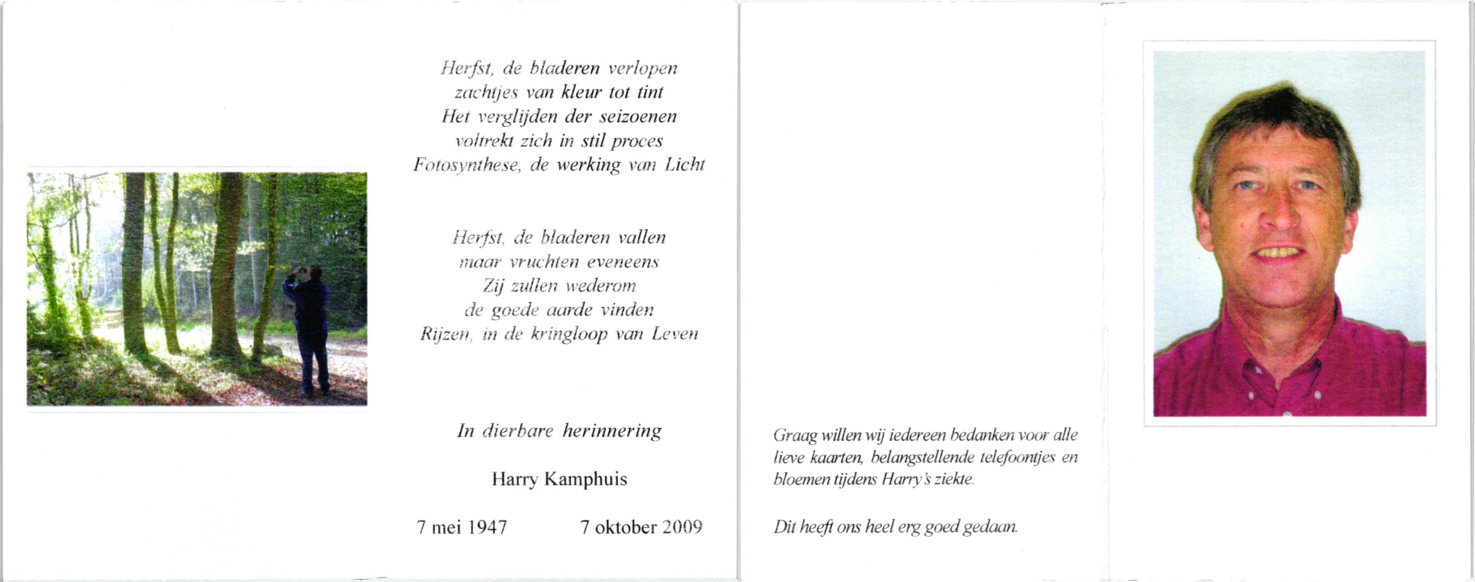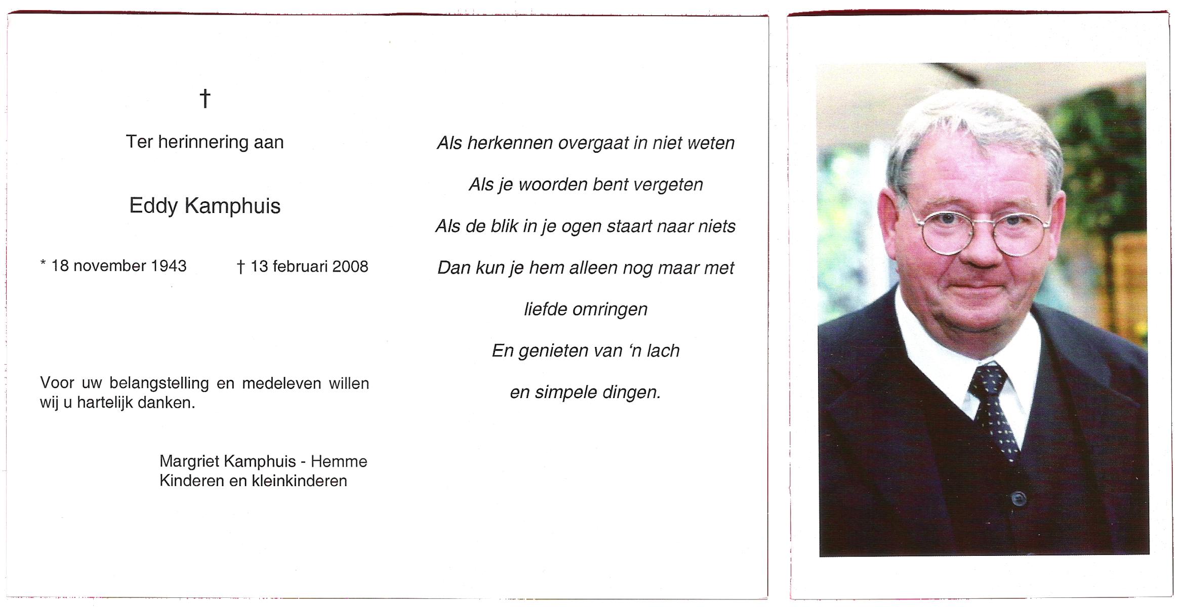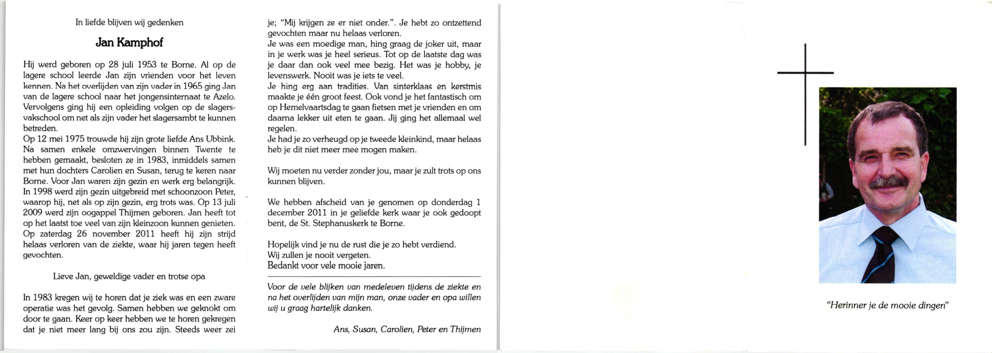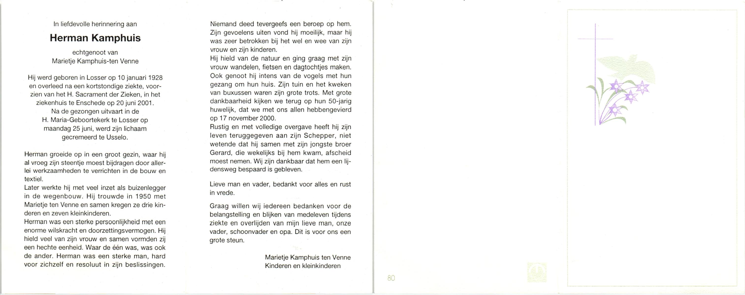 KAMPHUIS, , Johan, geboren op 16-5-1930 te Albergen, overleden op 9-2-2010 te Almelo op 79-jarige leeftijd.