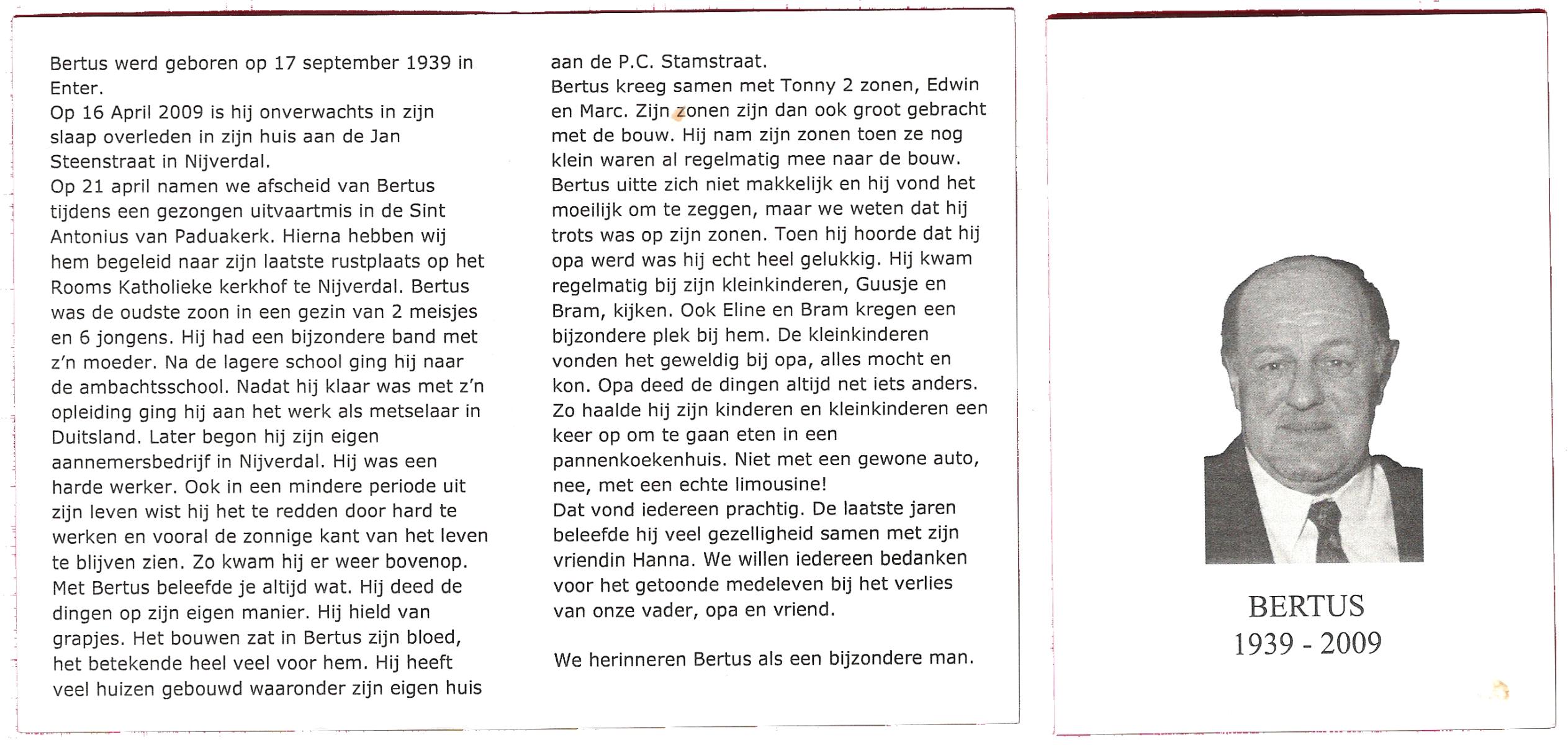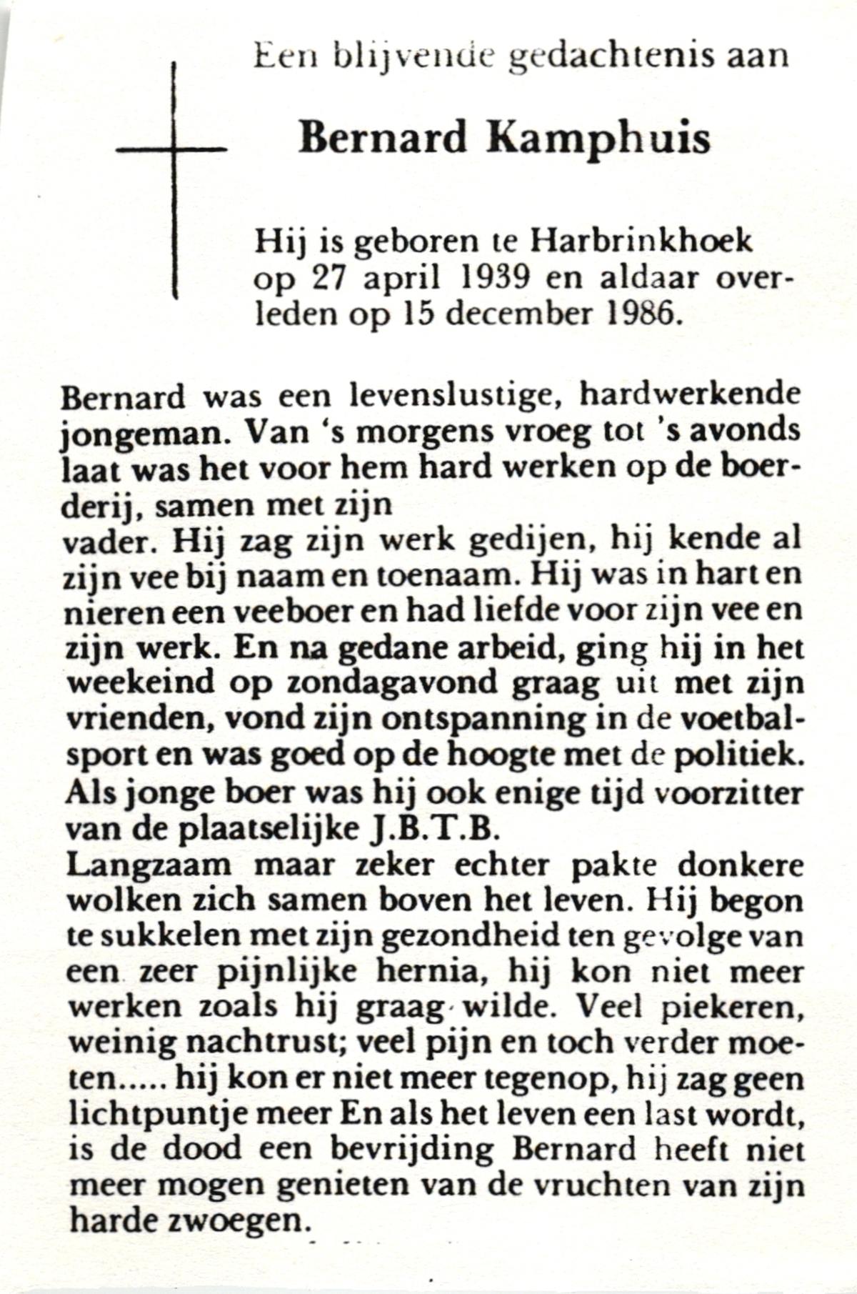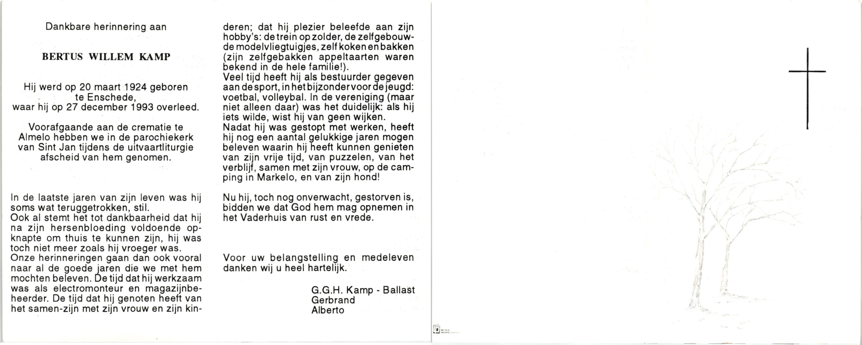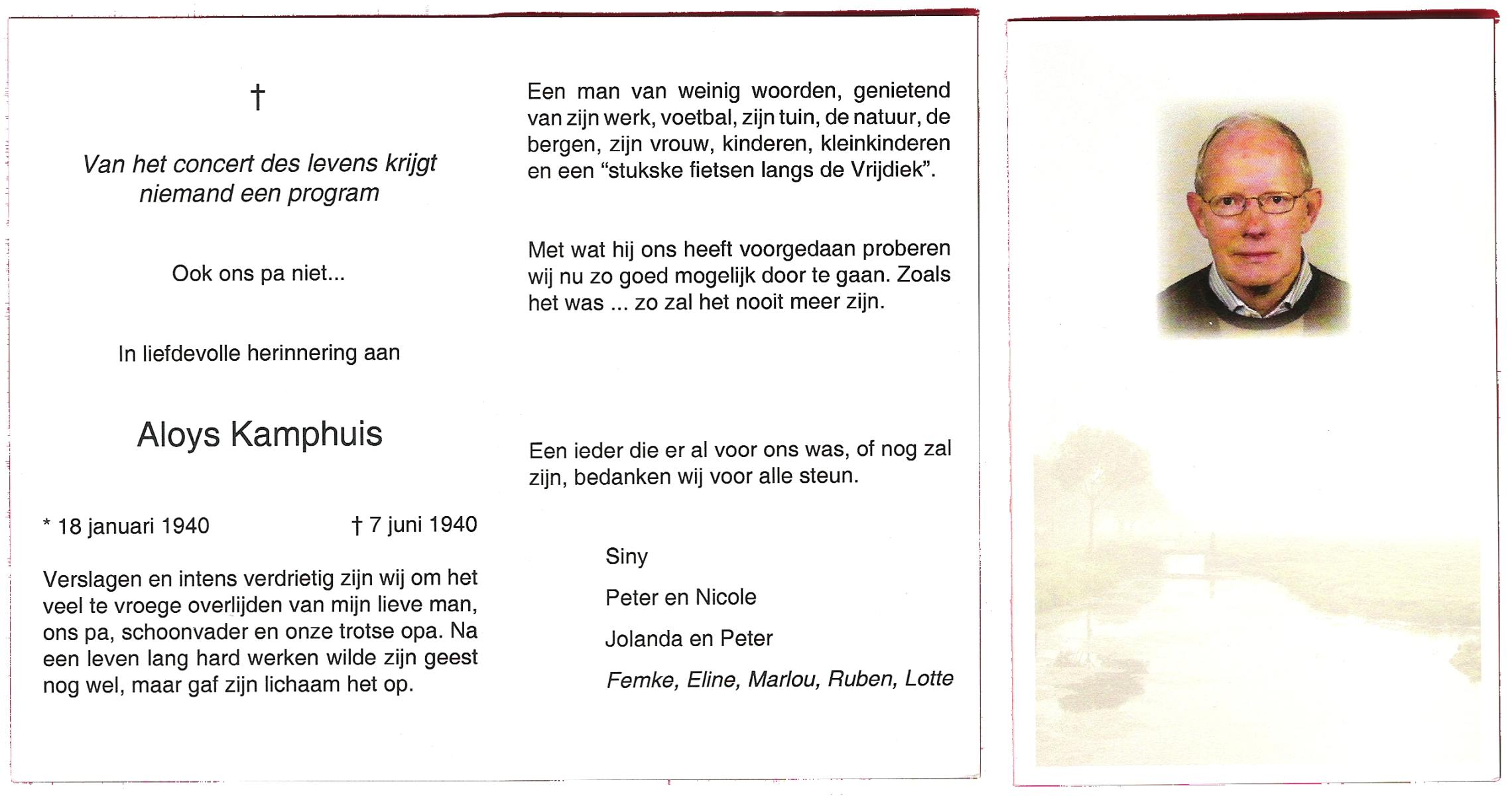 KAMPHUIS, , Johan, geboren op 16-5-1930 te Albergen, overleden op 9-2-2010 te Almelo op 79-jarige leeftijd.