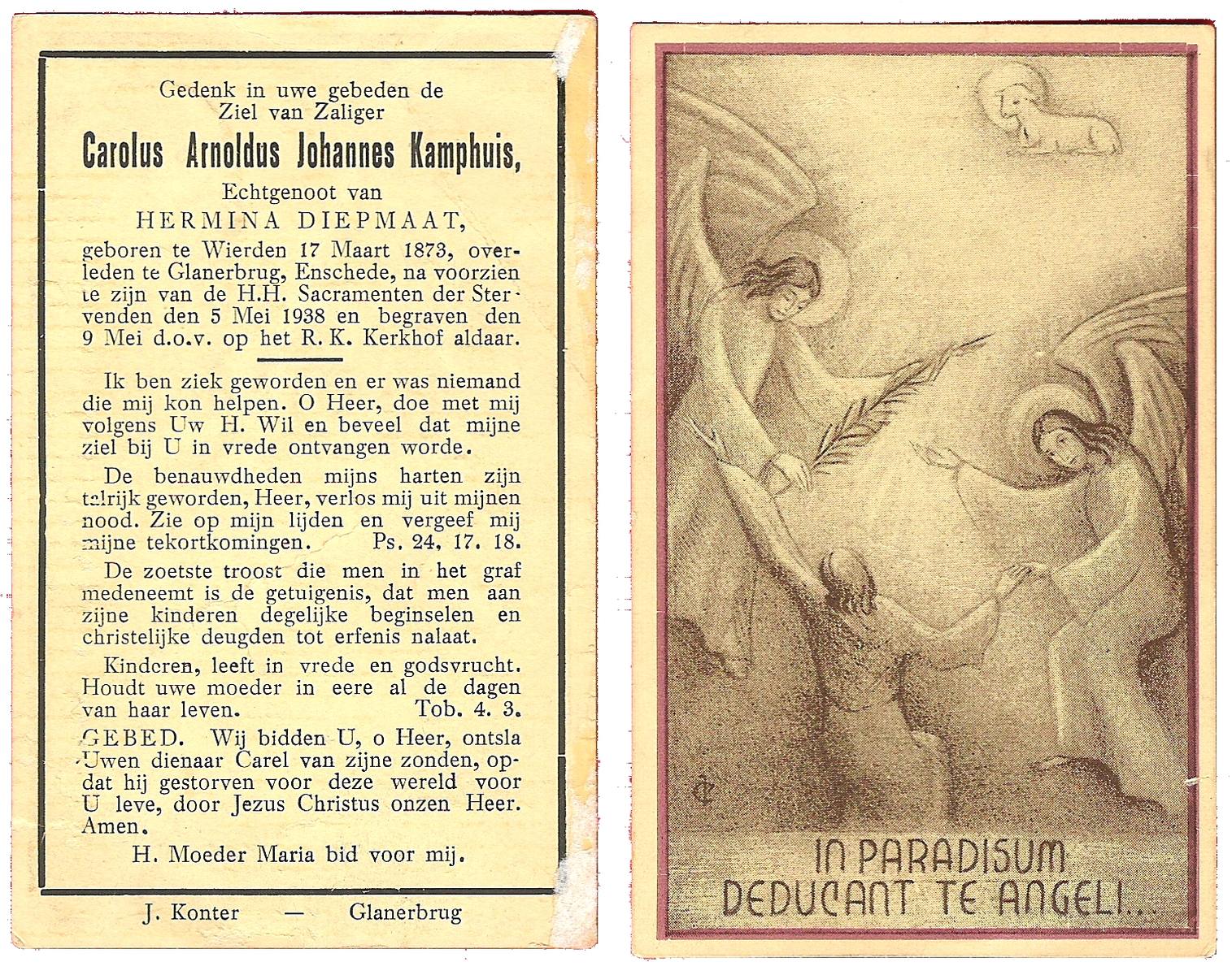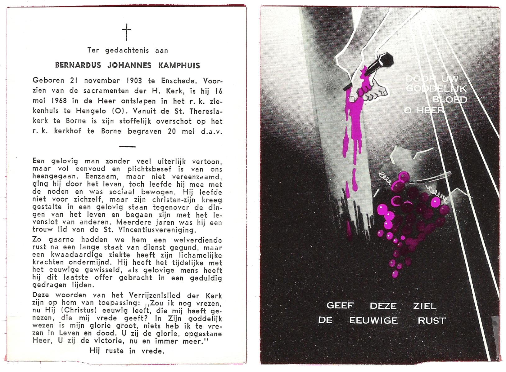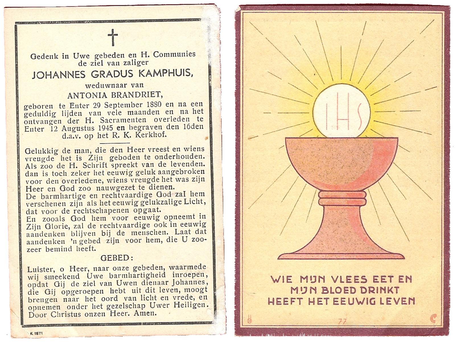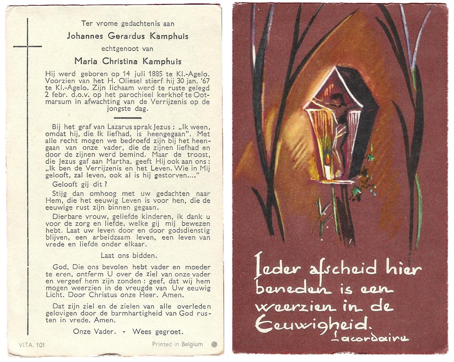 KAMPHUIS, , Johannes Gerardus, geboren op 03-03-1885 te Almelo, overleden op 6-12-1962 op 77-jarige leeftijd, begraven op 10-12-1962 te Almelo.