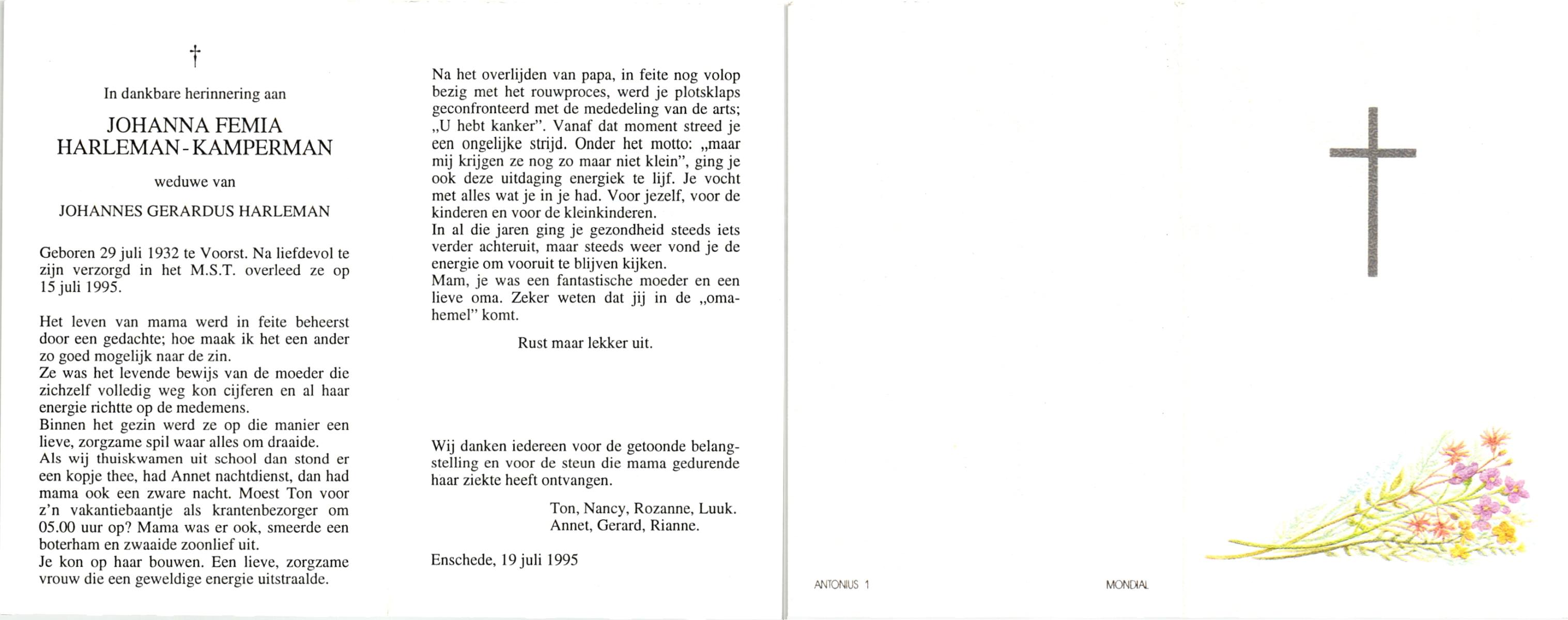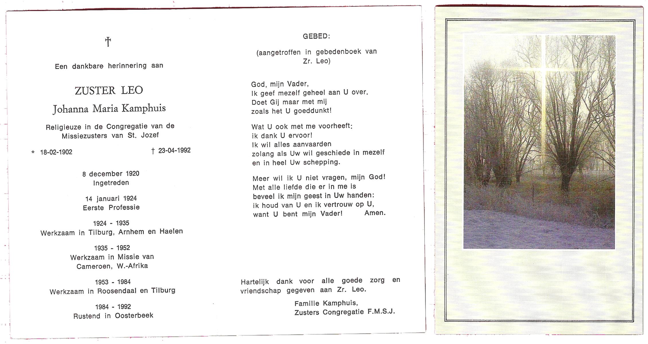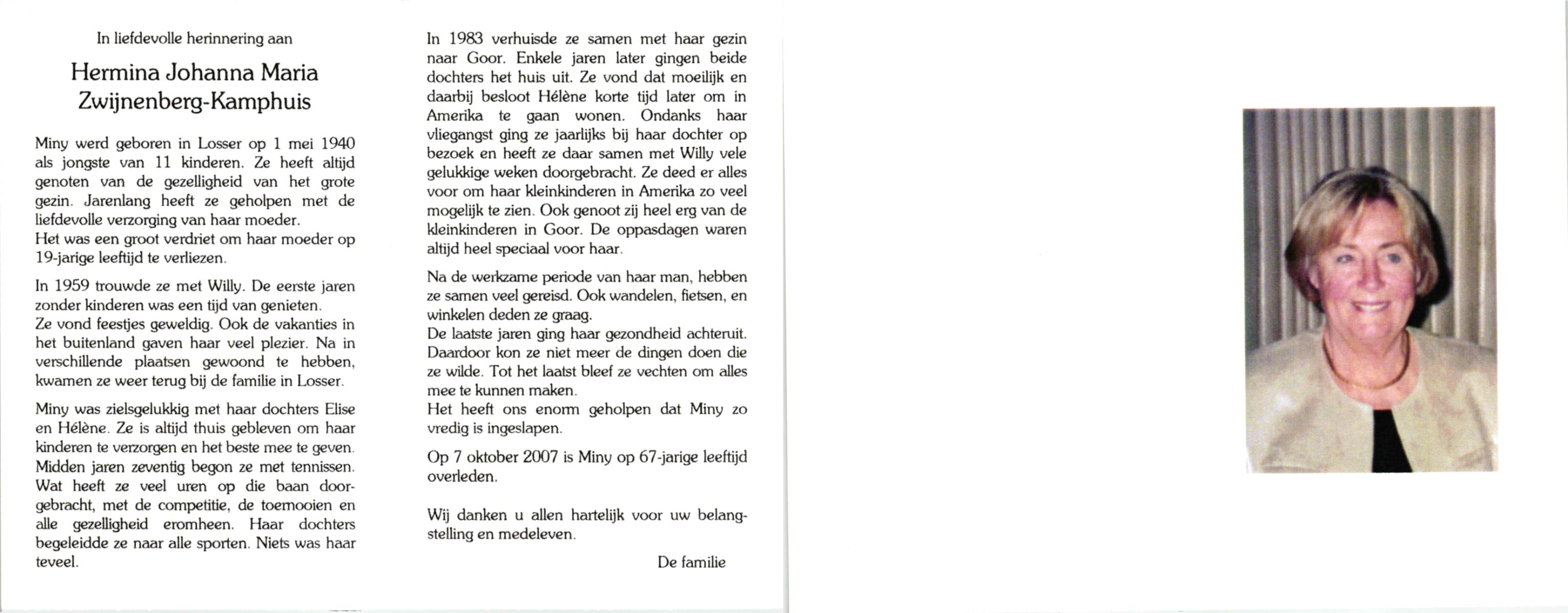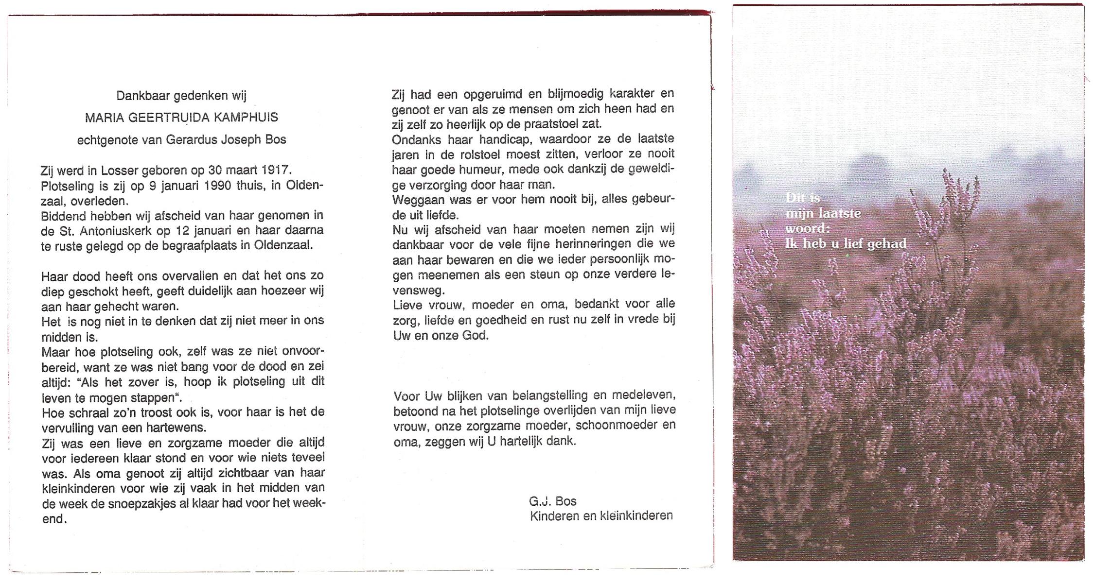 KAMPHUIS, , Maria Hendrika Josephina, geboren op 9-1-1917 te Enschede, overleden op 24-12-1989 te Enschede op 71-jarige leeftijd, gecremeerd op 29-12-1989 te Usselo.
