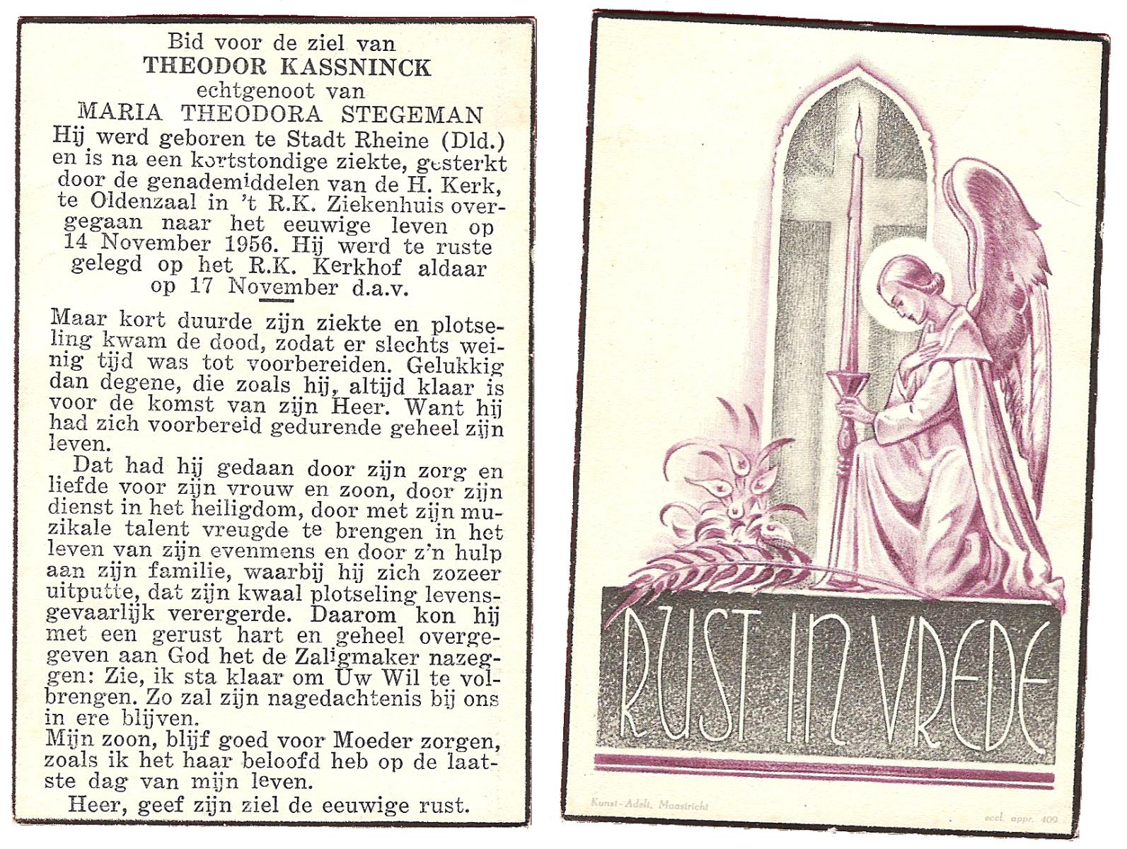 KASSNINCK, Theodor, geboren te Rheine (Dld.), overleden op 14-11-1956 te Oldenzaal, begraven op 17-11-1956 te Oldenzaal.